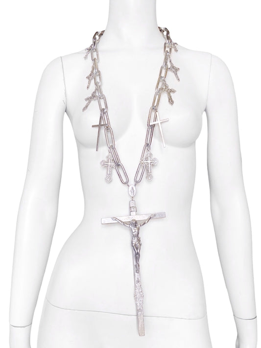 Jean Paul Gaultier 90S Sample 1/1 XXL Silver 11 Crucifix Cross Chain Necklace