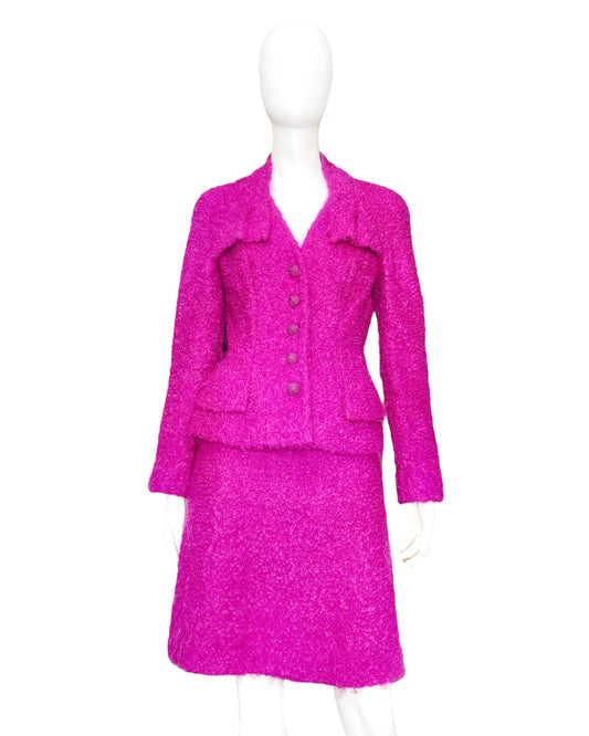 Christian Dior Fall 1997 John Galliano Fuschia Mohair Bar Jacket Skirt SuitRegular price $1,500.00 USDRegular priceUnit price per-