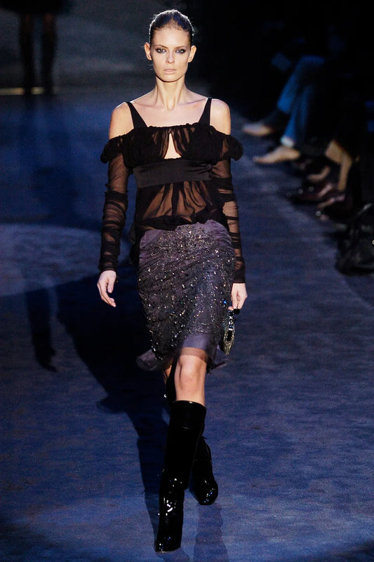 Gucci Fall 2005 Black Drop Shoulder Ruched Sheer Pure Silk Satin Top 40Regular price $500.00 USDRegular priceUnit price per