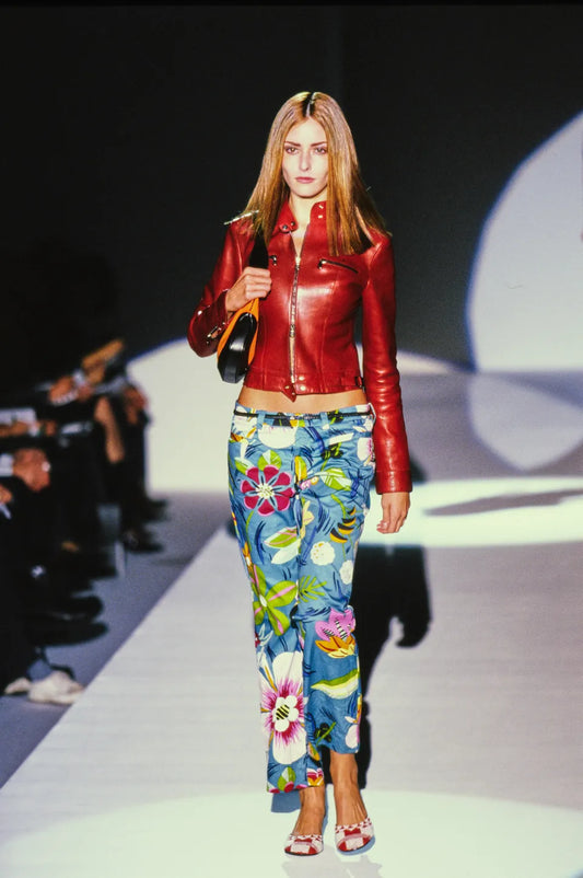 Gucci Spring 1999 Tom Ford Iconic Runway Blue Floral Pants 42