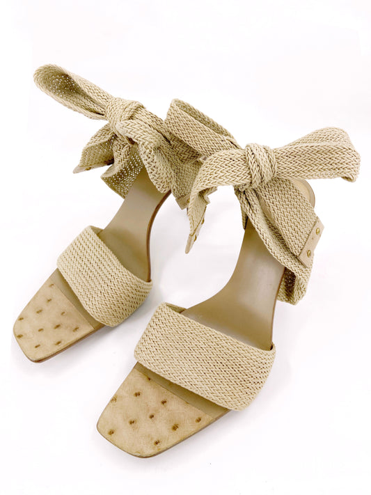 Gucci Spring 2002 Tom Ford Weaved Ostrich Leather Heeled Sandals 37.5