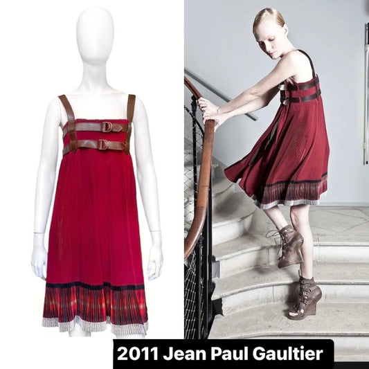 Jean Paul Gaultier 2011 Leather Belt Bondage Accordian Pleated dressRegular price $800.00 USDRegular priceUnit price per-