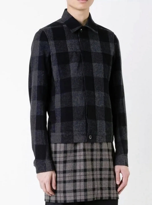 Rick Owens Fall 2016 Mainline Mastodon Checkered Plaid Wool Sample Colourway Workers Jacket 46Regular price $600.00 USDRegular priceUnit price per-