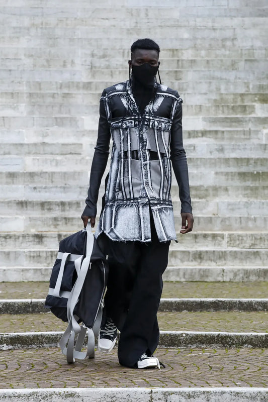 Rick owens Fall 2021 Gethsmane SL Trucker Liner painted black denim vest 48Regular price $1,000.00 USDRegular priceUnit price per-