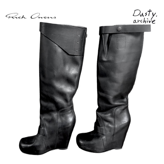 Sold out Sold outRick Owens knee-high wedge boot 38Regular price $300.00 USDRegular priceUnit price per-