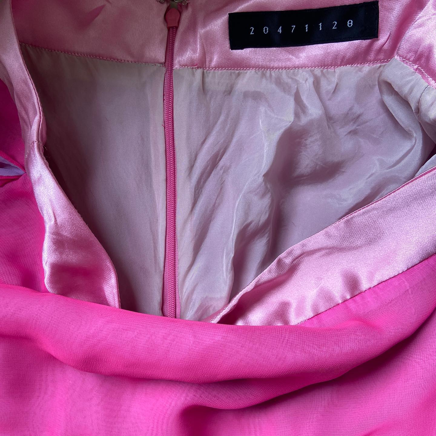 Lots of layers. Pretty colours with a pink overlay and a purple layer inside. Zippers and a metal clasp.