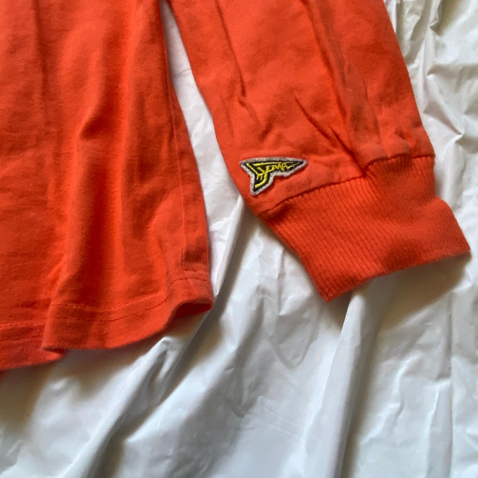 An icon of the cutesy japanese Americana, the hyoma brand has somewhat successfully regain popularity among youngsters. Simple long sleeve with print on it, relatively well kept with perhaps minor spots. Good condition overall.