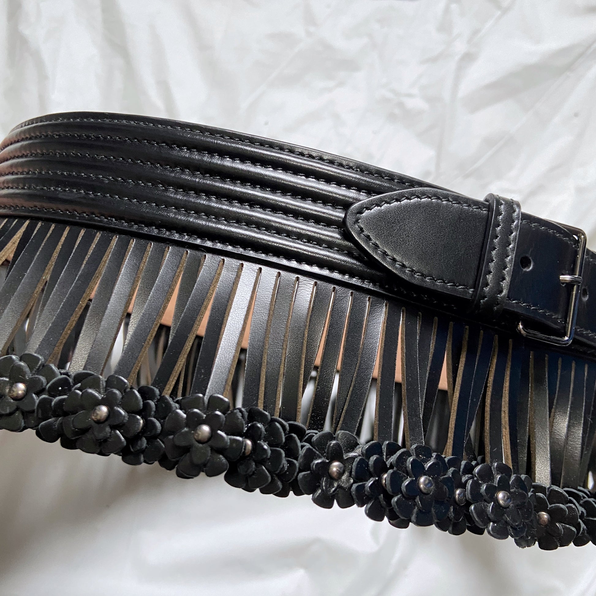 Alaïa Floral-appliquéd Fringe-trimmed Quilted Leather Corset Wide Belt