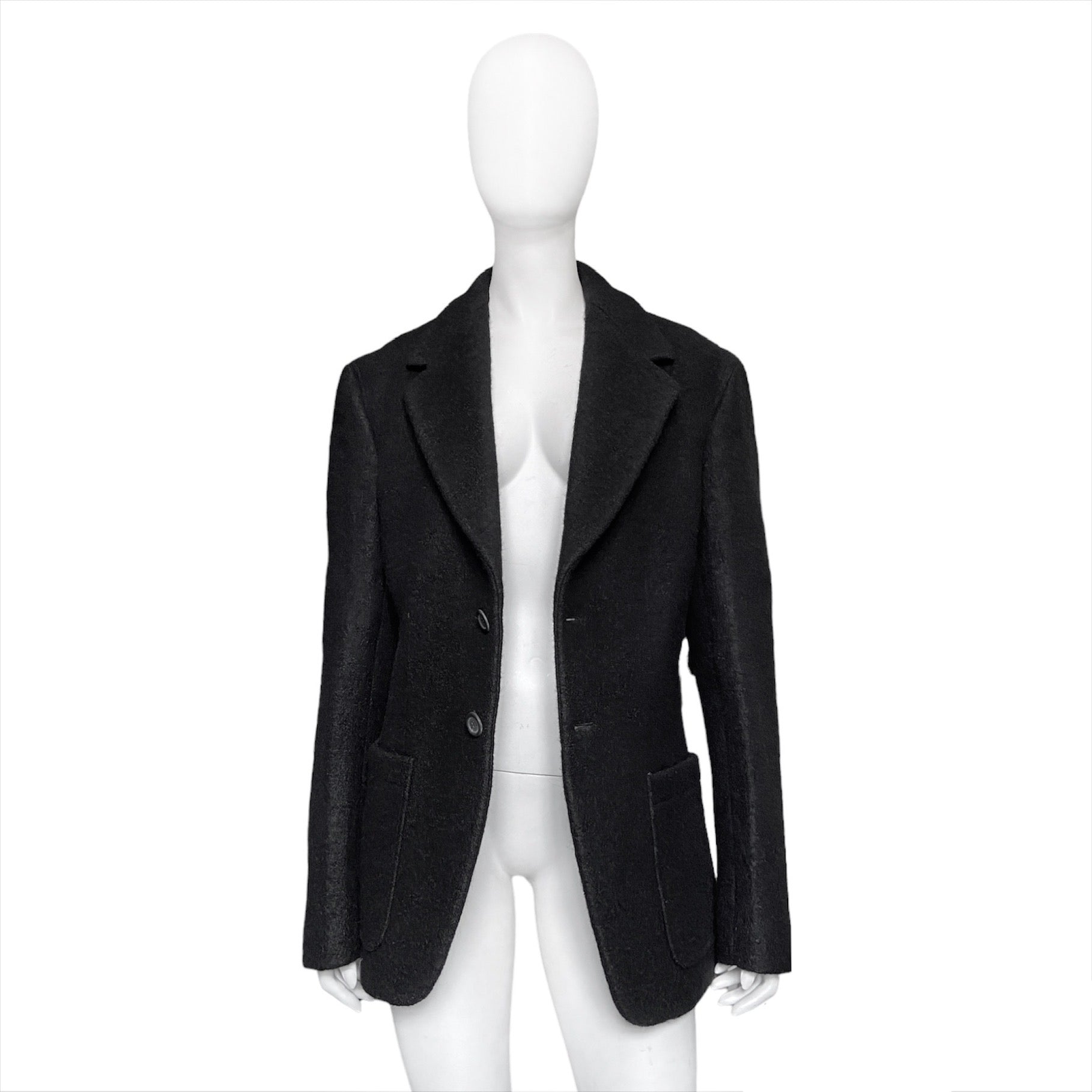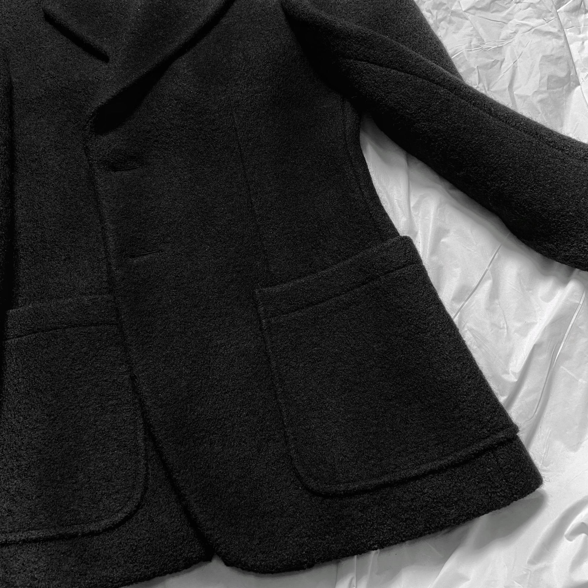 A beautifully structured blazer with a extremely thick wool material that allows for a structured look with broad shoulders and a trimmed waist. I cannot confirm that this is certainly from the “Dante” collection, but there are instances of pieces from said collection with a navy birth label. Shame that this hadn’t had the hair label as well. Comes along with the original paper and plastic birth label as well. Brand new never worn.