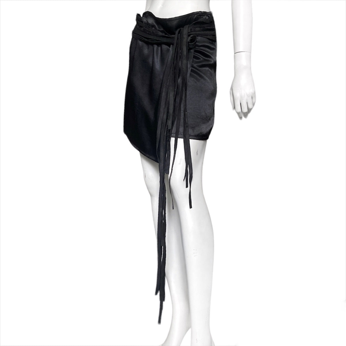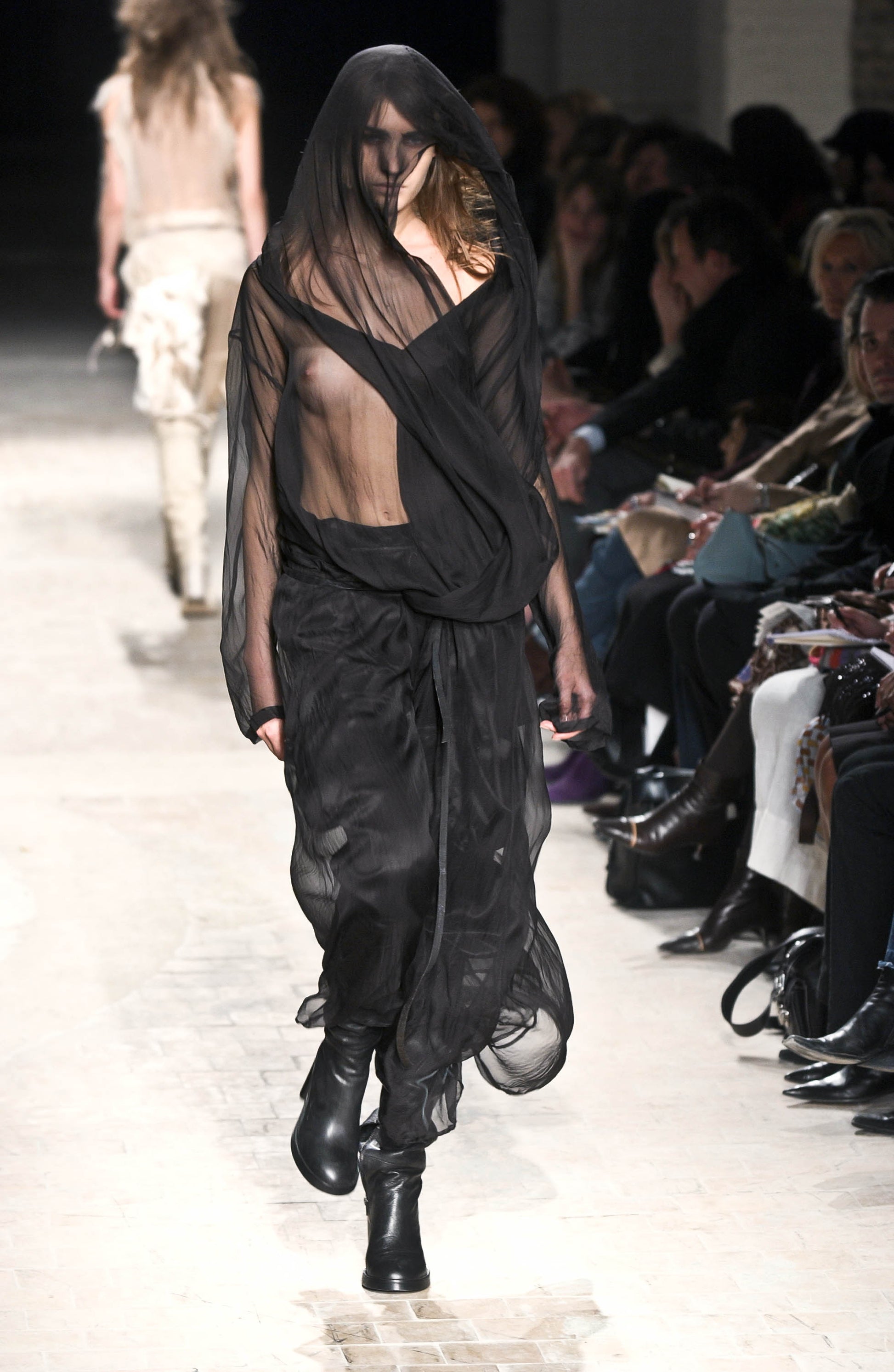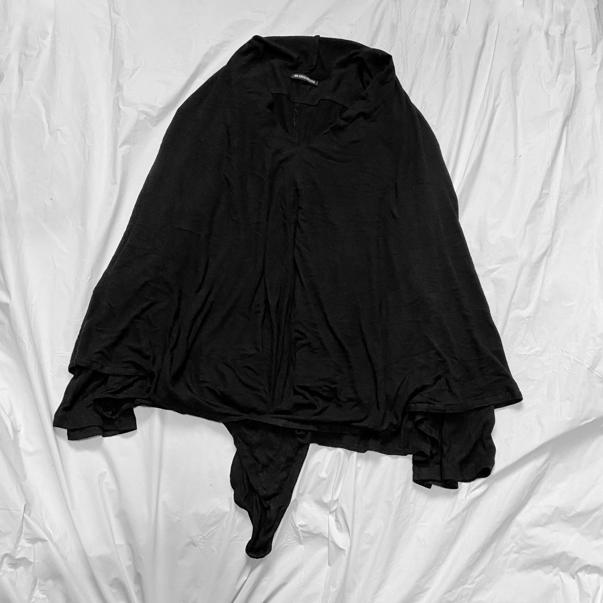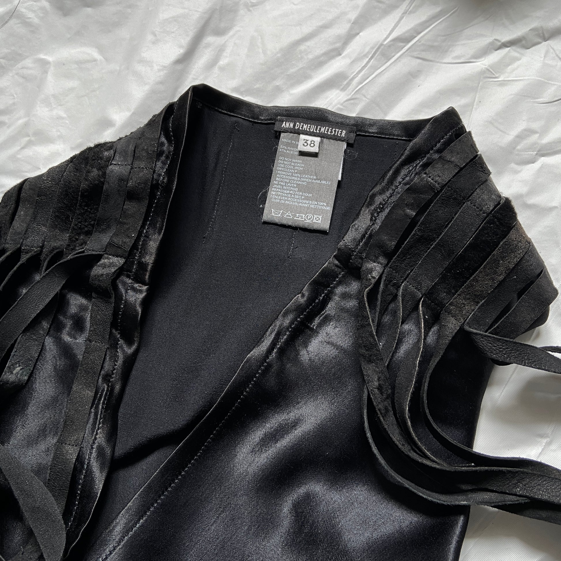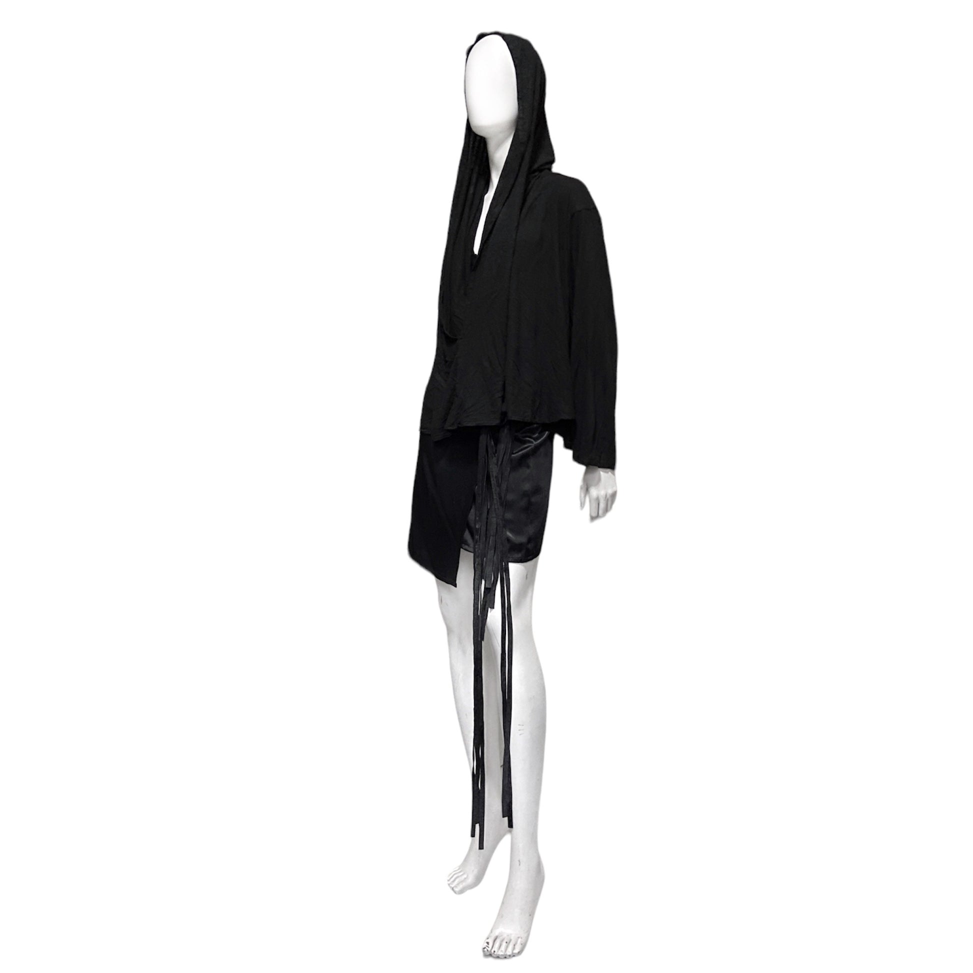 Ann Demeulemeester Fall 2002 Hooded Blouse + Suede Leather Belt Skirt Set