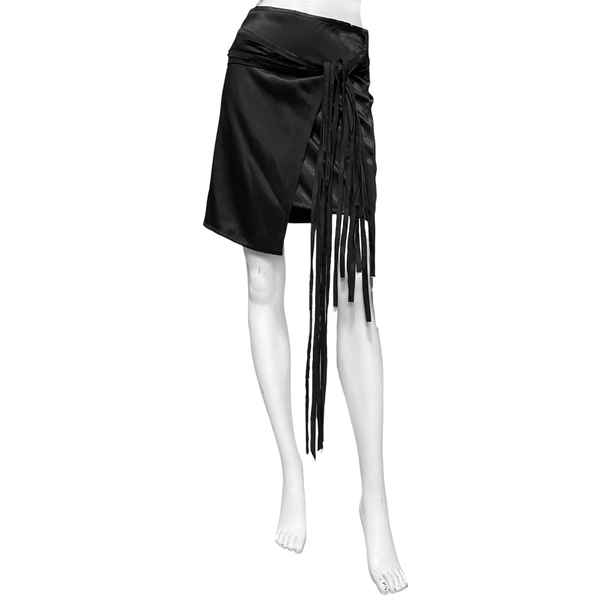 From the iconic 2002 collection, featuring the seasonal motif of suede strips prominently as belt and decor