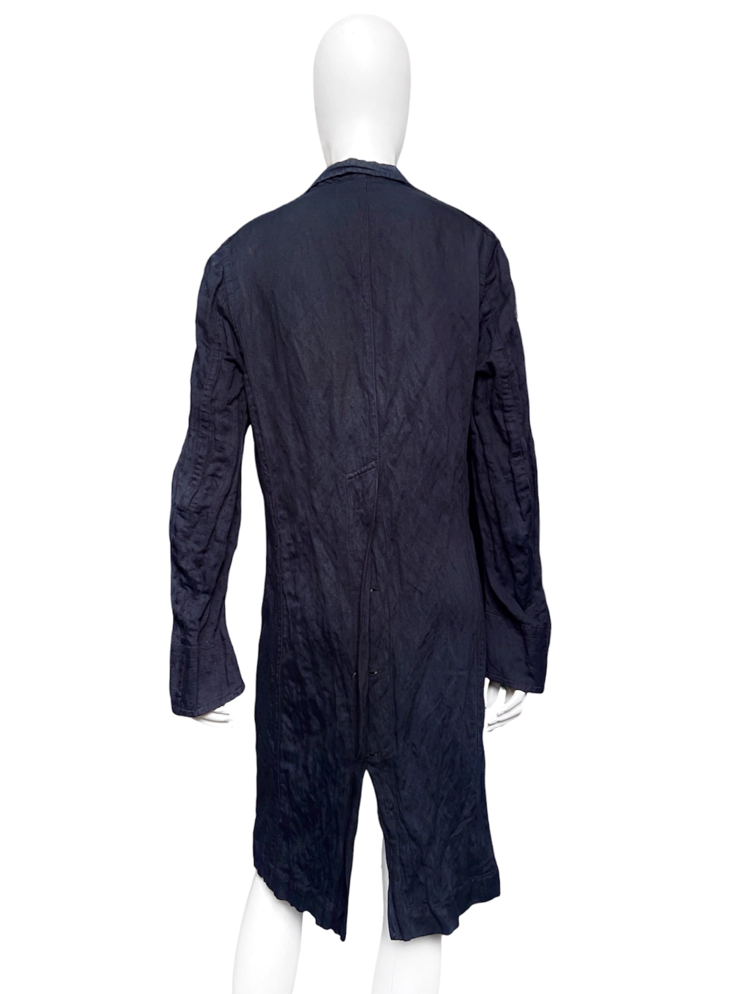 Ann Demeulemeester Spring 2006 Men’s Navy Wrinkled Coat XXS