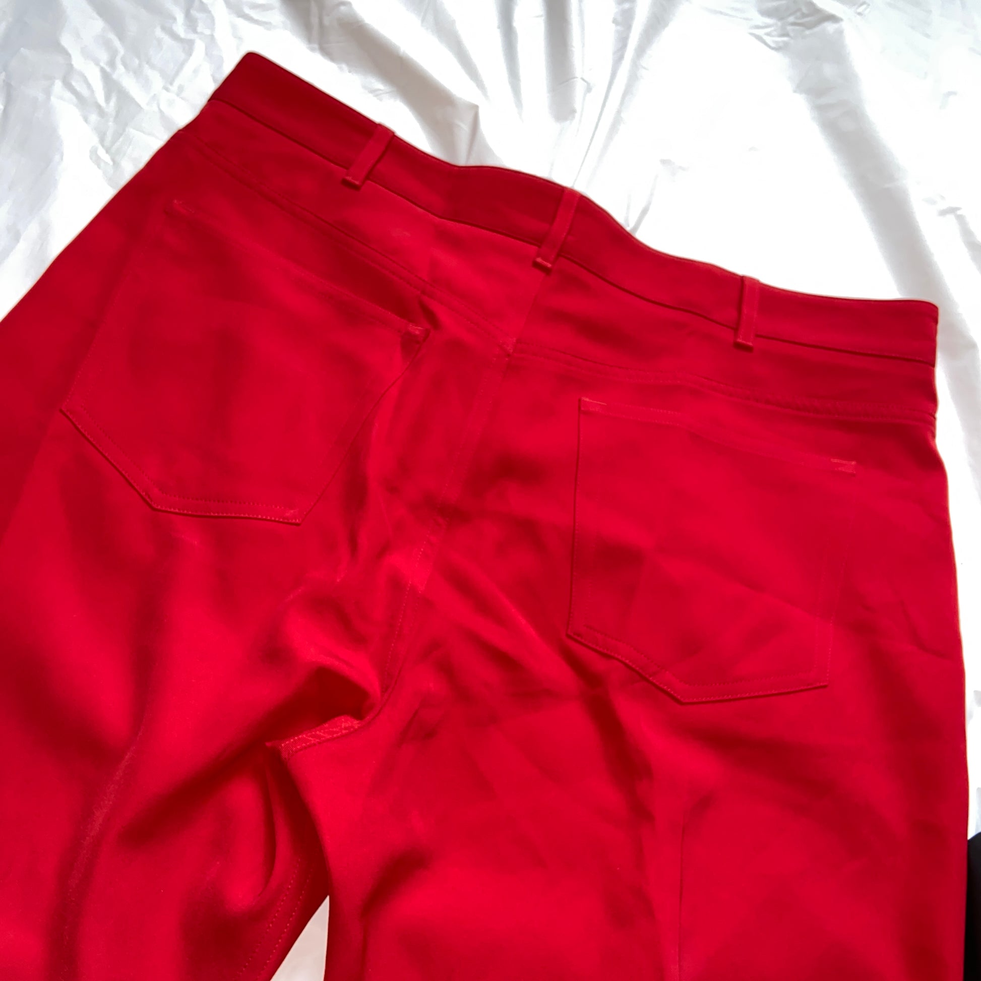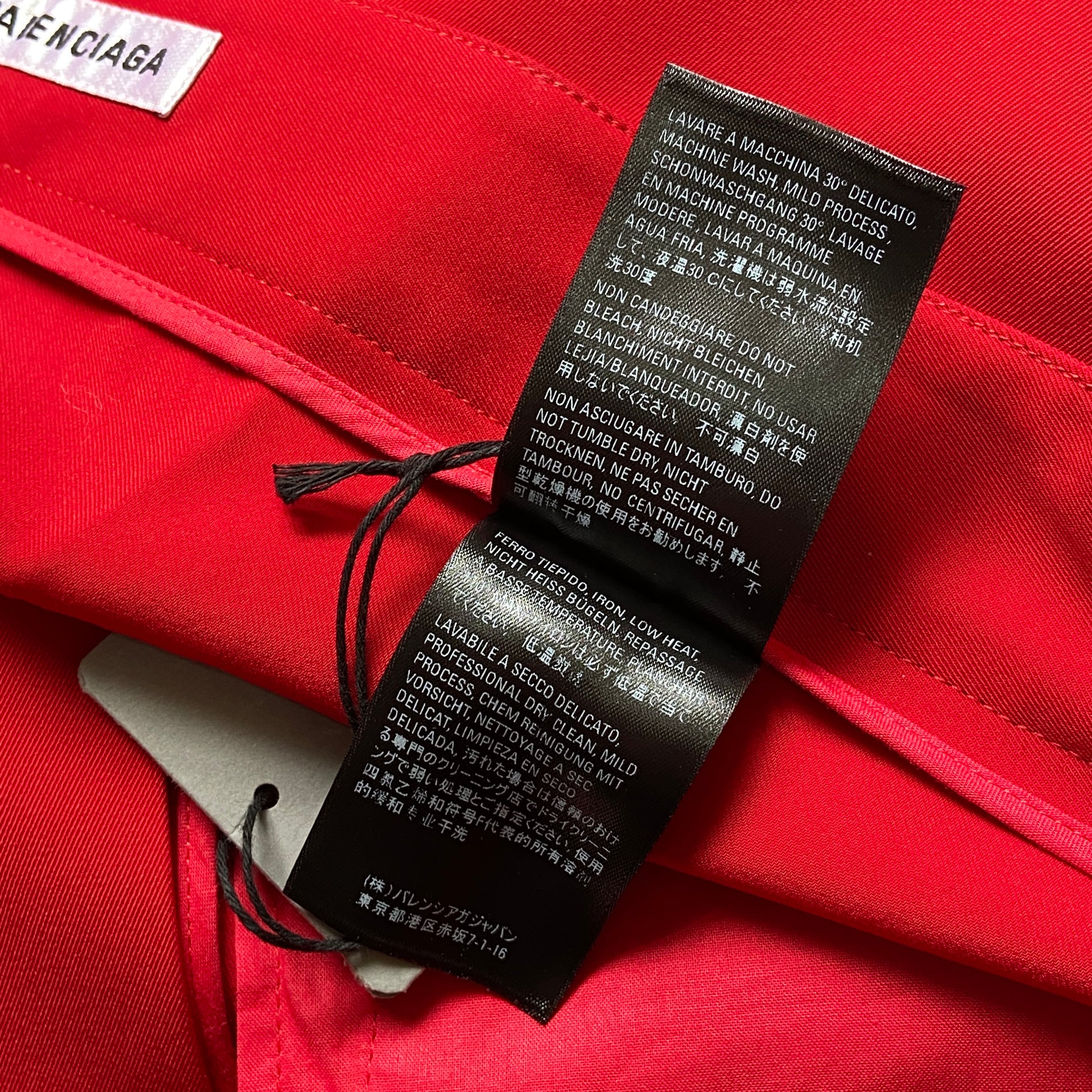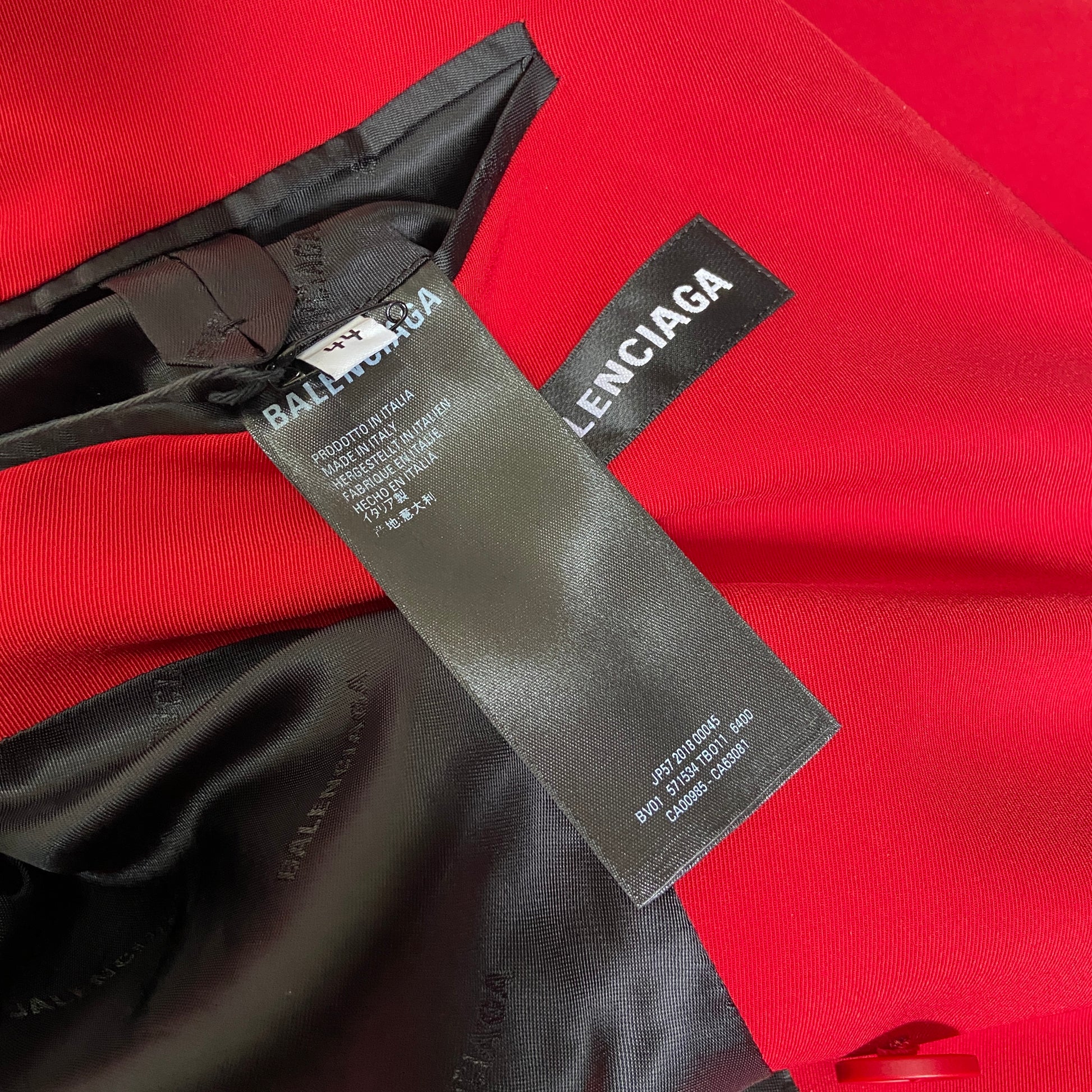 Straight from the ss19 balenciaga runway a very sought after red double breasted twill blazer with matching pants set exclusively available for purchase. Featuring a extremely shoulder padded blazer with the brand tag on the shoulder and a matching pants set with five pockets and the brand tag also on the outside. Both items are in pristine condition, although i would still recommend you to clean both items before wearing them. Bought from boutique for over 4500usd and never worn with both tags still on with extra buttons avaliable. The pieces will fit up to a mens sz50 comfortably If you have any questions shoot my dms. No trades and returns. Thank you and enjoy.