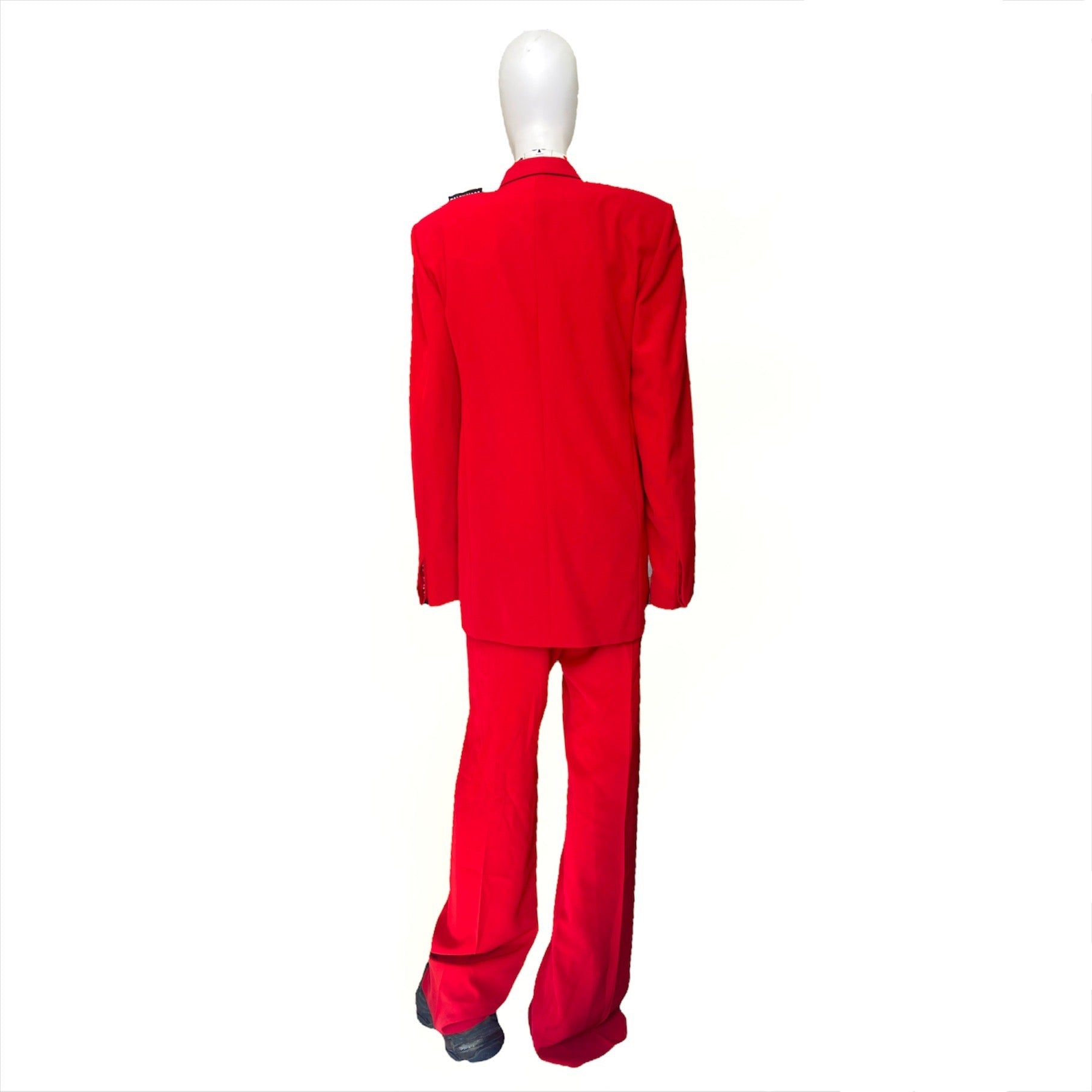 Balenciaga Bwnt ss19 runway set red 80s boxy shoulder blazer pants suit set 44