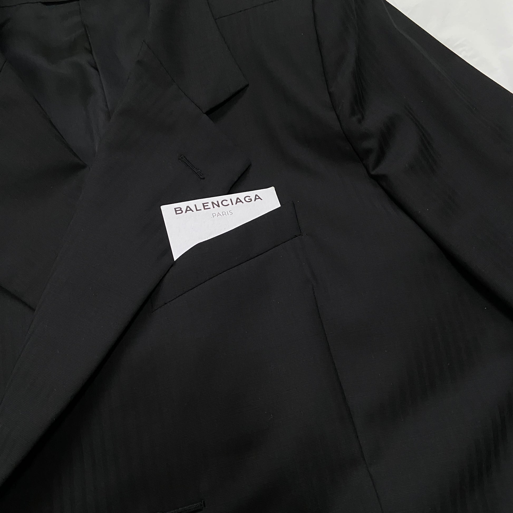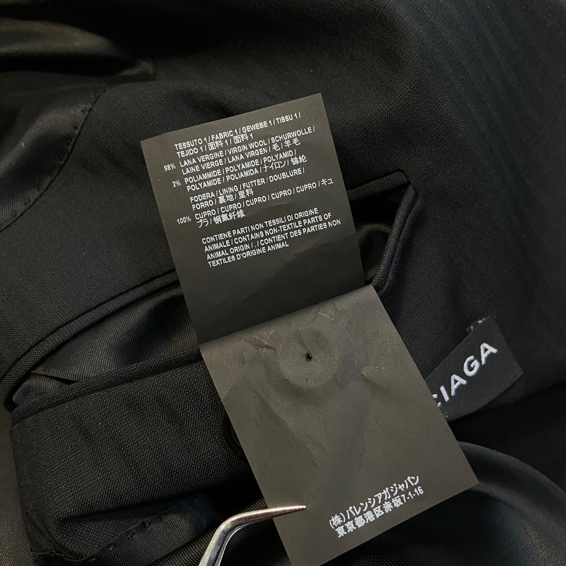 From the legendary first mens collection by demna at balenciaga, sending models down the runway in extremely tailored suits and garments that contorts the body in weird but refreshing ways. Featuring an extremely fitted coat, extreme shoulder padding and long smooth wool panelling. Featuring a very subtle vertical stripe effect. With concealed buttoning with buttonholes in trompe l'oeil at front and cuffs. Removable "Balenciaga" card inspired by measurements cards used for bespoke tailoring. Piped pockets and engraved horn buttons. The jacket is coloured ambiguously between very dark navy blue and black. Item is brand new unused with no defects, but i recommended a professional dry cleaning once you got the product. Model is 184cm and is wearing a FR size 46. Recommend tts 50 or one size up to get the desired effect of its design.