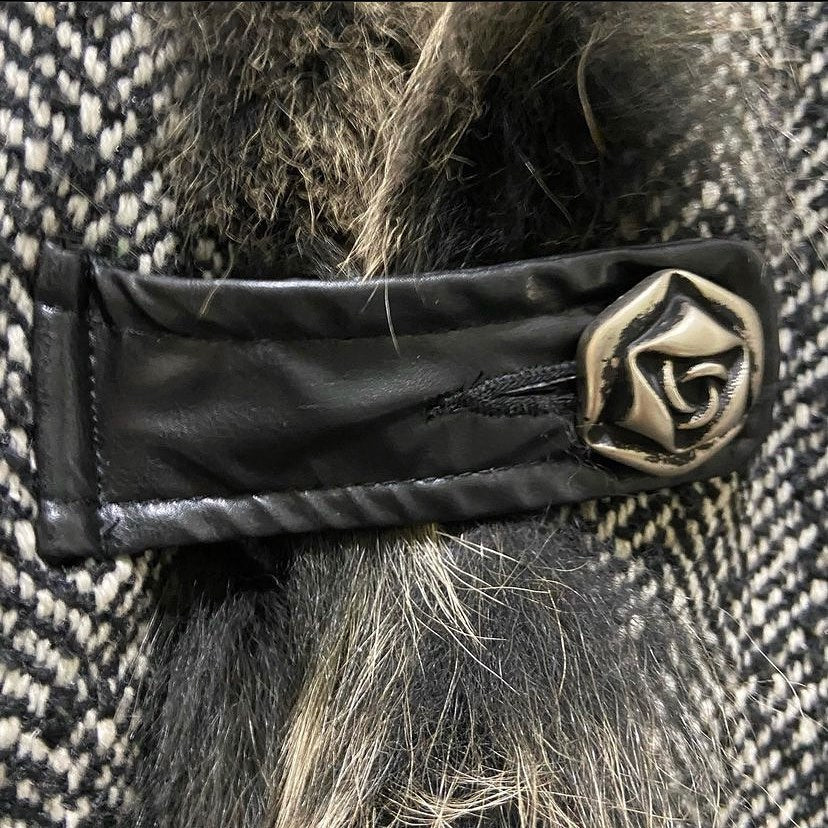 The coat is super delicately made, with what I assume to be fox fur around its opening, collar, sleeves and pockets. With faux leather straps and inner lining to keep warm. Diagonal Tweed pattern is a burberry classic and so is the piece. Mid-length and mid -sleeves.