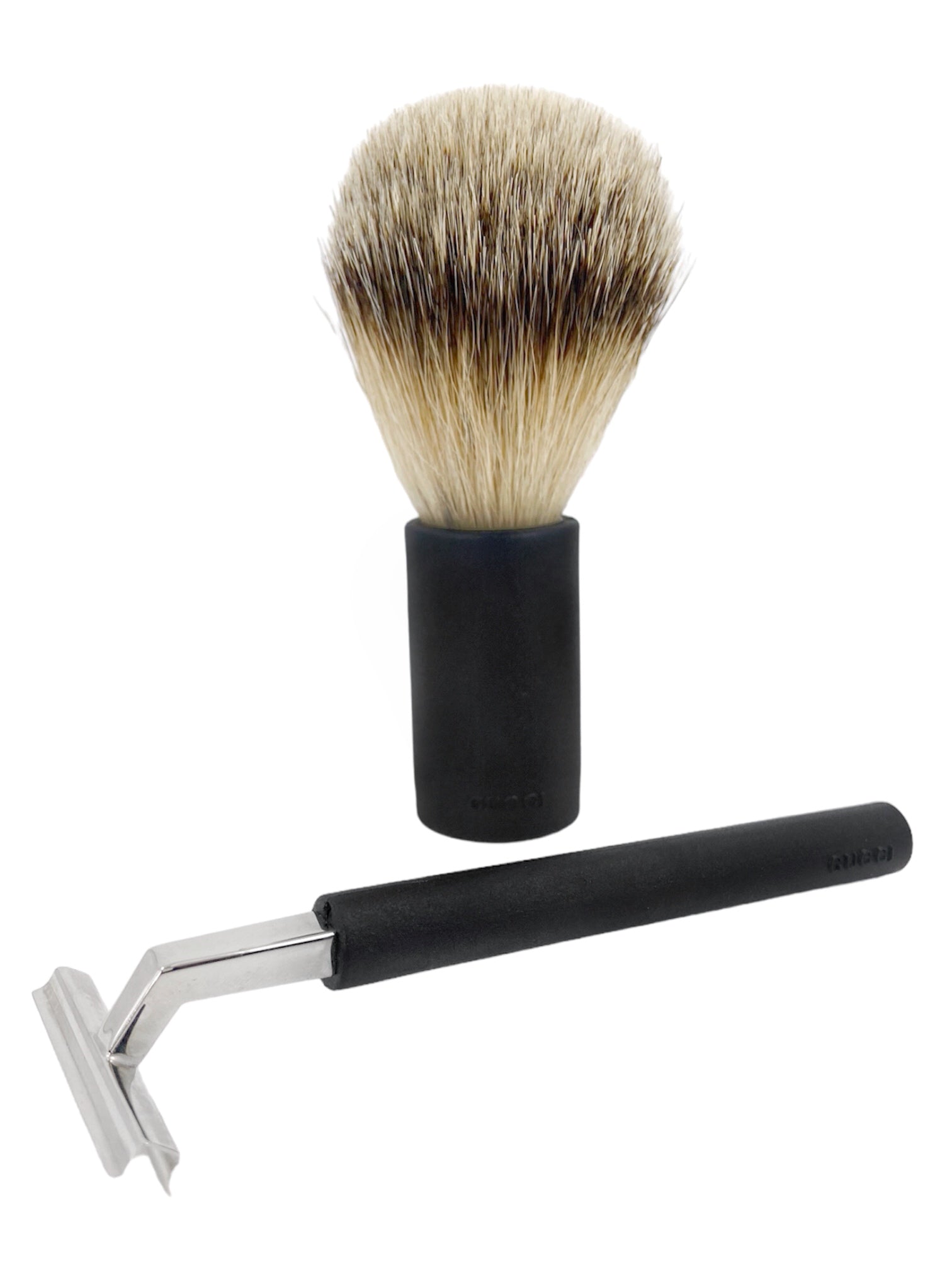 Includes shaving handle, shaving brush, and a travel storage bag