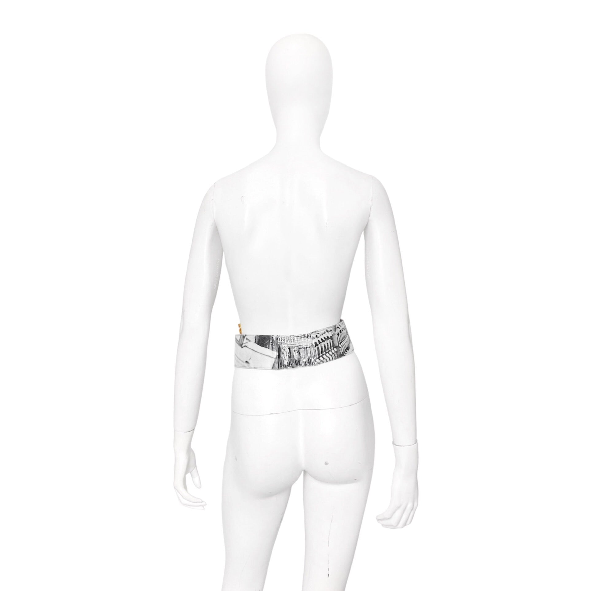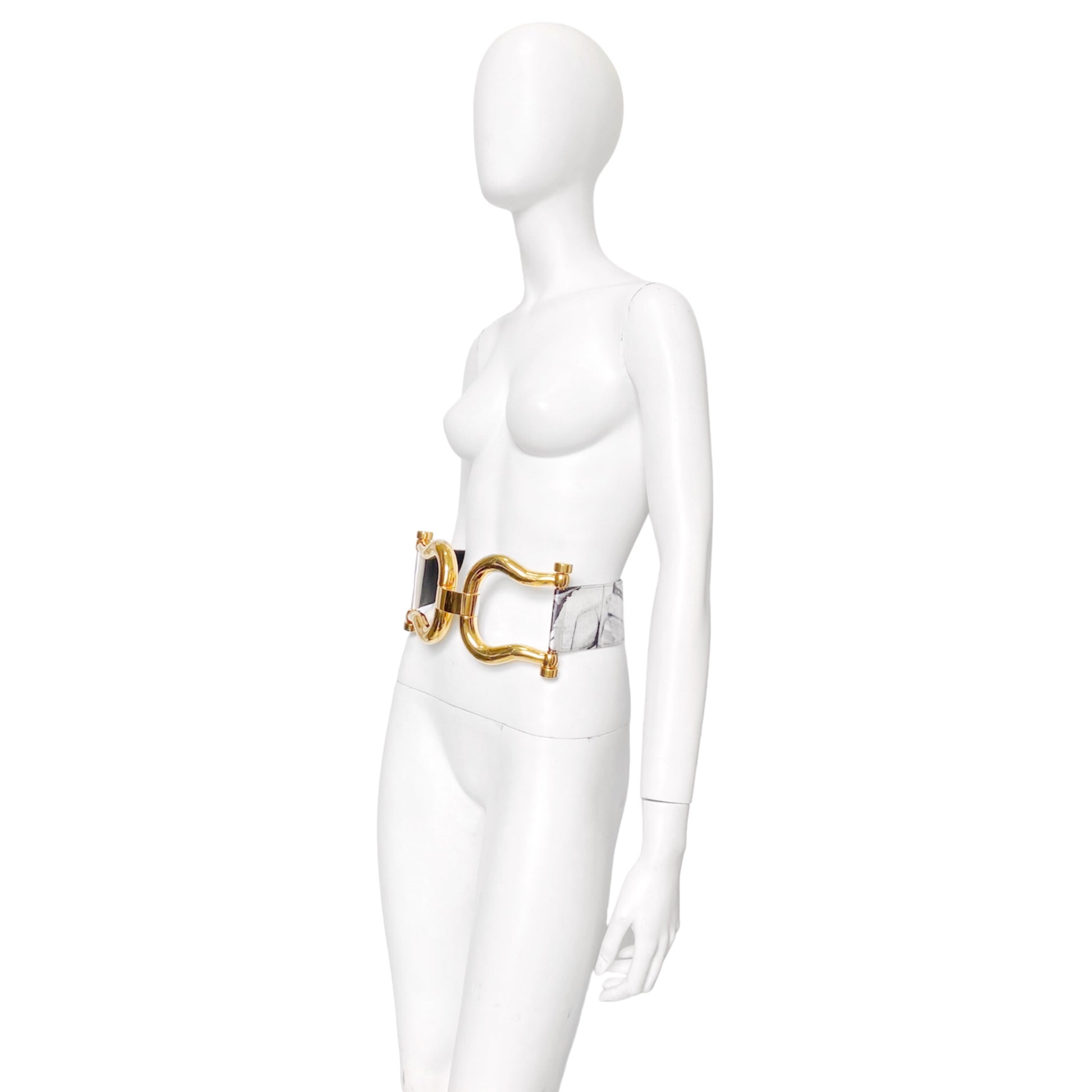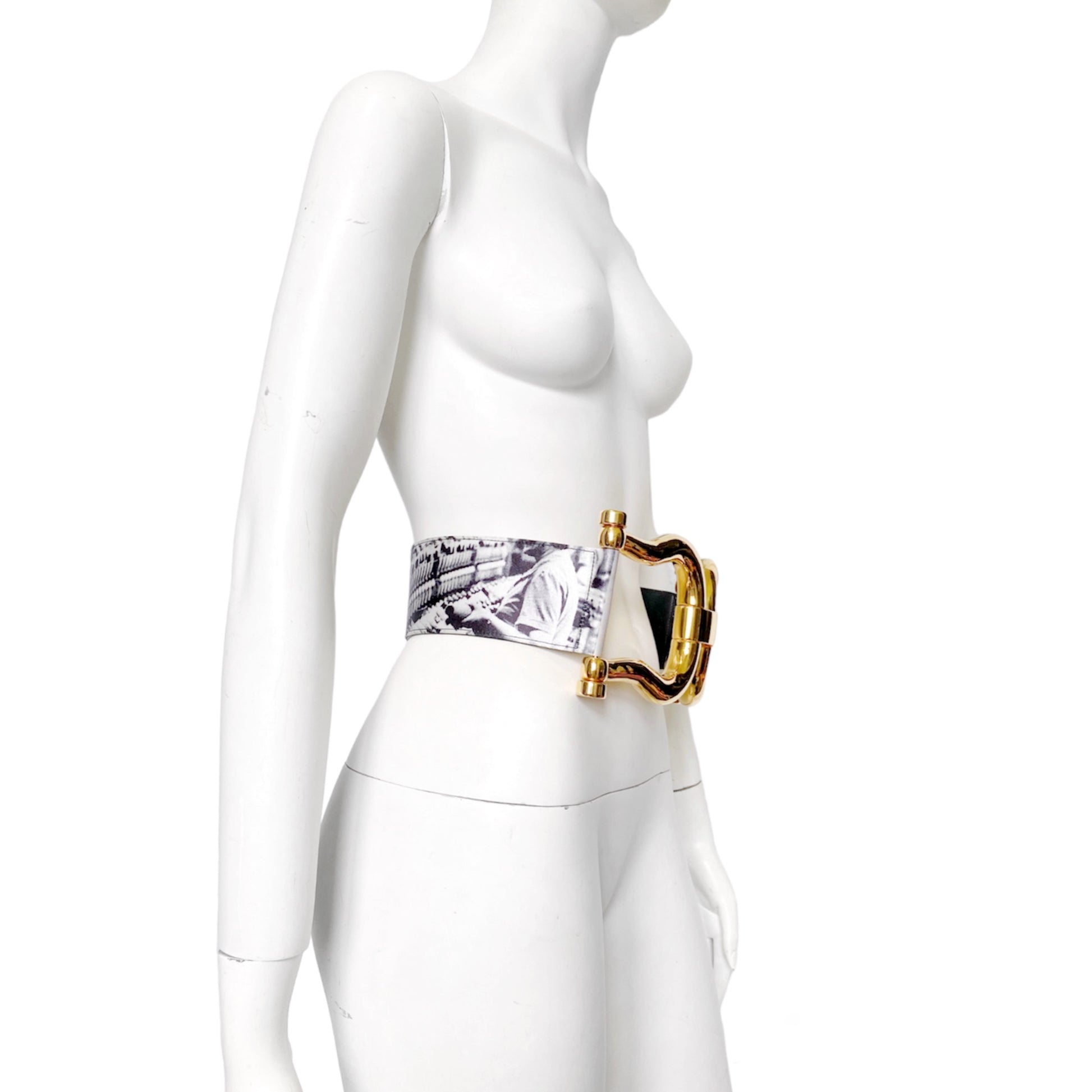 Céline Spring 2018 Phoebe Philo Oversized Horsebit Leather Belt with Silk Factory Print