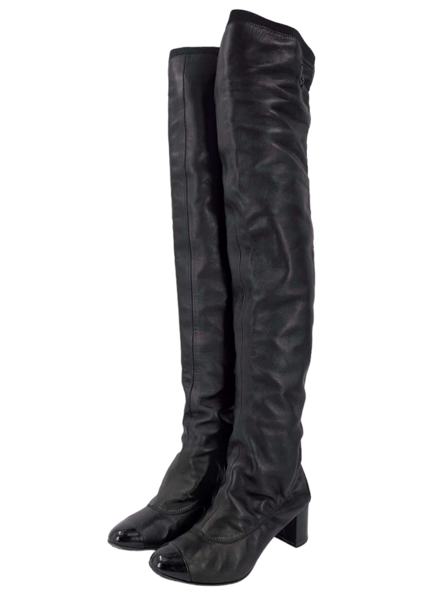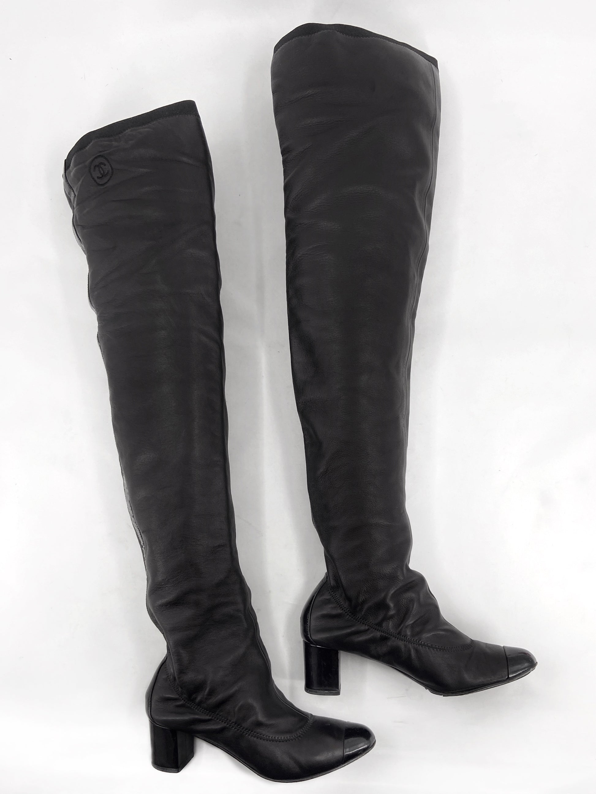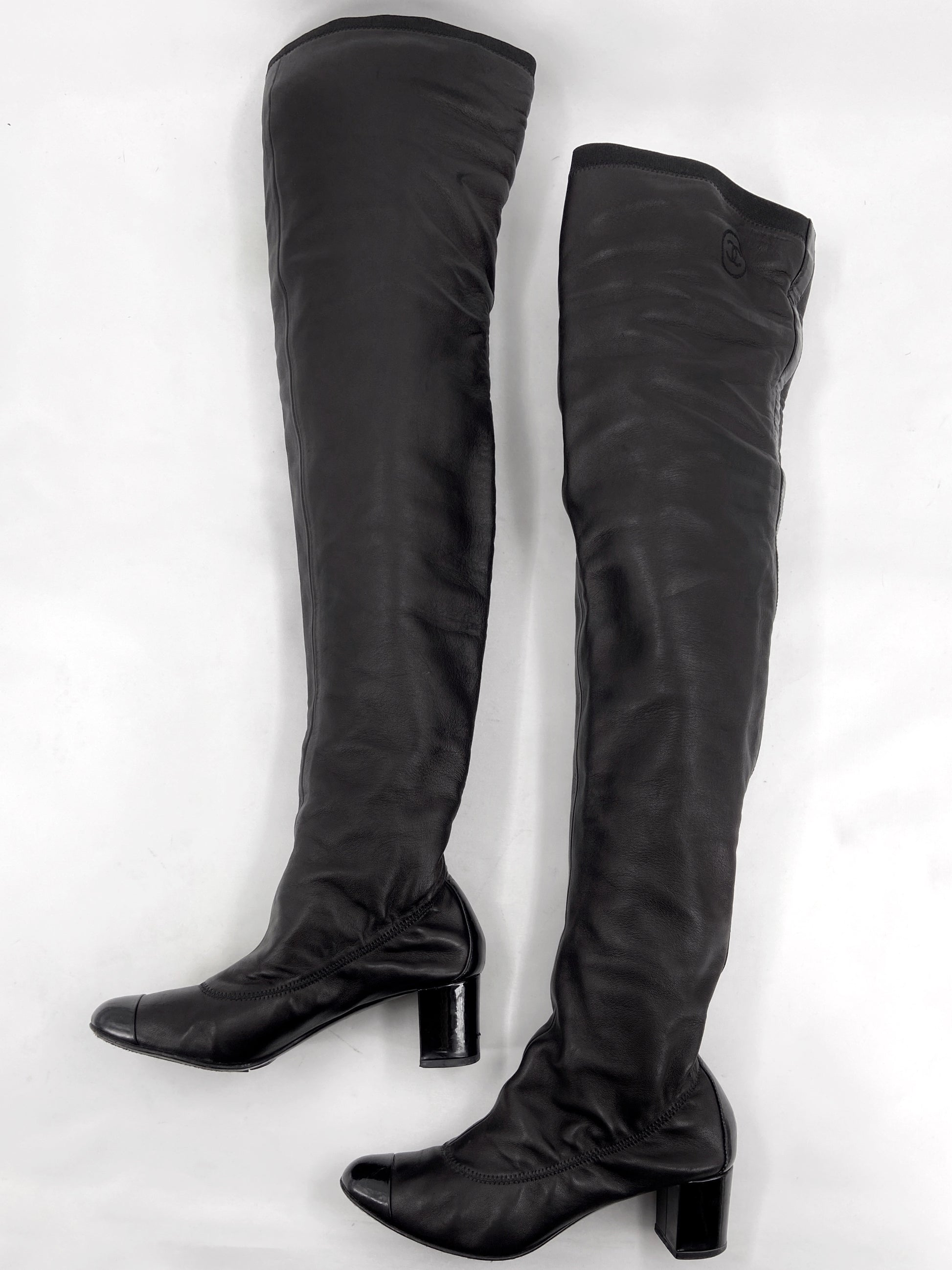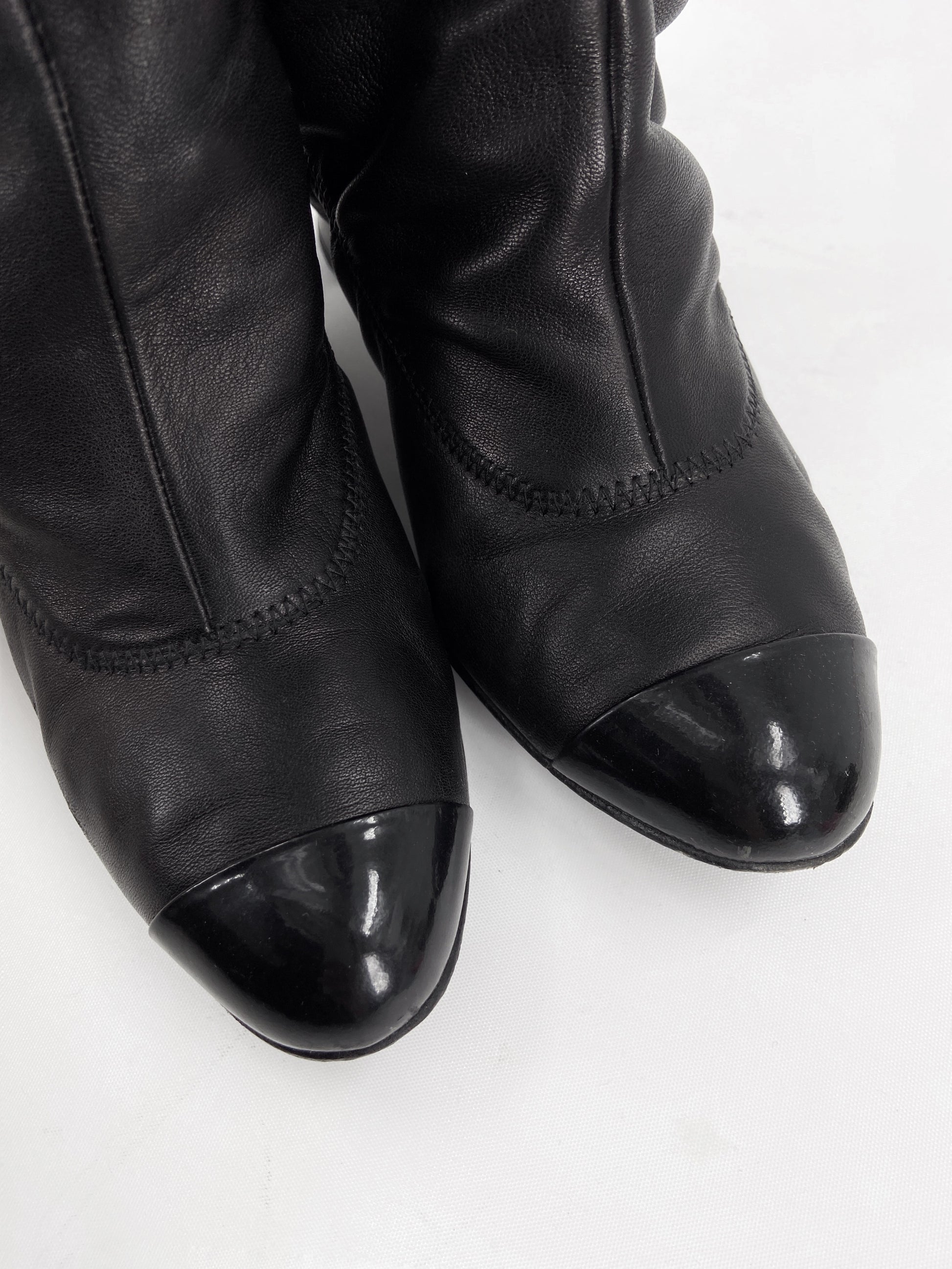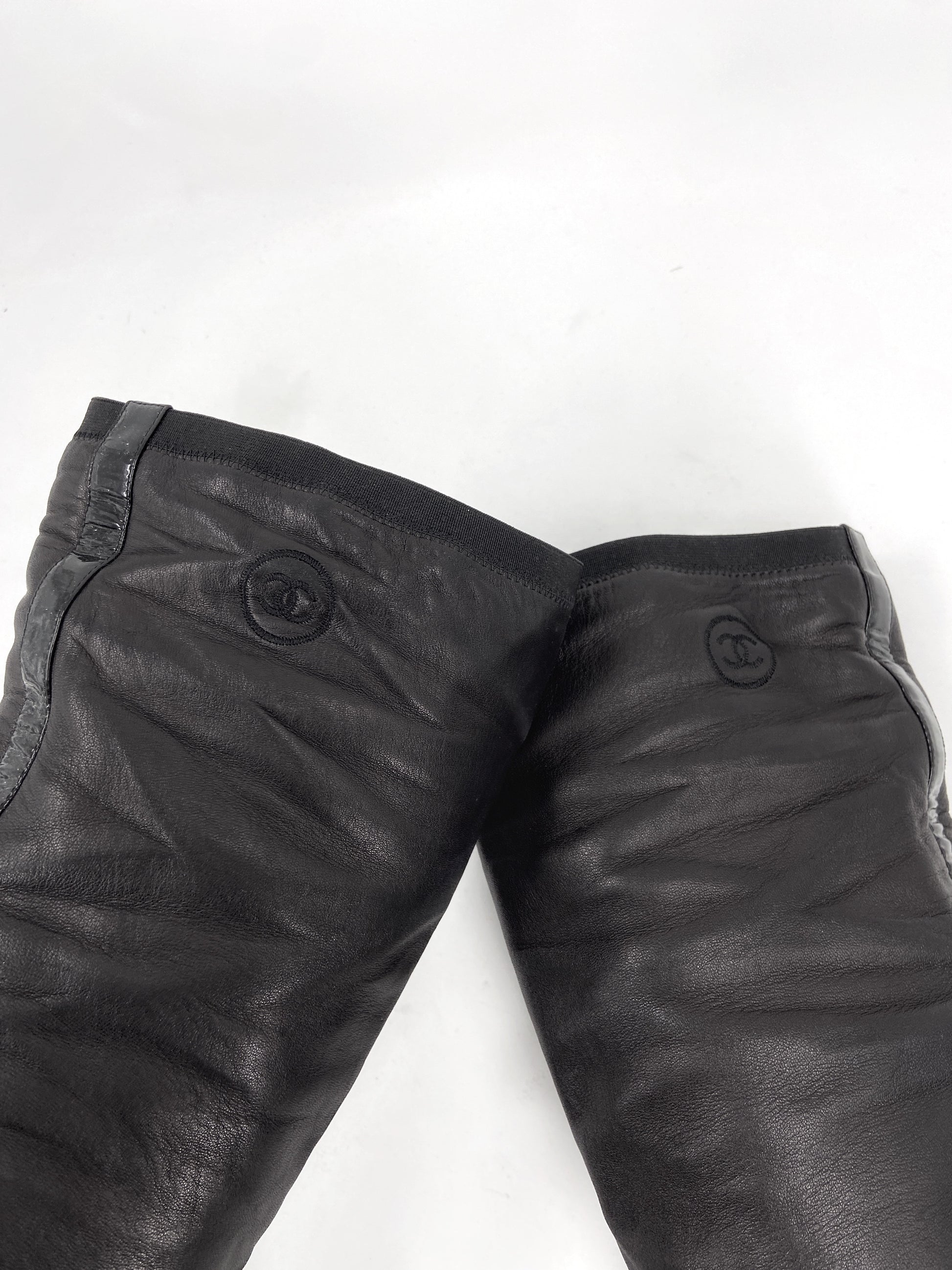 Chanel 90s Karl Lagerfeld Logo Lambskin Leather Boot 35.5