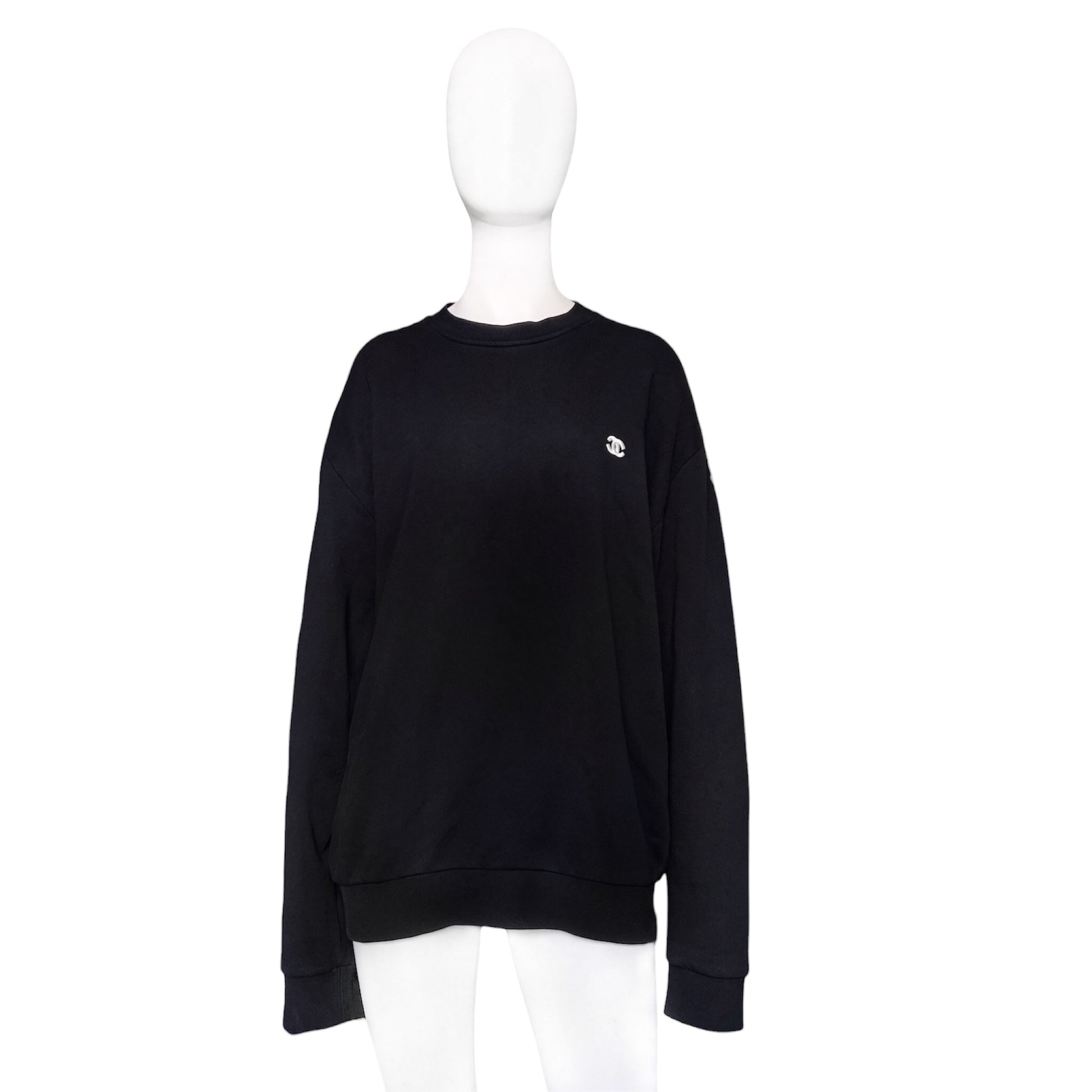 A minimalist sweater with a touch of luxury. Made from soft cotton with a Chanel double C logo embroidery. Also a small Chanel logo on the right sleeve. Oversized relaxed fit. Good condition, minor signs of use.
