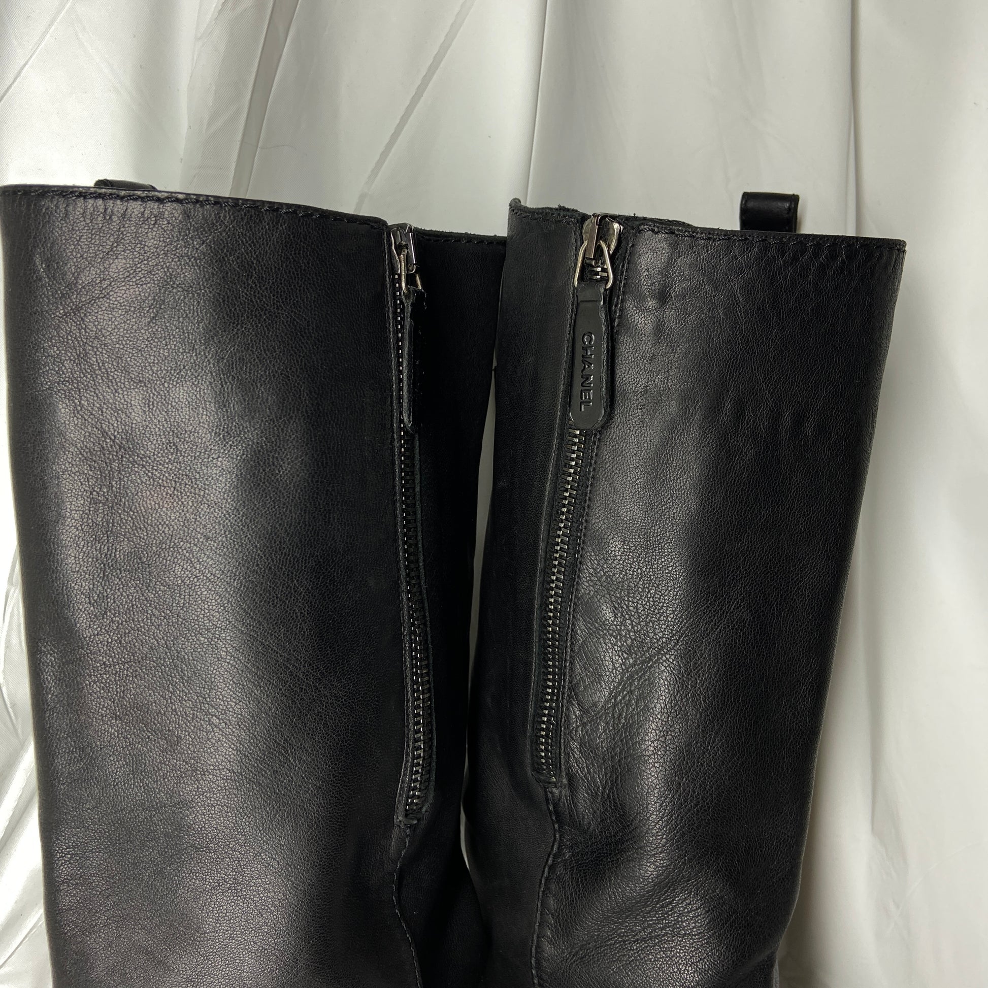 Chanel calf leather knee high heel boots 39