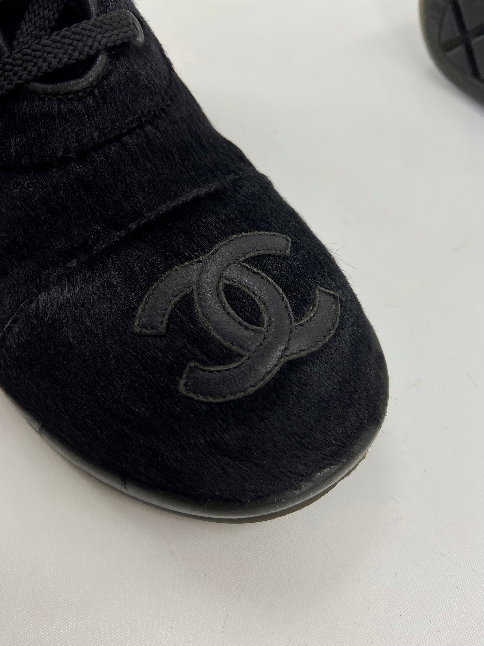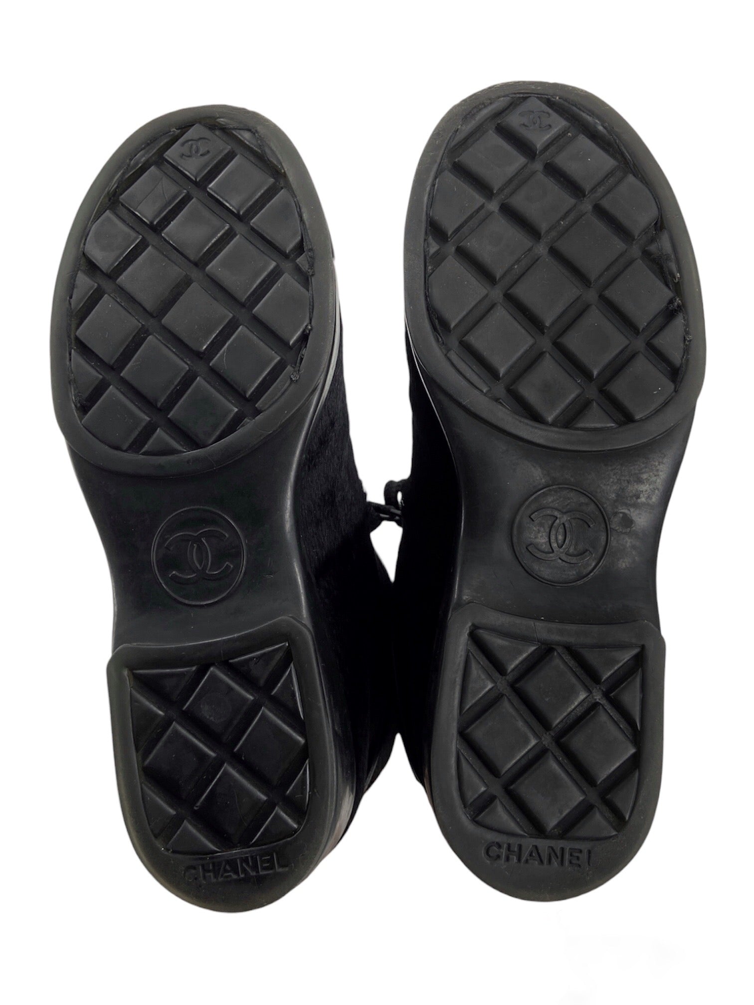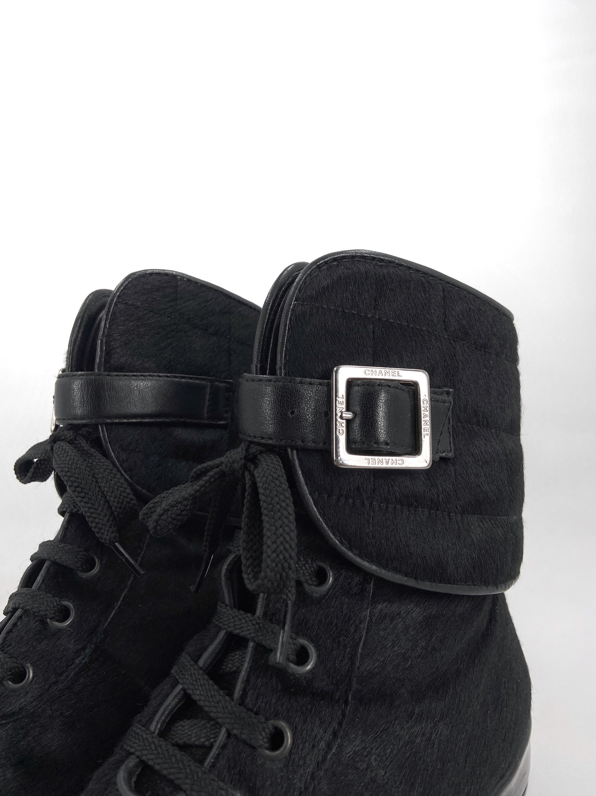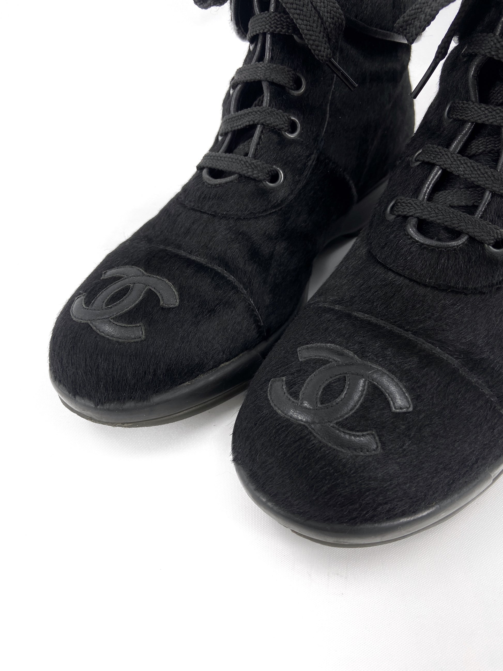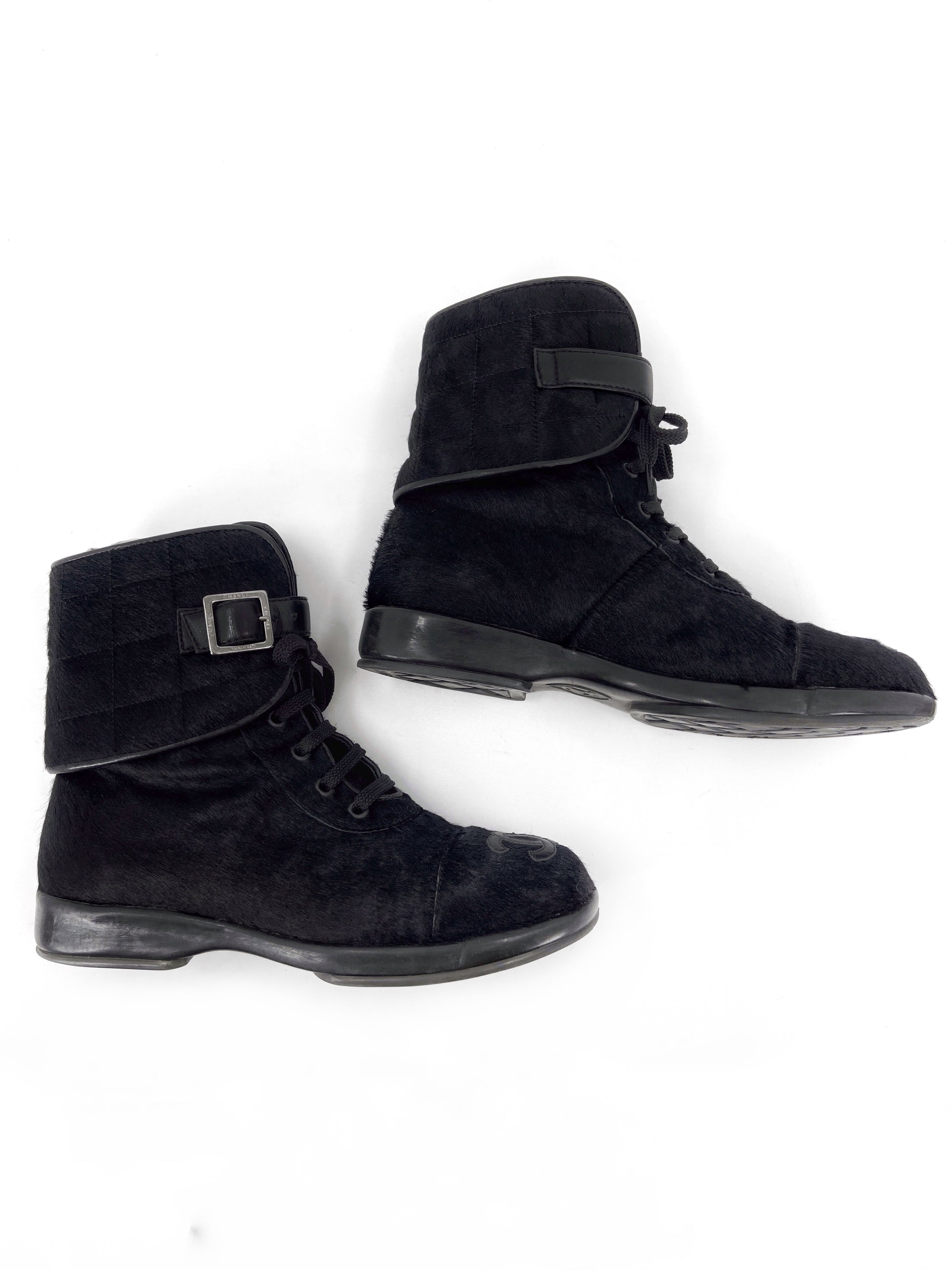 Chanel Fall 2000 Karl Lagerfeld Pony hair Calfskin Logo Quilted Combat boot 38