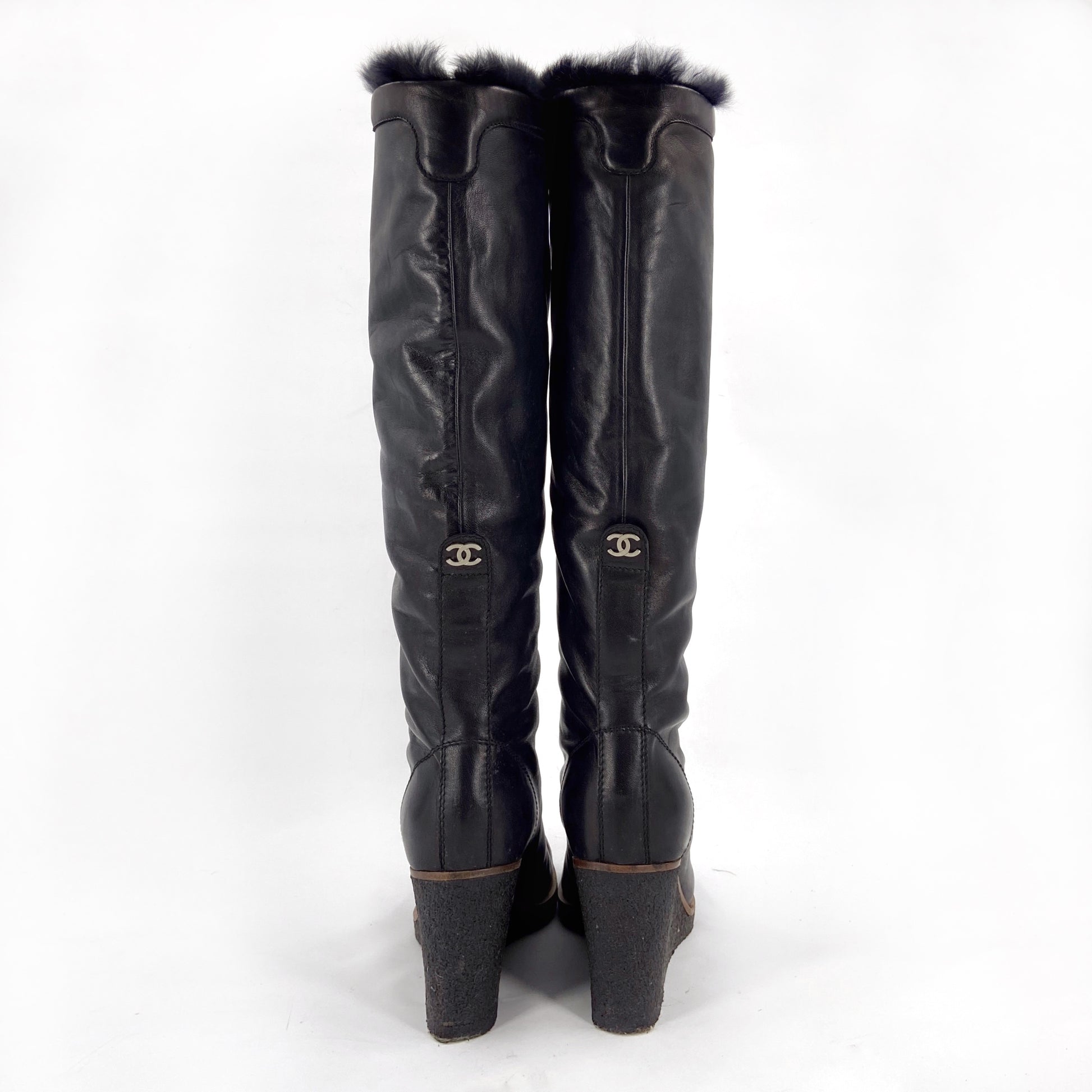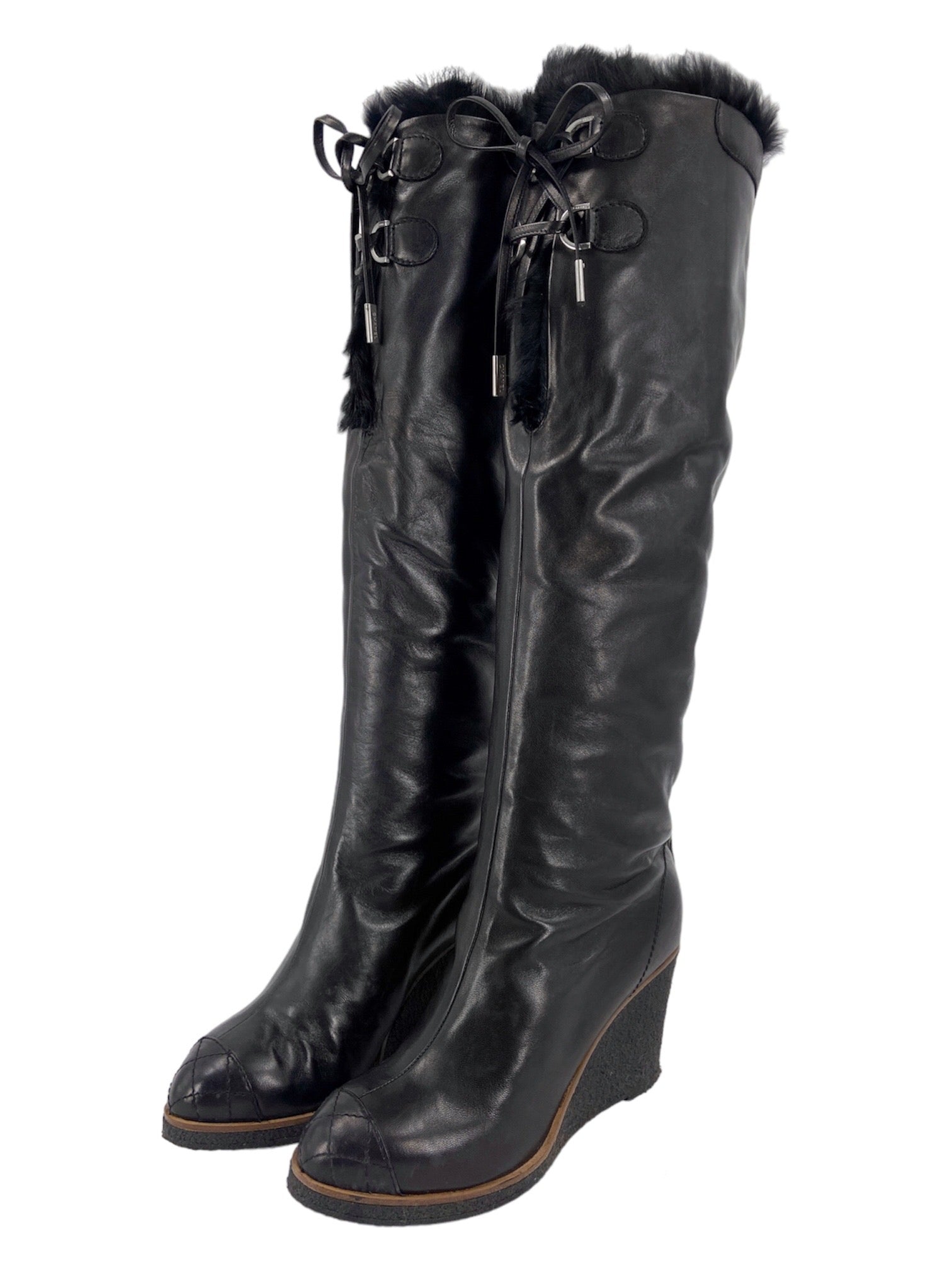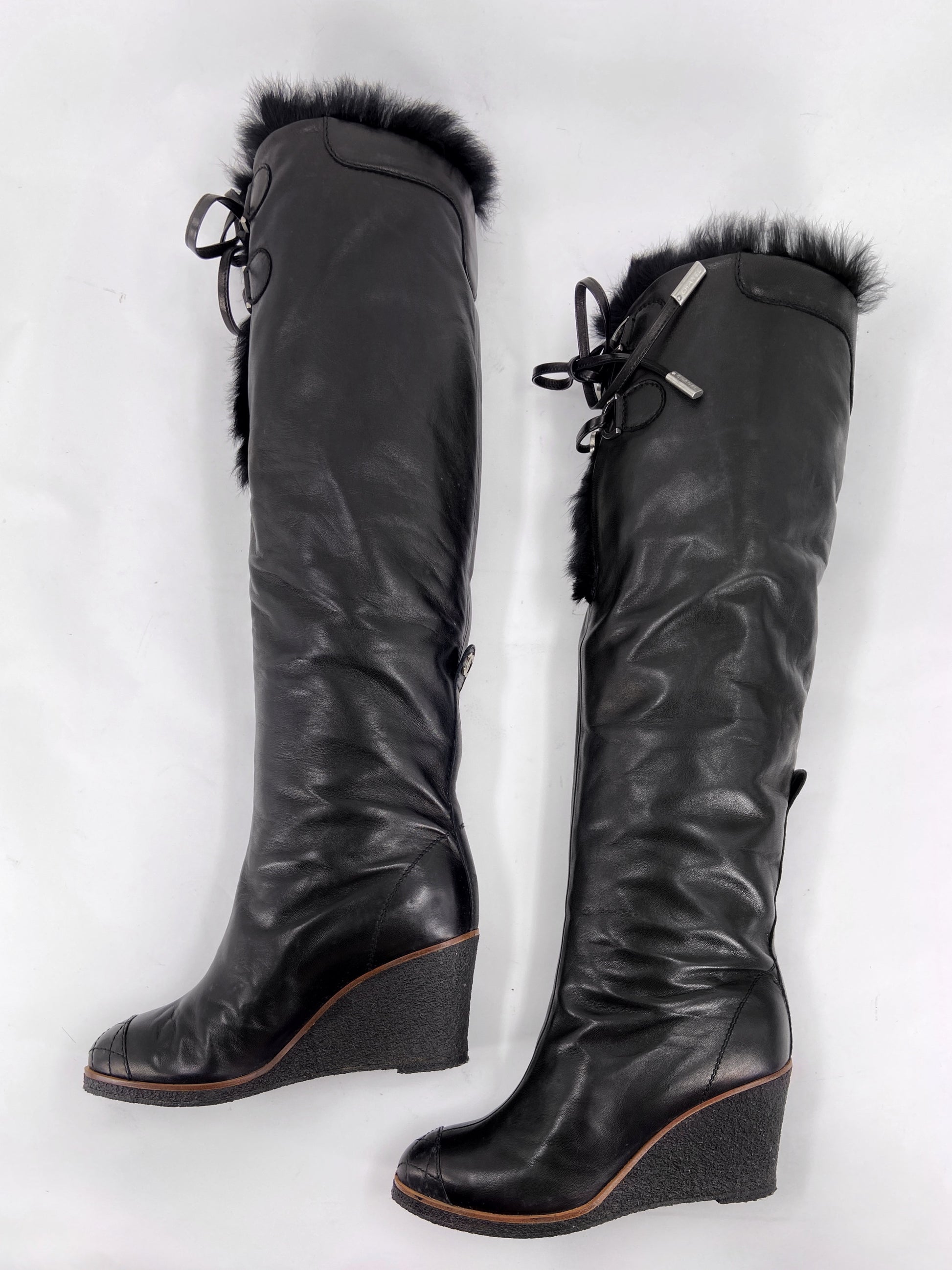 Chanel Fall 2006 Karl Lagerfeld Shearling Lambskin Wedge Long Boot 38