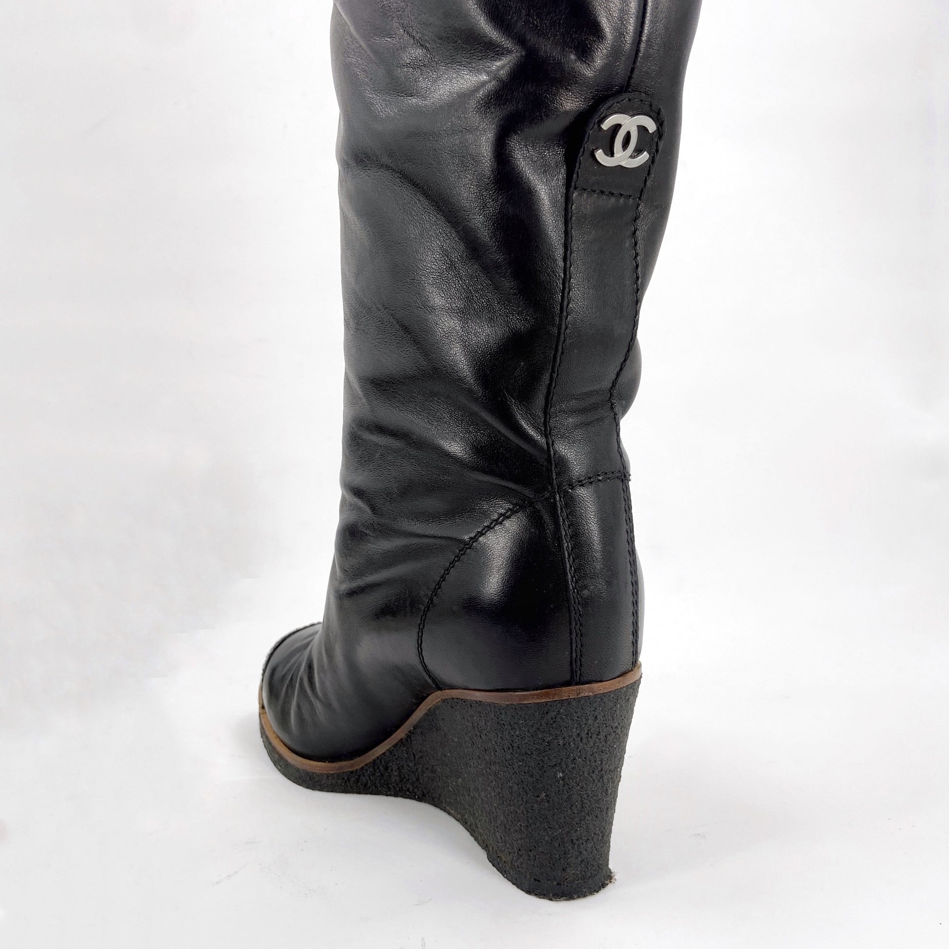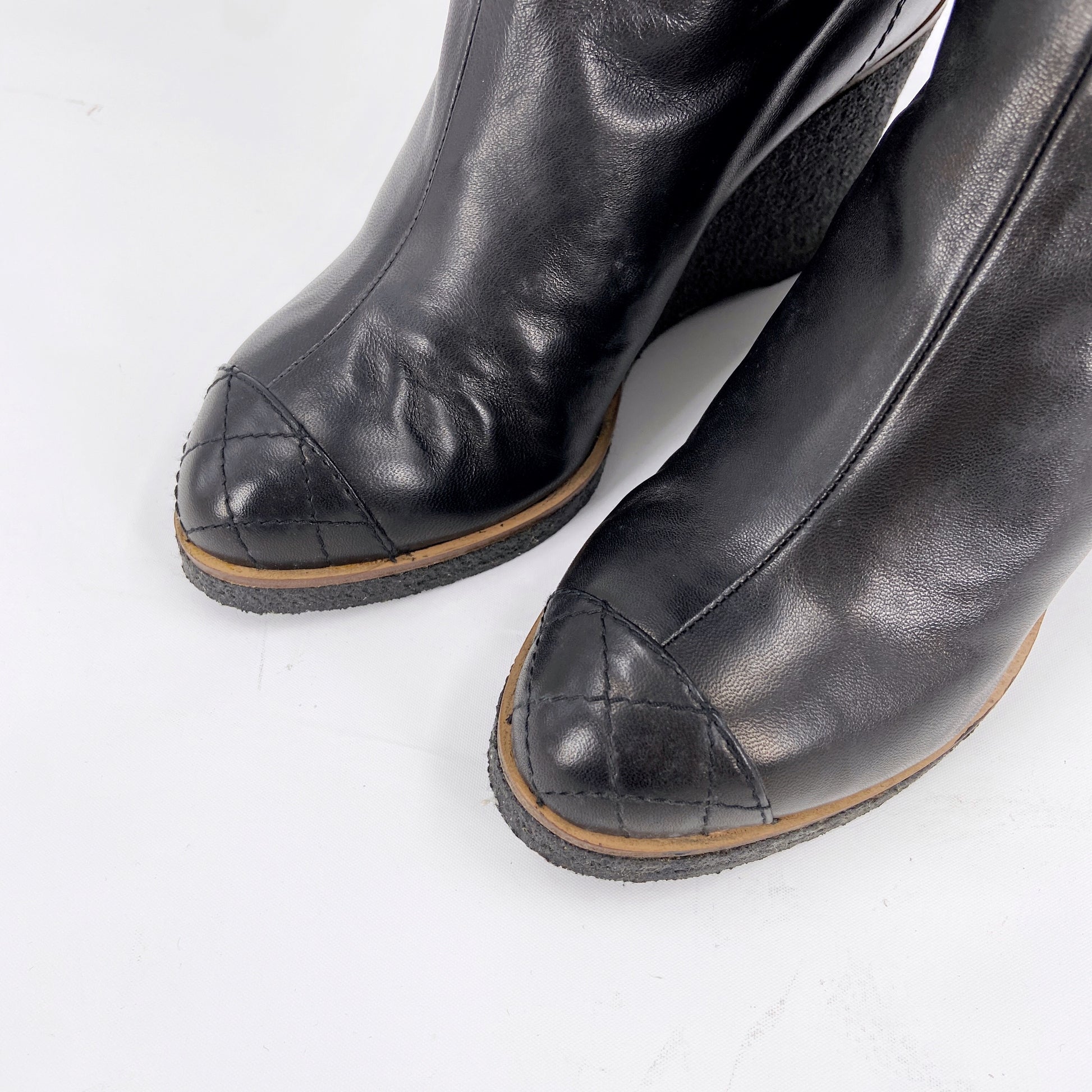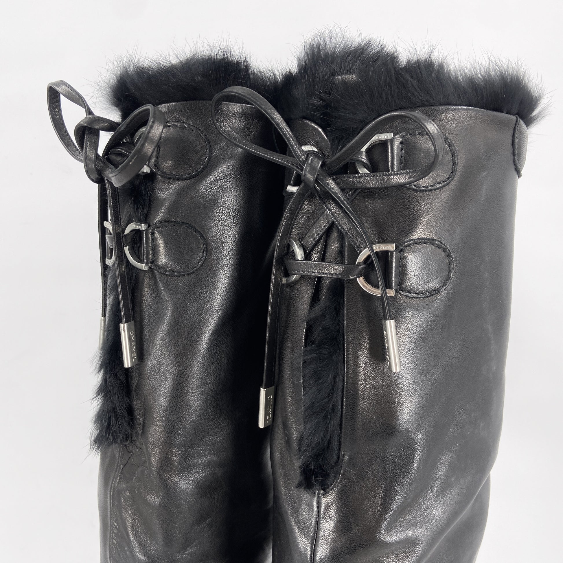 Chanel Fall 2006 Karl Lagerfeld Shearling Lambskin Wedge Long Boot 38