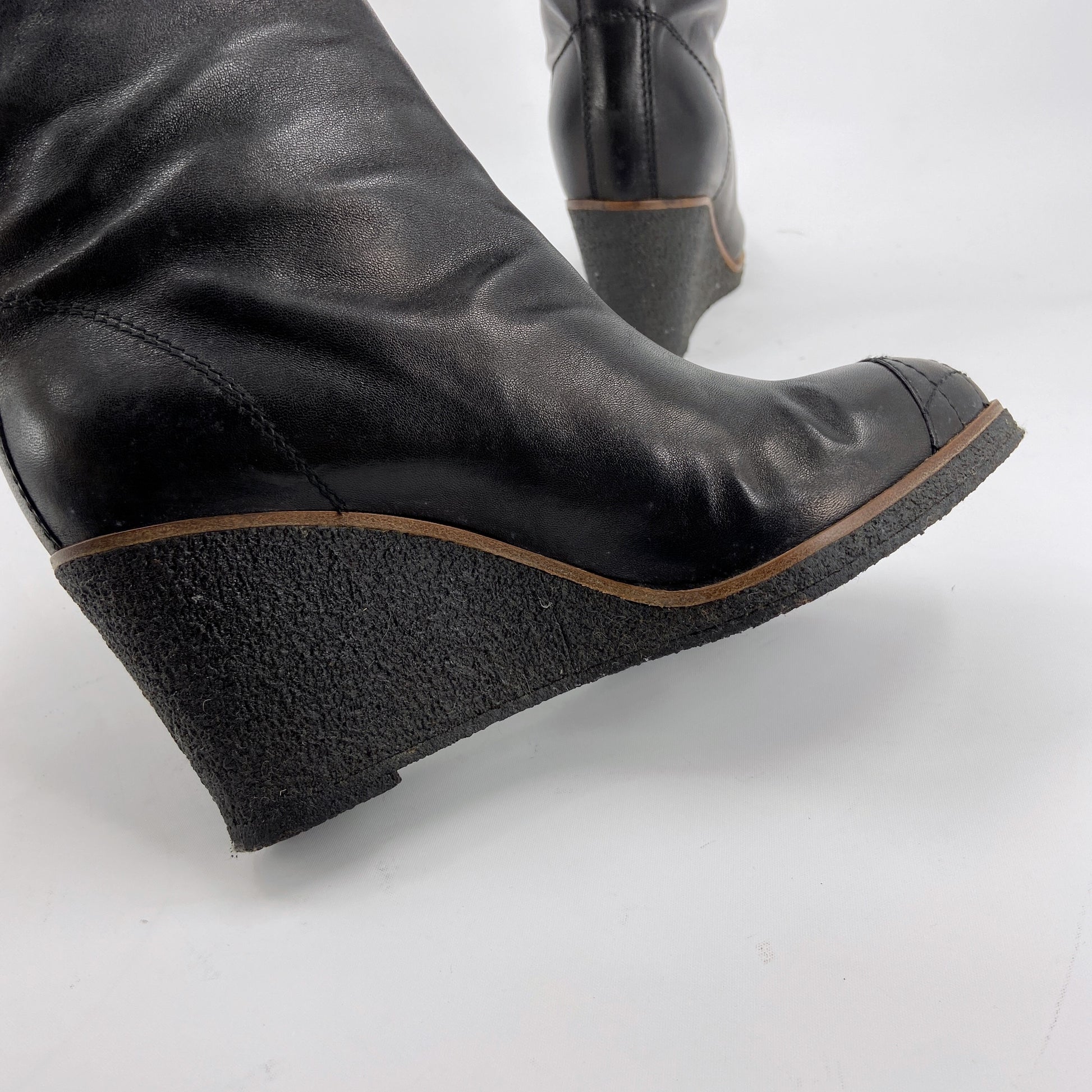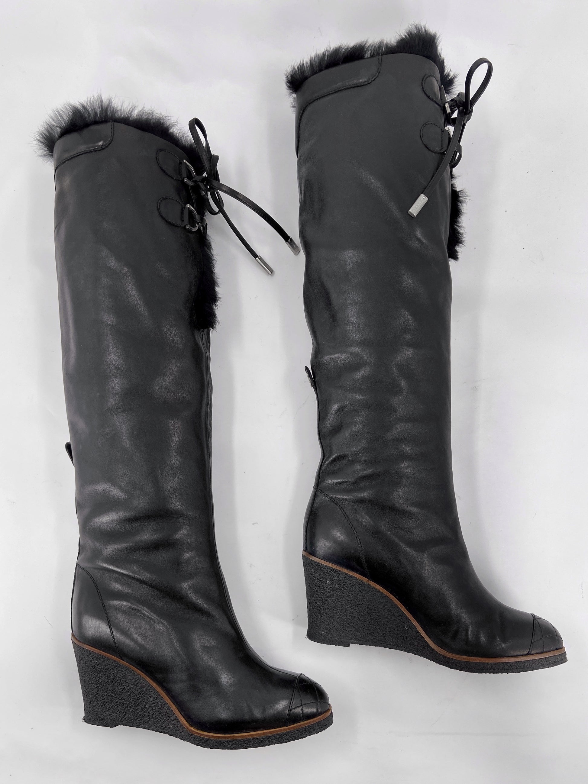 Chanel Fall 2006 Karl Lagerfeld Shearling Lambskin Wedge Tall Boot 38