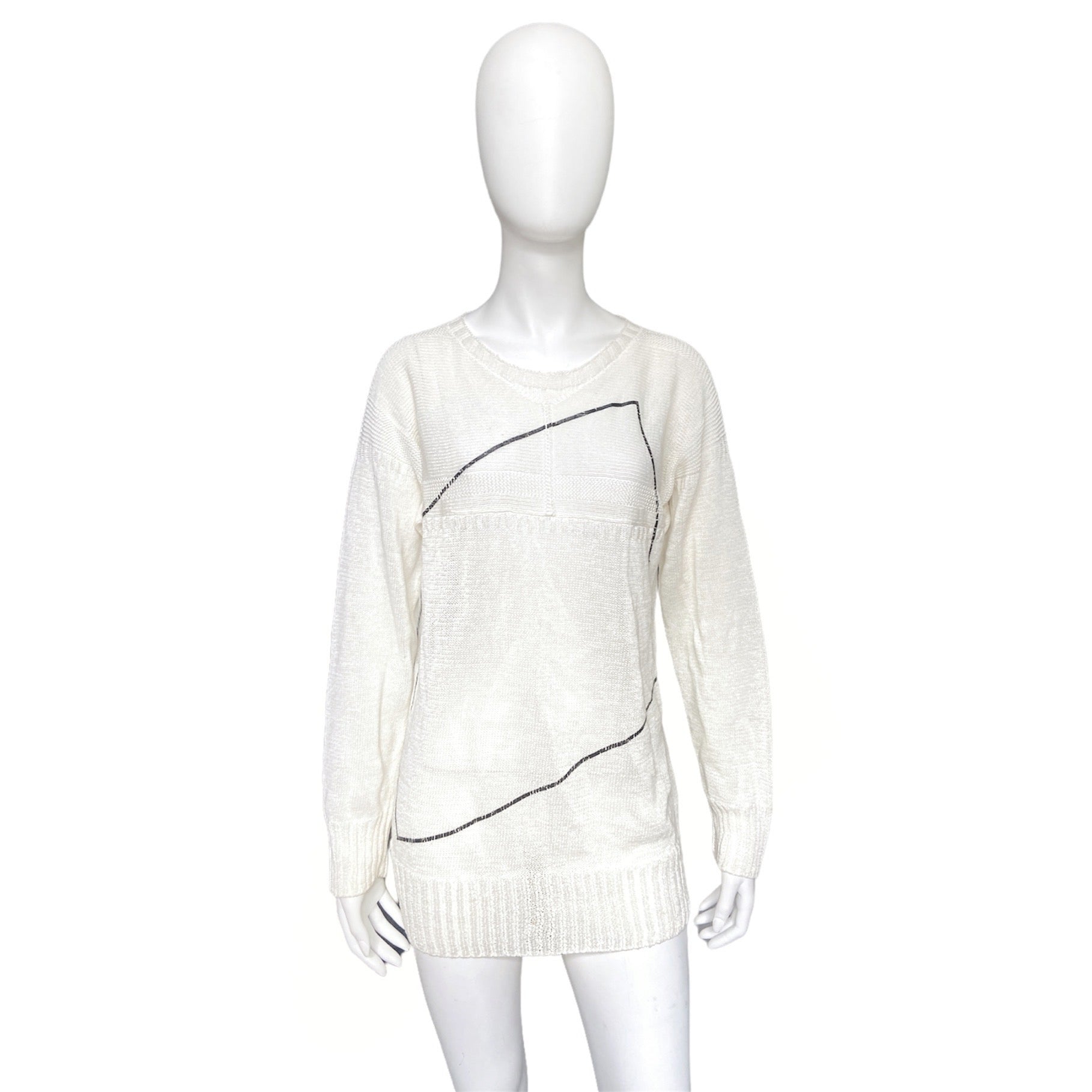 A very rare chanel top by Karl lagerfeld for chanel 2012ss runway, the square geometric motif is feature on multiple looks, including this one in a relaxed fit. The knit is overall in good condition, mild pillage of the square print and some minor yellow spots.