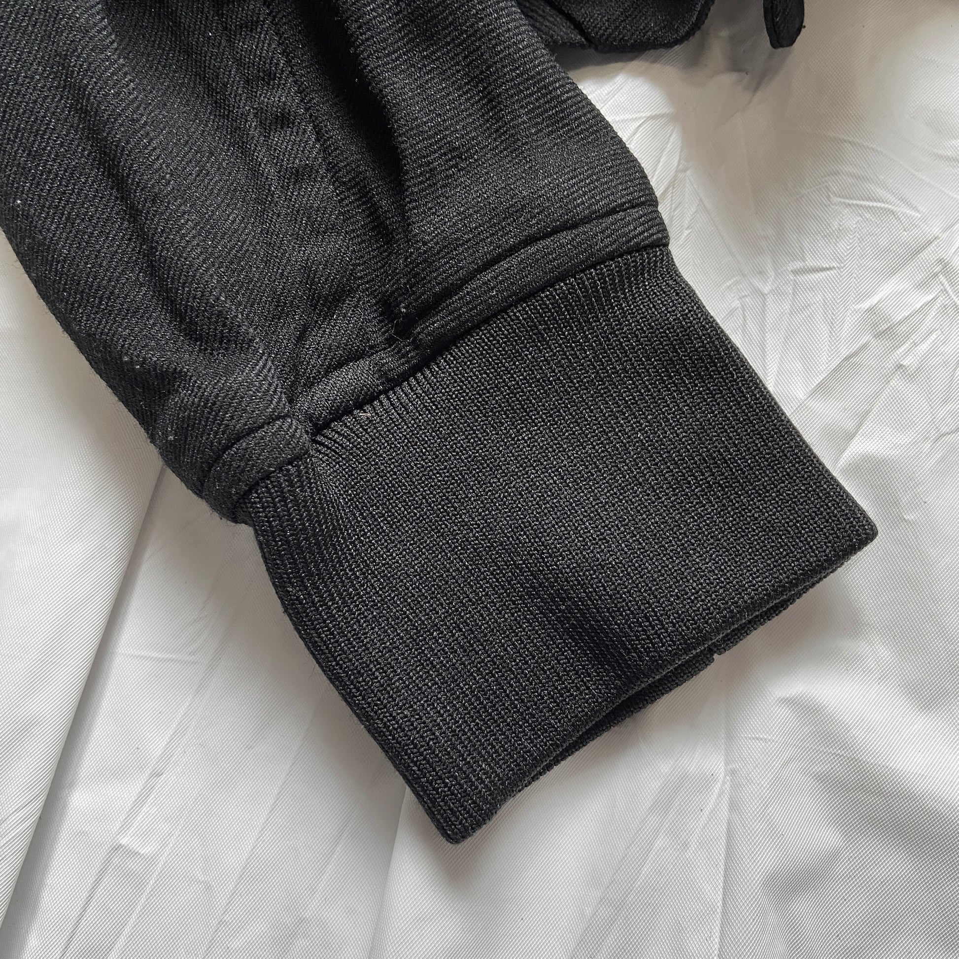 A very cropped polyester jacket from grandma rei’s brilliant “Baseball” collection, fitting that they made a baseball jacket for that collection, the pocket flaps are just decor and situated on the outside of the jacket. This is the polyester version of the runway leather one, with buttons and silver buckles at the back. Super chic and sexy. Mint condition, no defects.