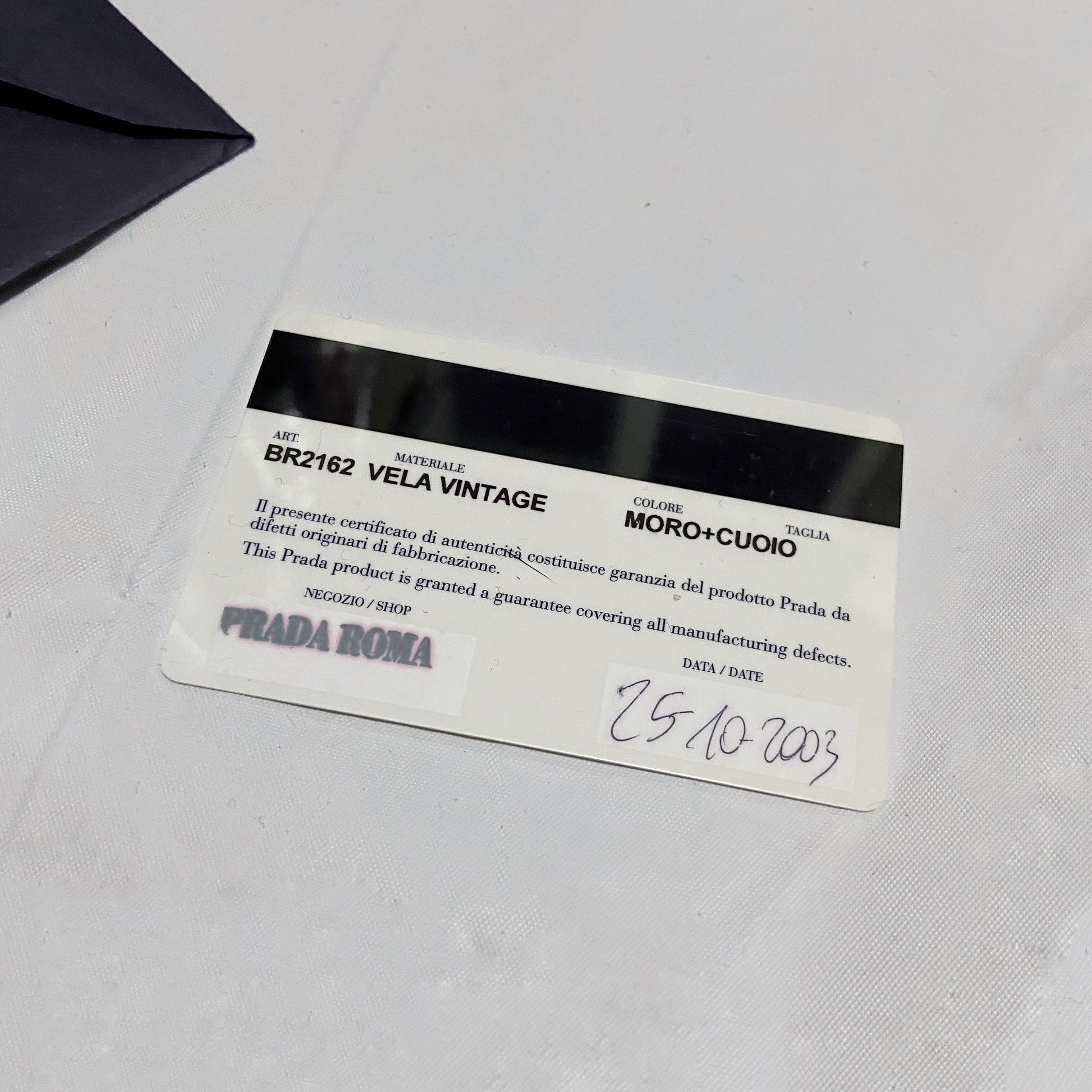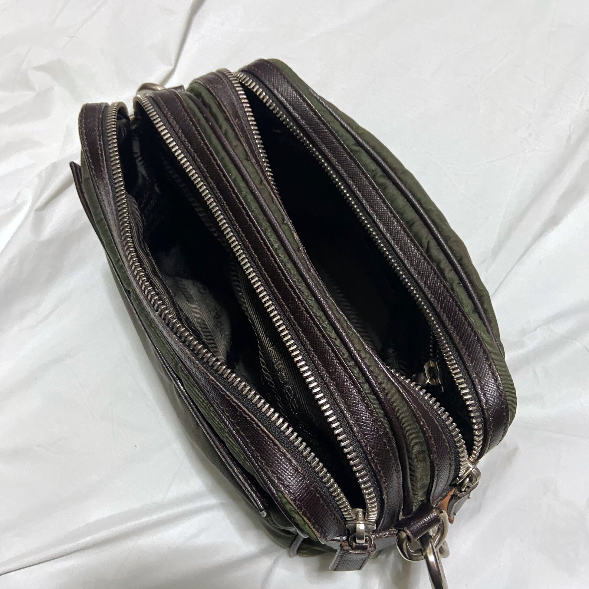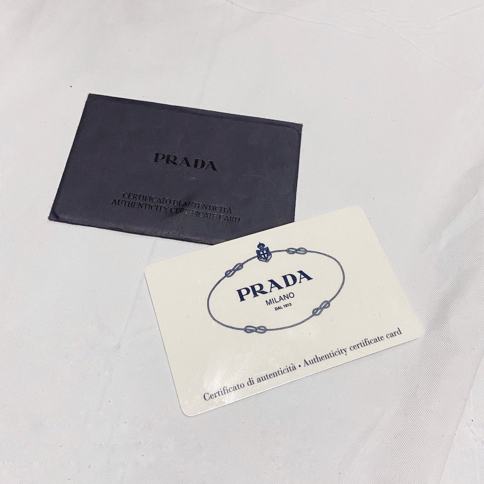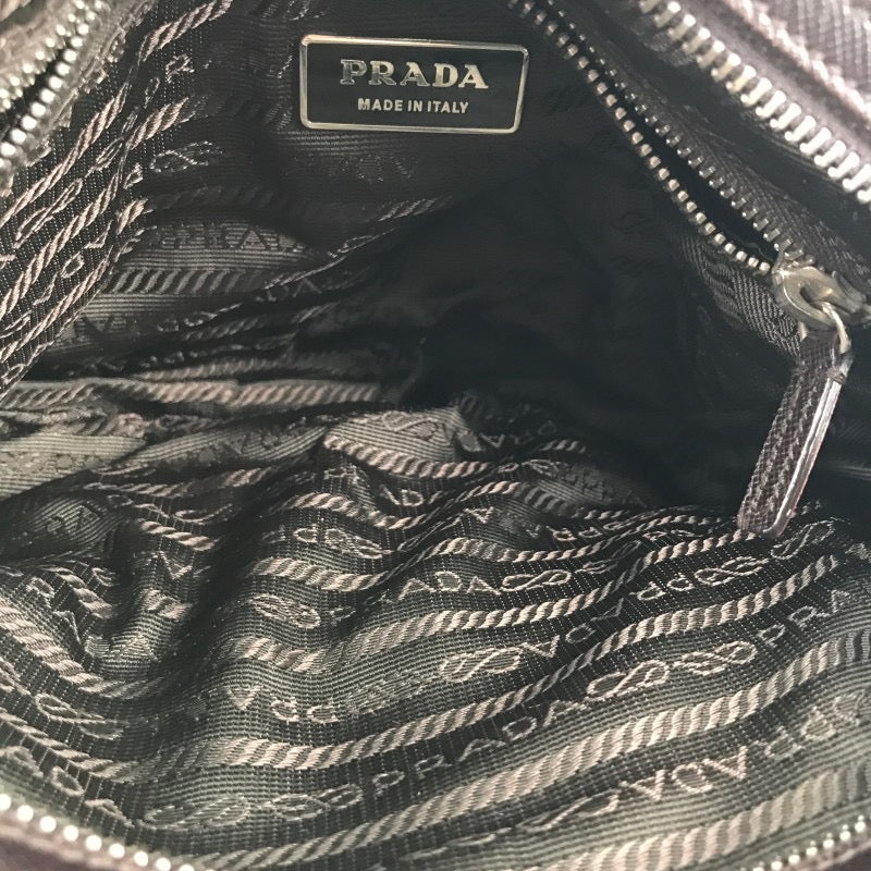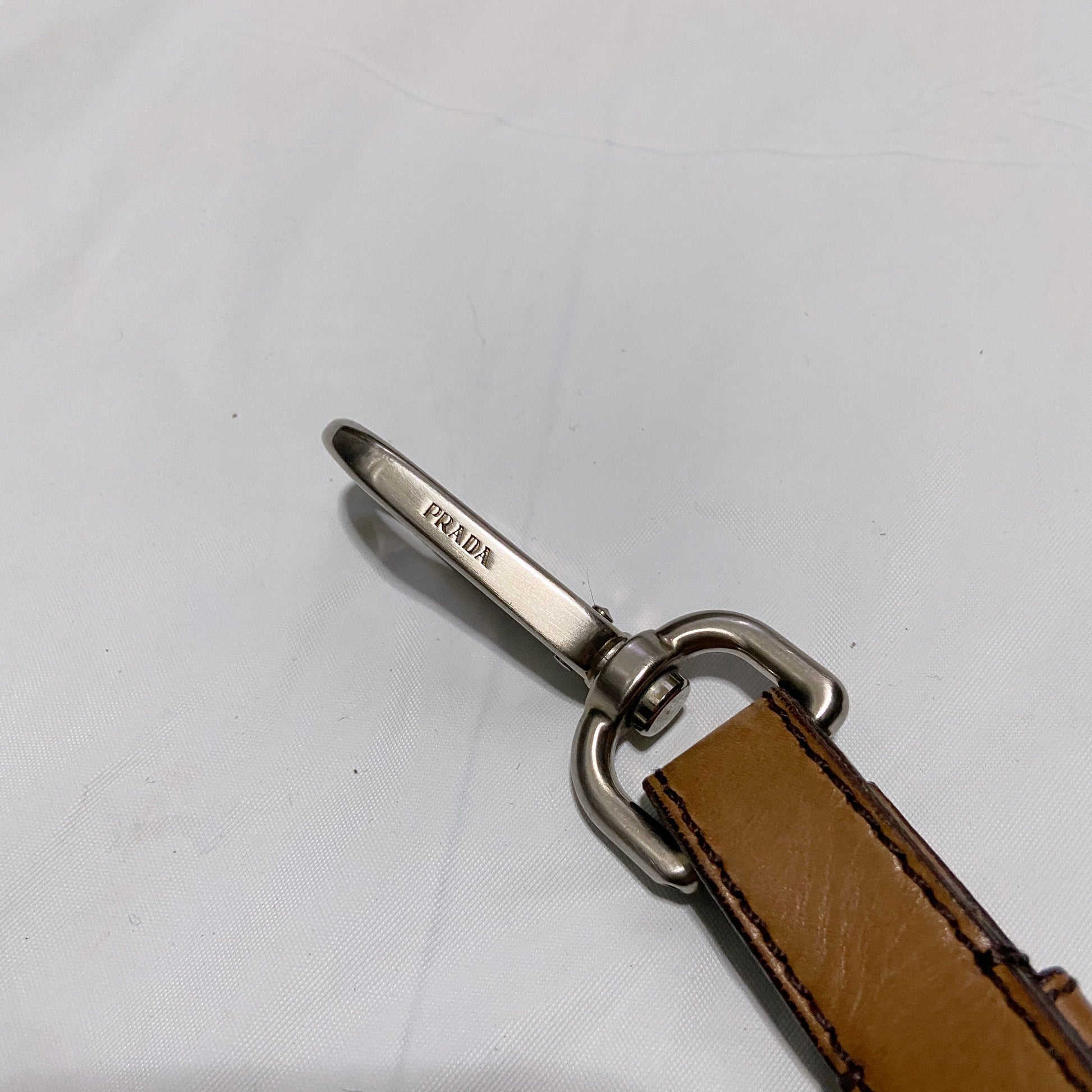 The leather strap adds a touch of sophistication, while the Prada triangle logo on the front adds a touch of luxury.