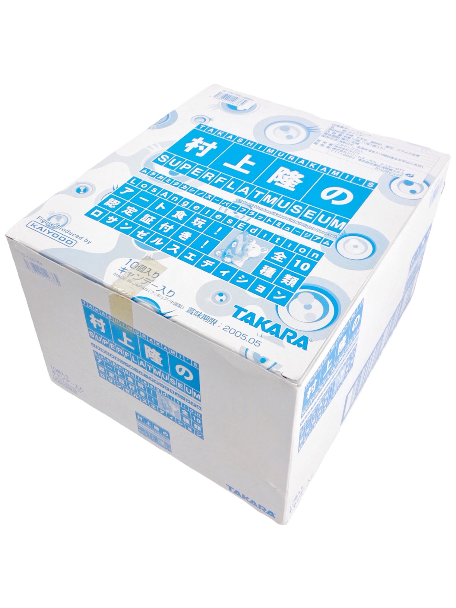 Amazing collection of brand new fully sealed pack of takashi’s 2005 superflat collection. Outer box is opened and each of the ten individual boxes were opened from the bottom. Each box contains an information pamphlet about the particular figurine cotained and the sealed package of figurines. Each figurine comes with its own authentication slip and are ready to be assembled by you!