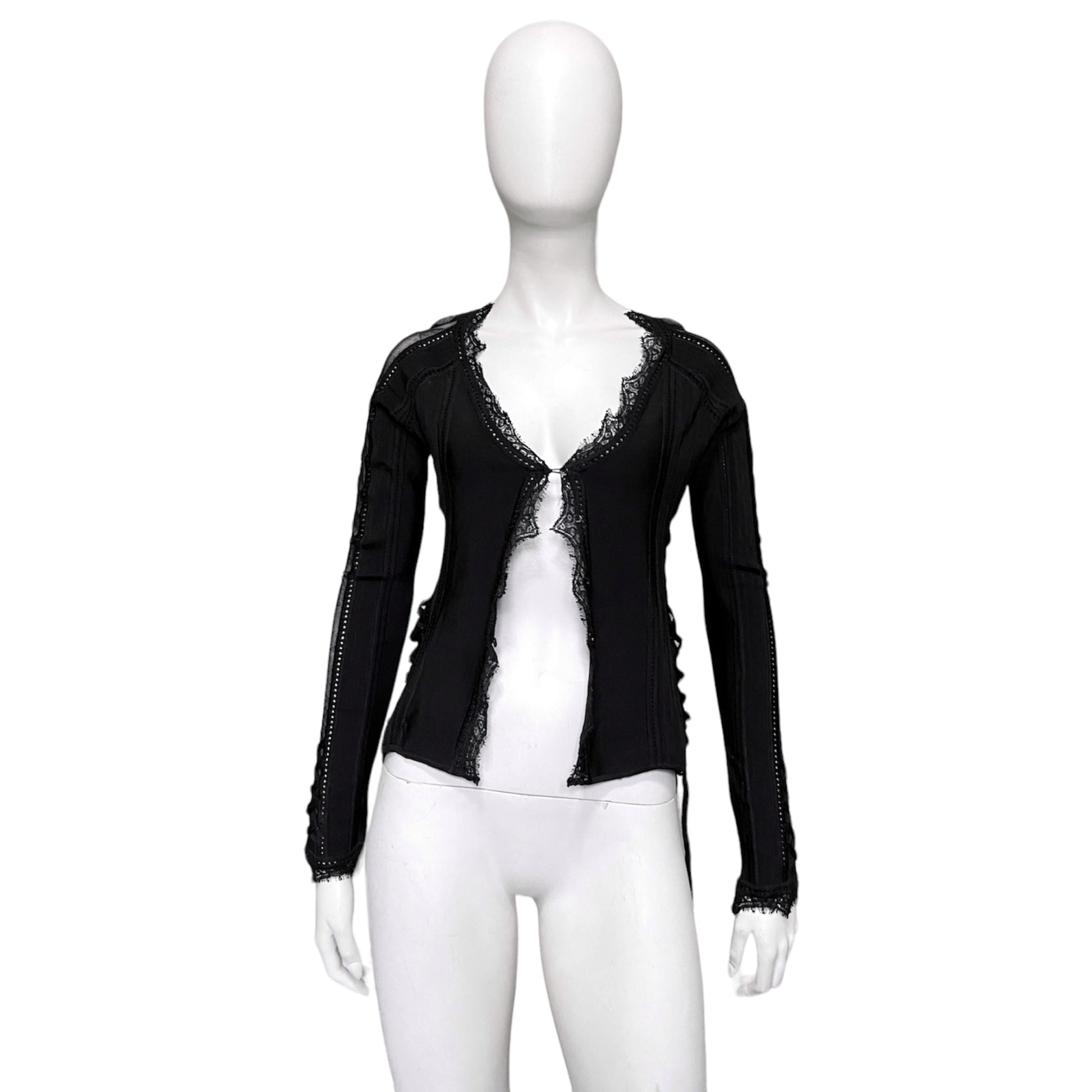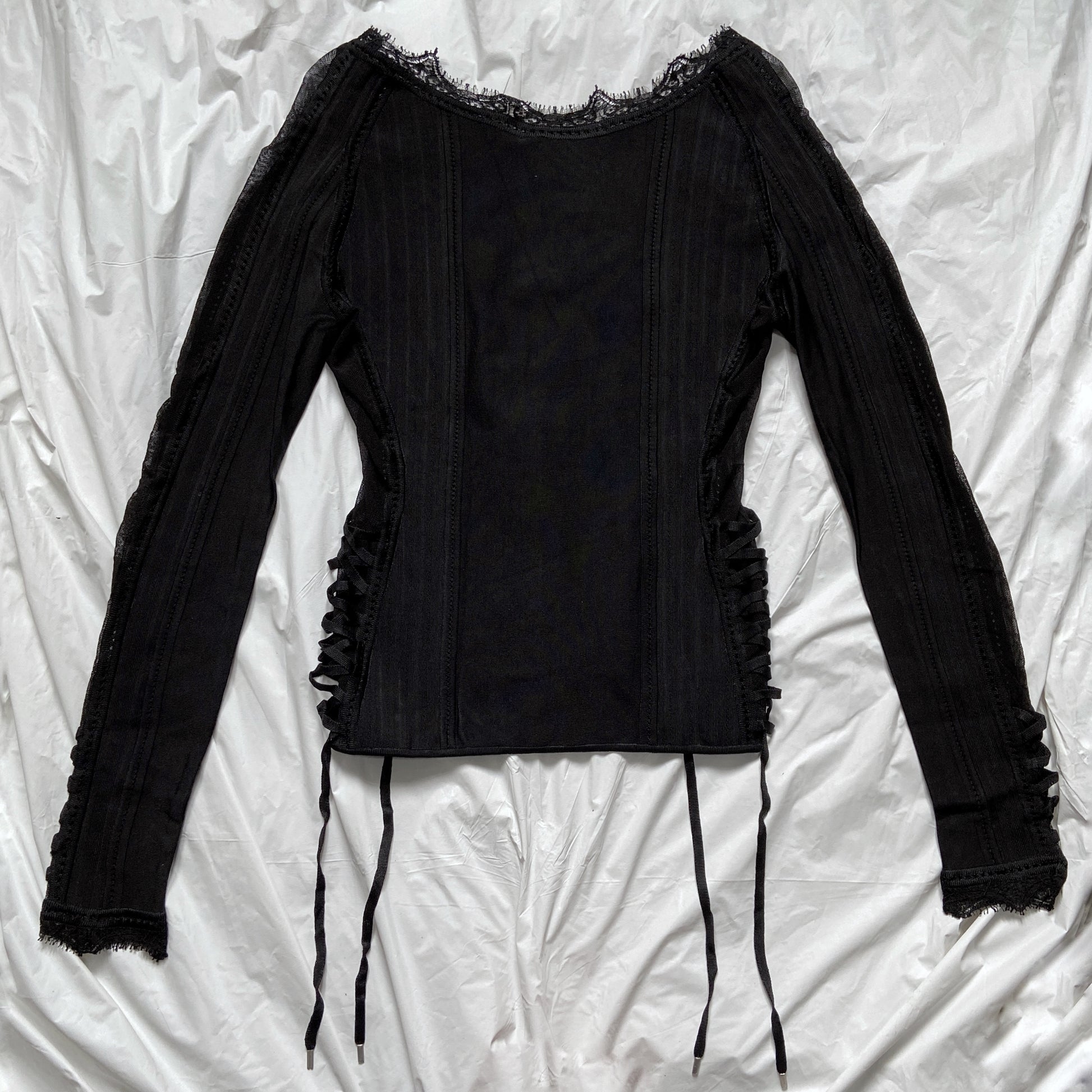 Dior Galliano Spring 2005 Black Bondage Lace Trim Corset Top