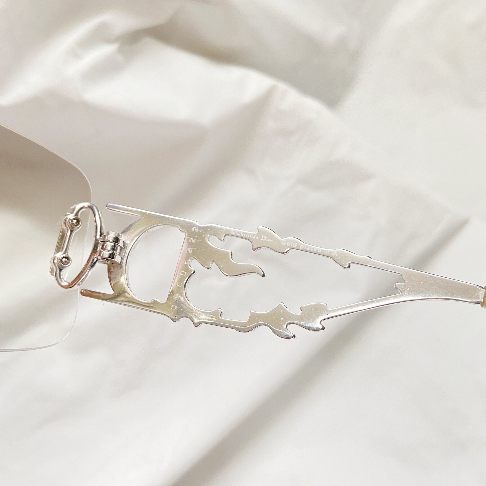 Some very y2k sunglasses from Christian Dior by John Galliano. Rimless design with side flames/logo and Swarovski Crystals embellishments. Some slights scratches on the lens but not very visible. In good condition. Comes with original case.