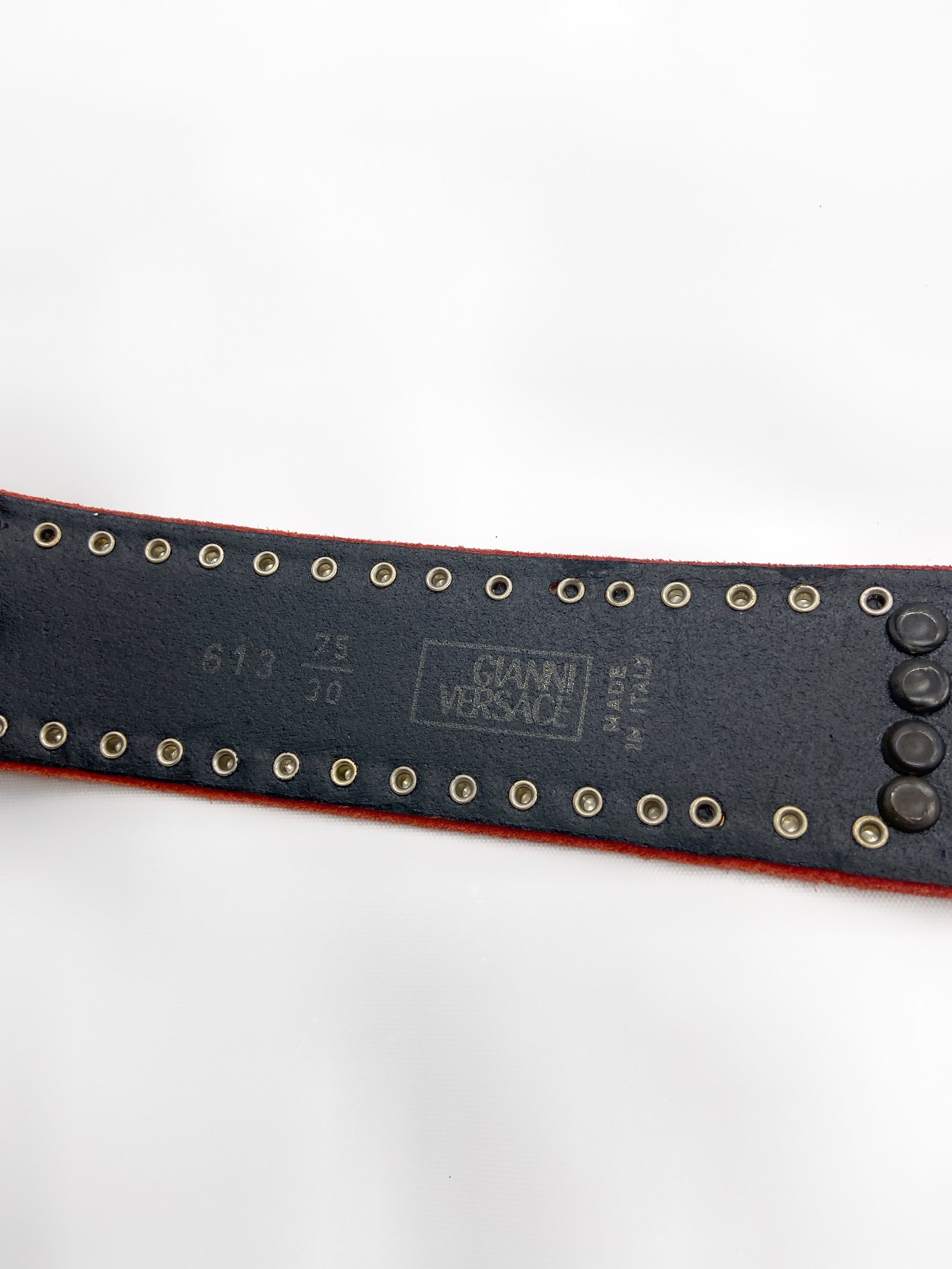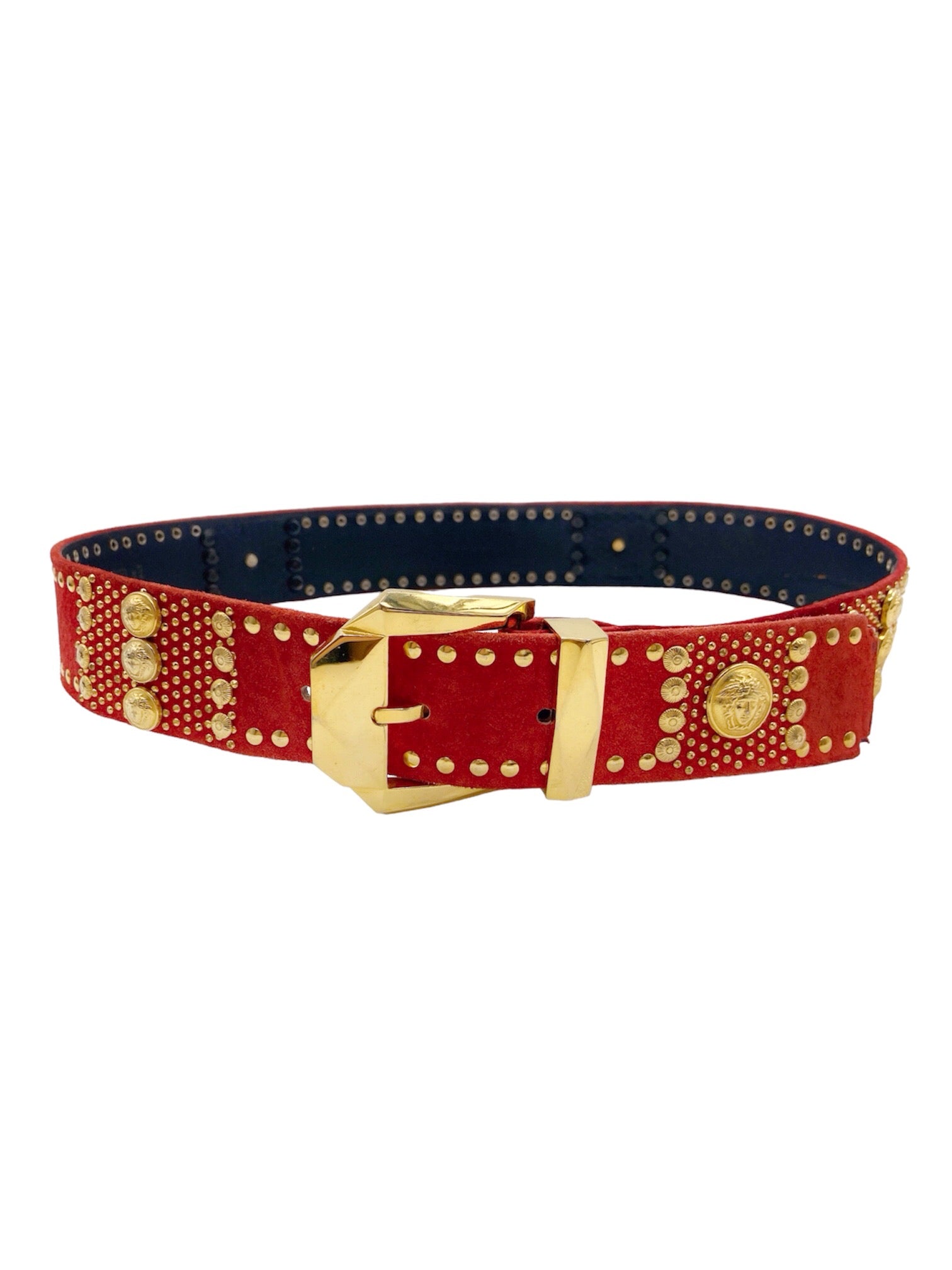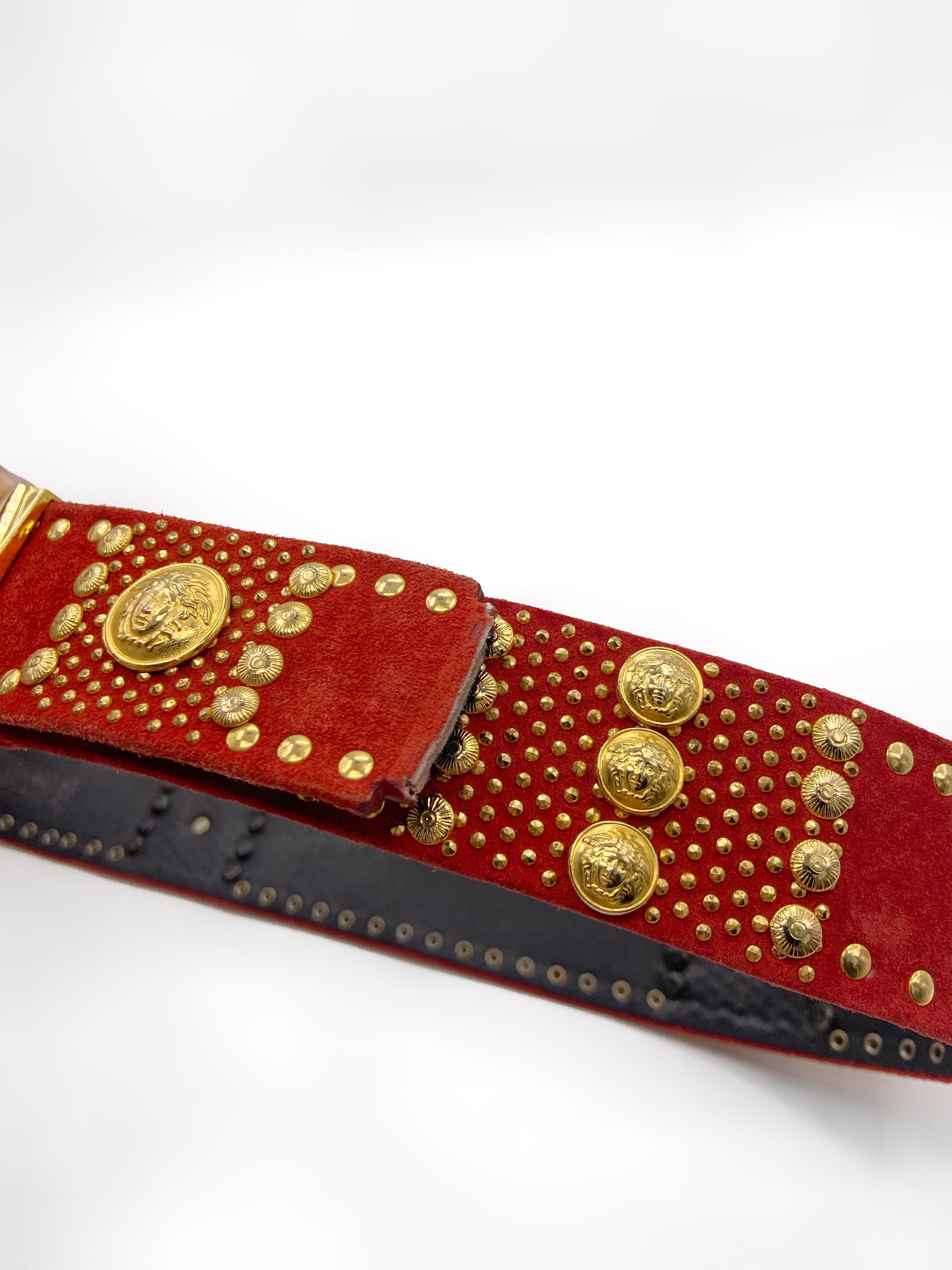 Gianni Versace 90s Red Suede Gold Studded Belt 30
