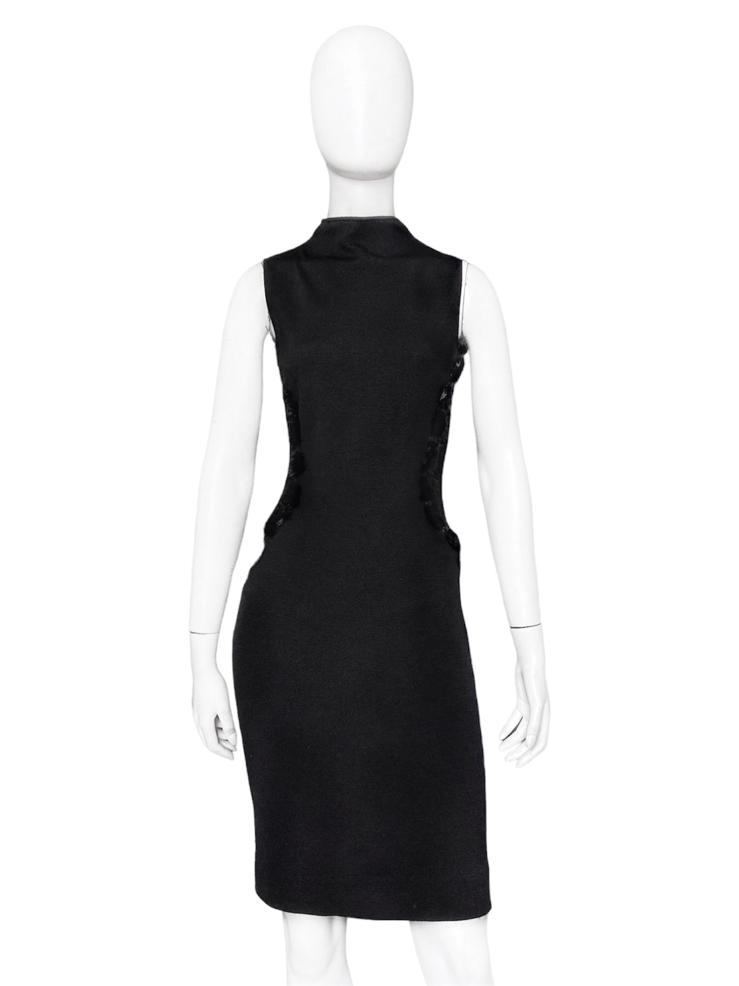 Gianni Versace Fall 1999 Donatella Mink Fur Trim Wool Stretch Dress 38