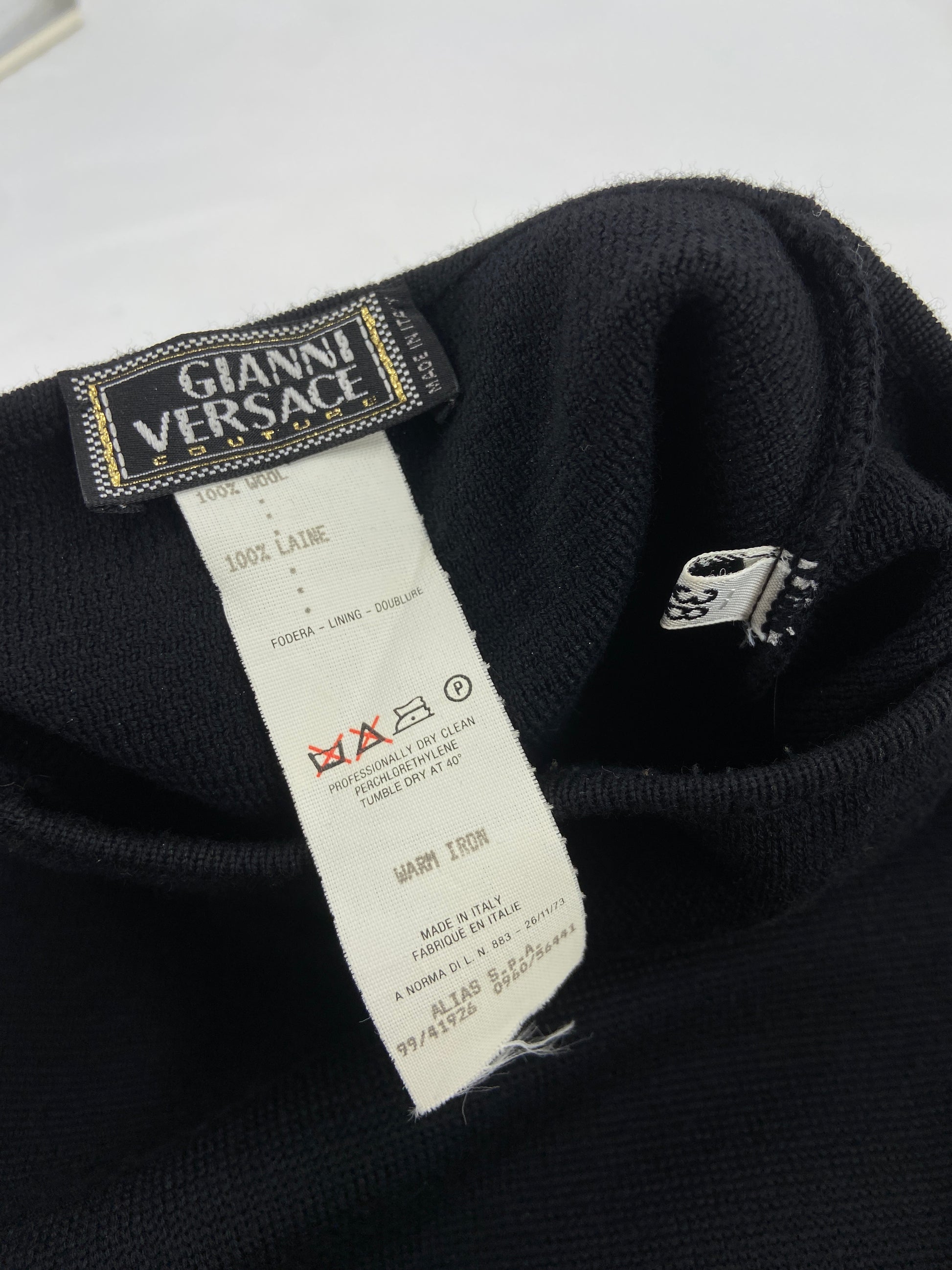 Gianni Versace Fall 1999 Donatella Mink Fur Trim Wool Stretch Dress