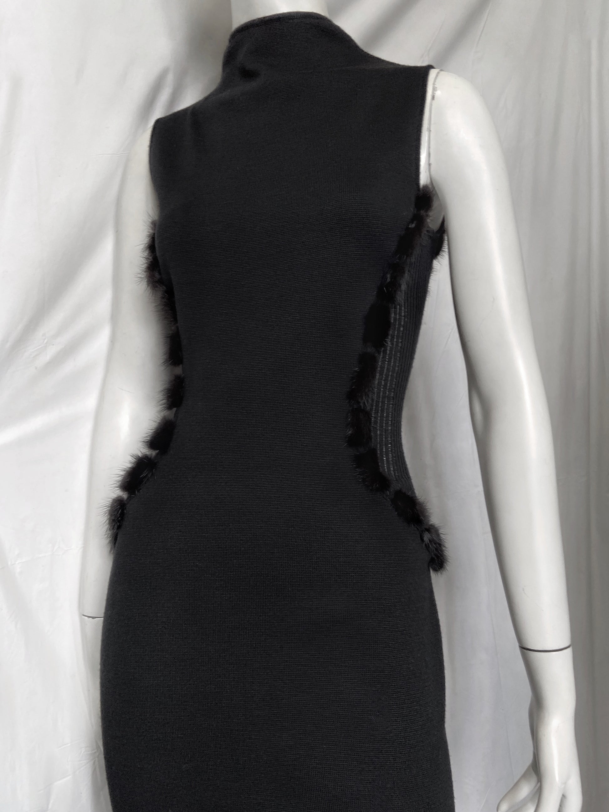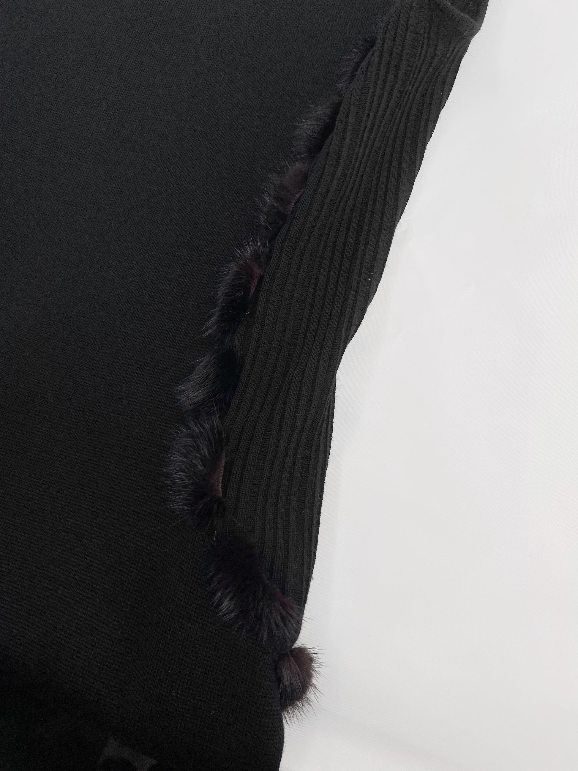 Constructed with a stretch wool knit fabric with slits that shows the mink trims sewn in the fabric on the sides
