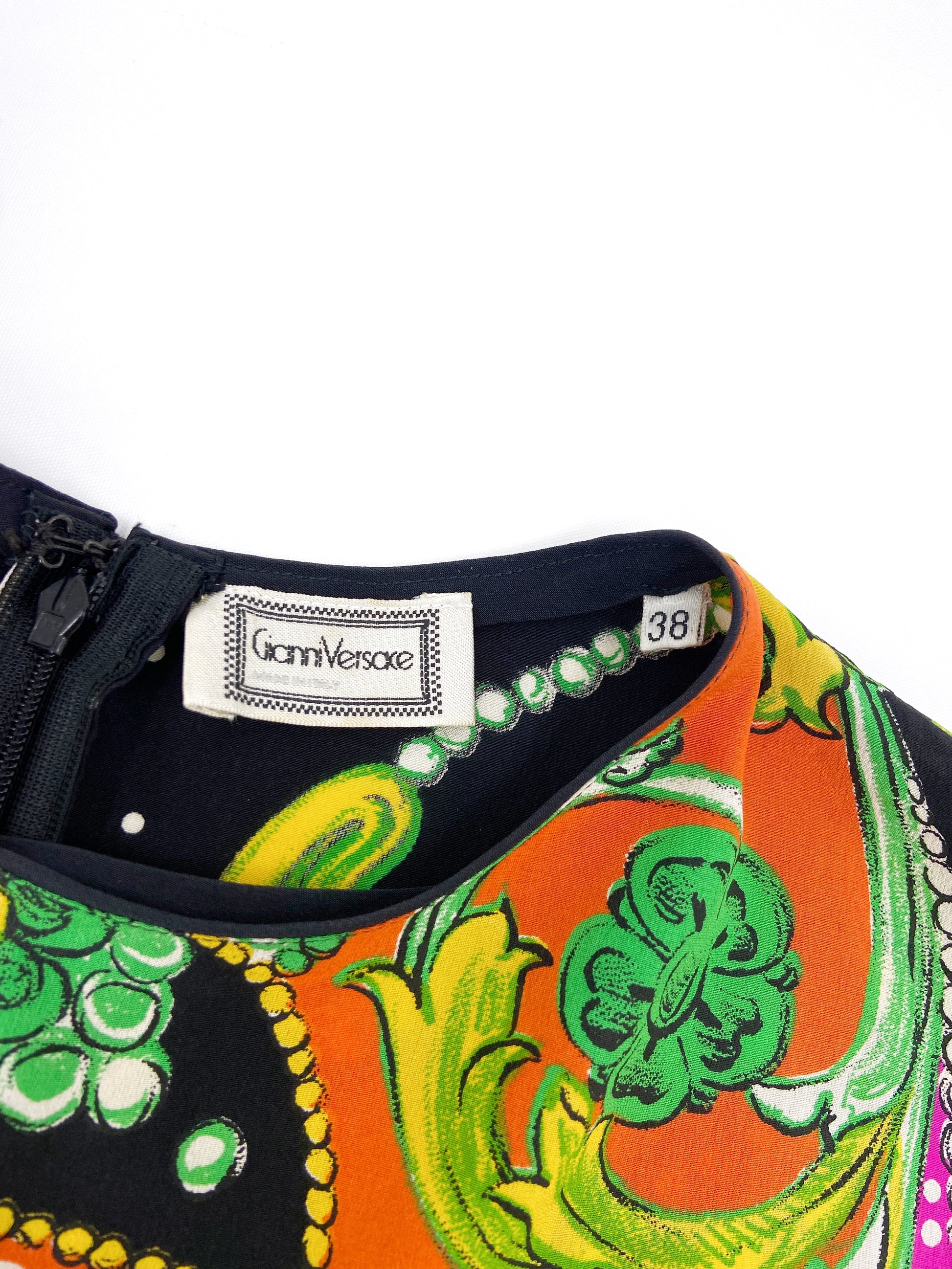 From Spring 1991 collection designed by the late Gianni Versace, a collection where his greco-roman obsession manifests into colour way creations and designs, incorporated with baroque-esque graphics