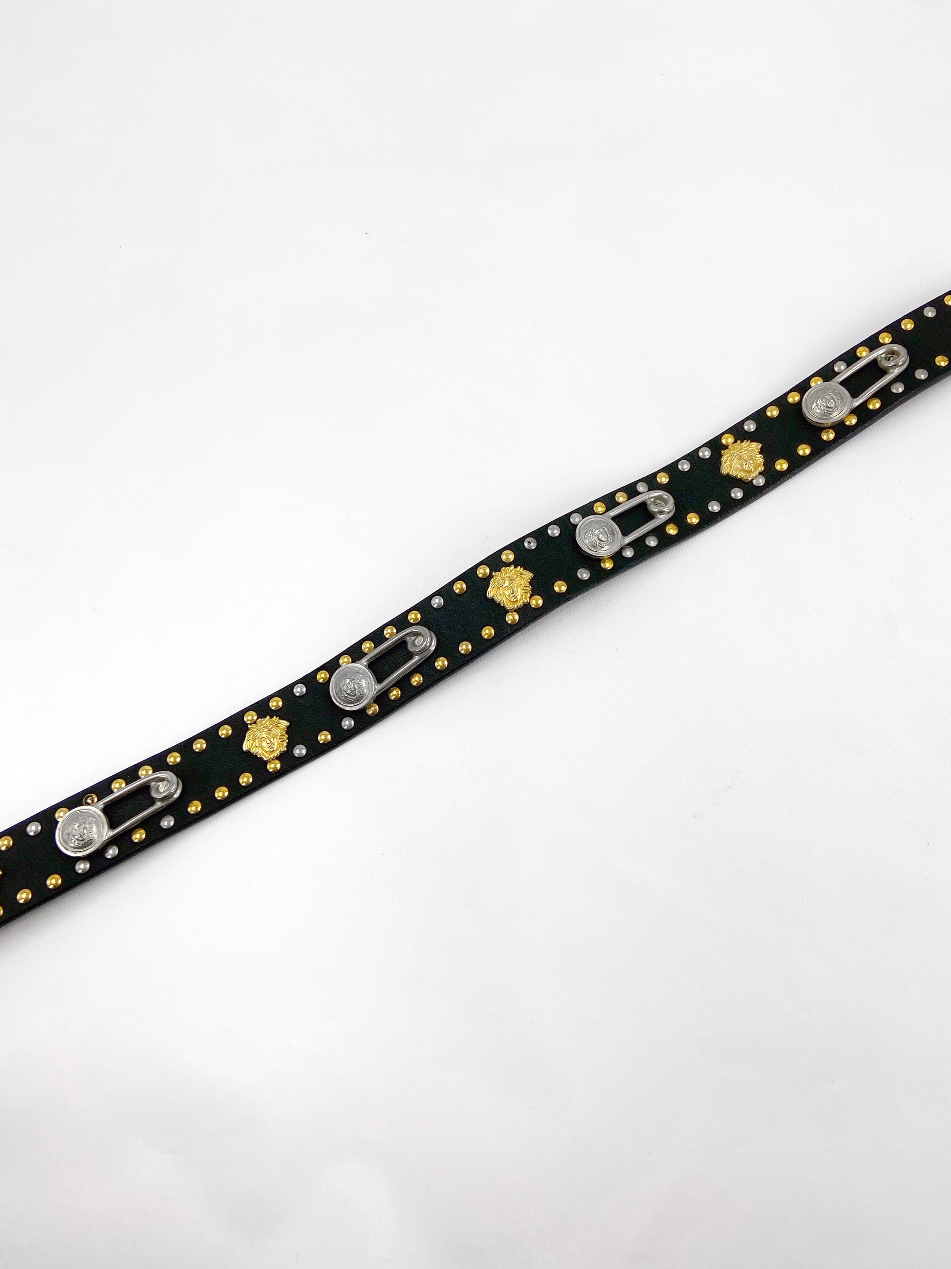 Gianni Versace Spring 1994 Men’s Safety Pin Leather Embellished Belt 32