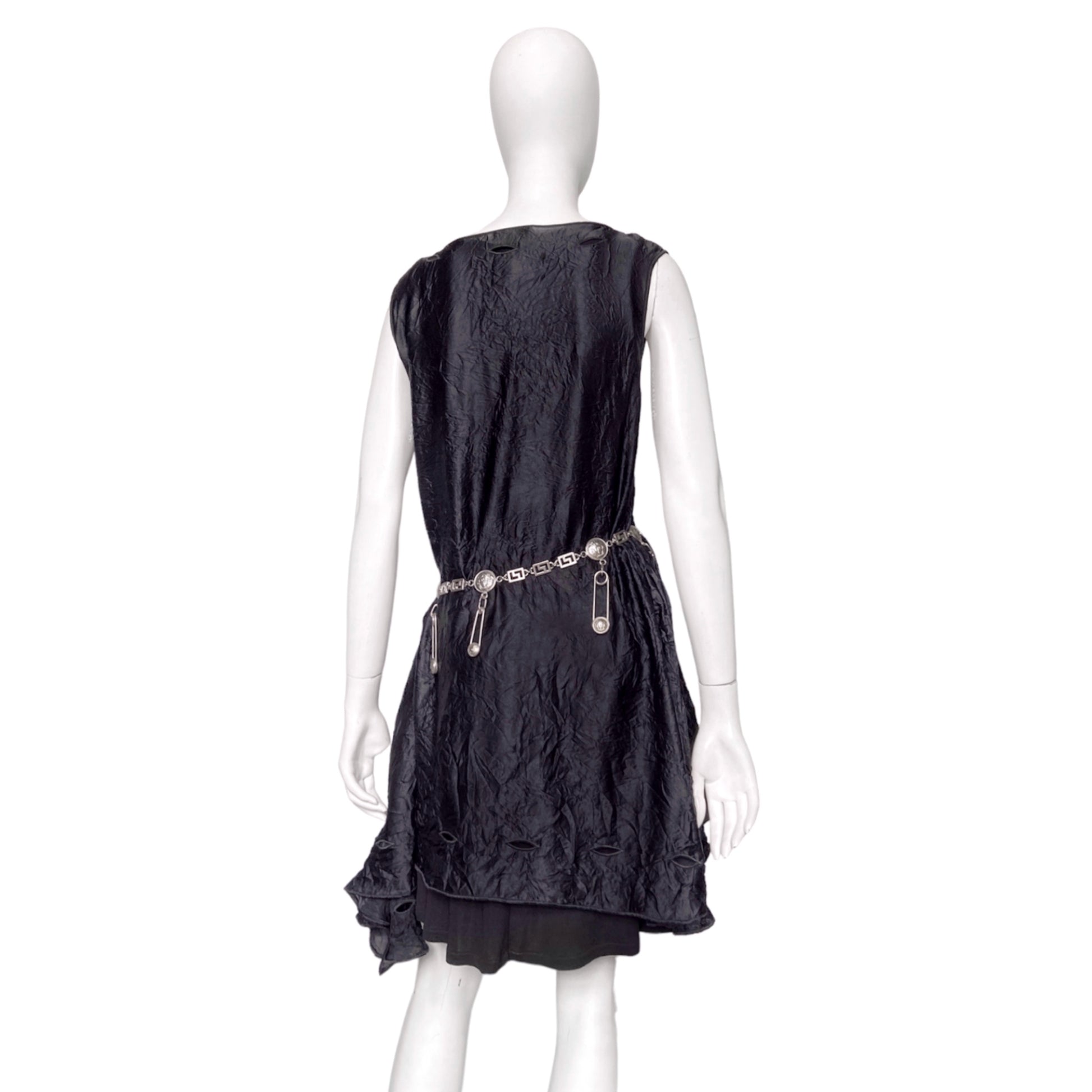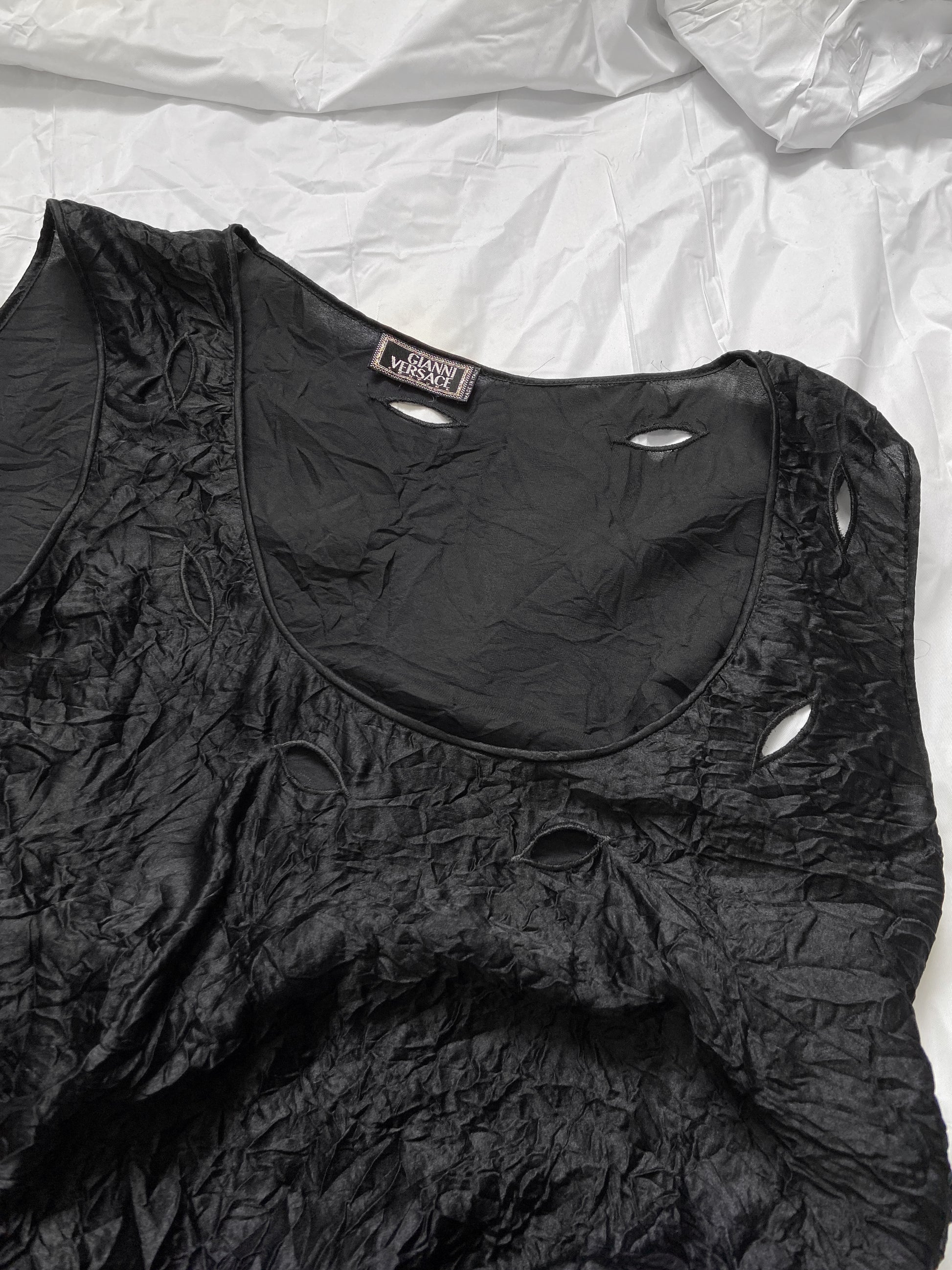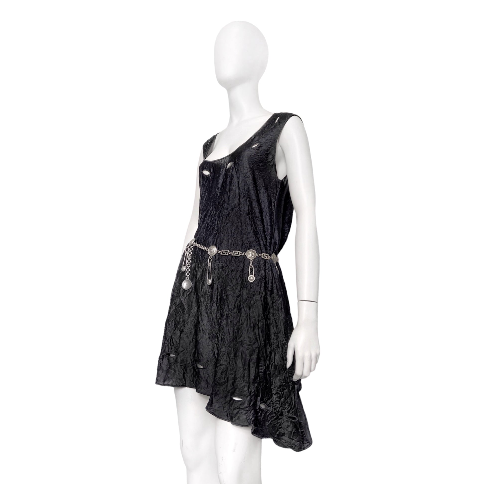 Gianni Versace Spring 1994 Runway Wrinkled Black Silk Eyelet Dress Set