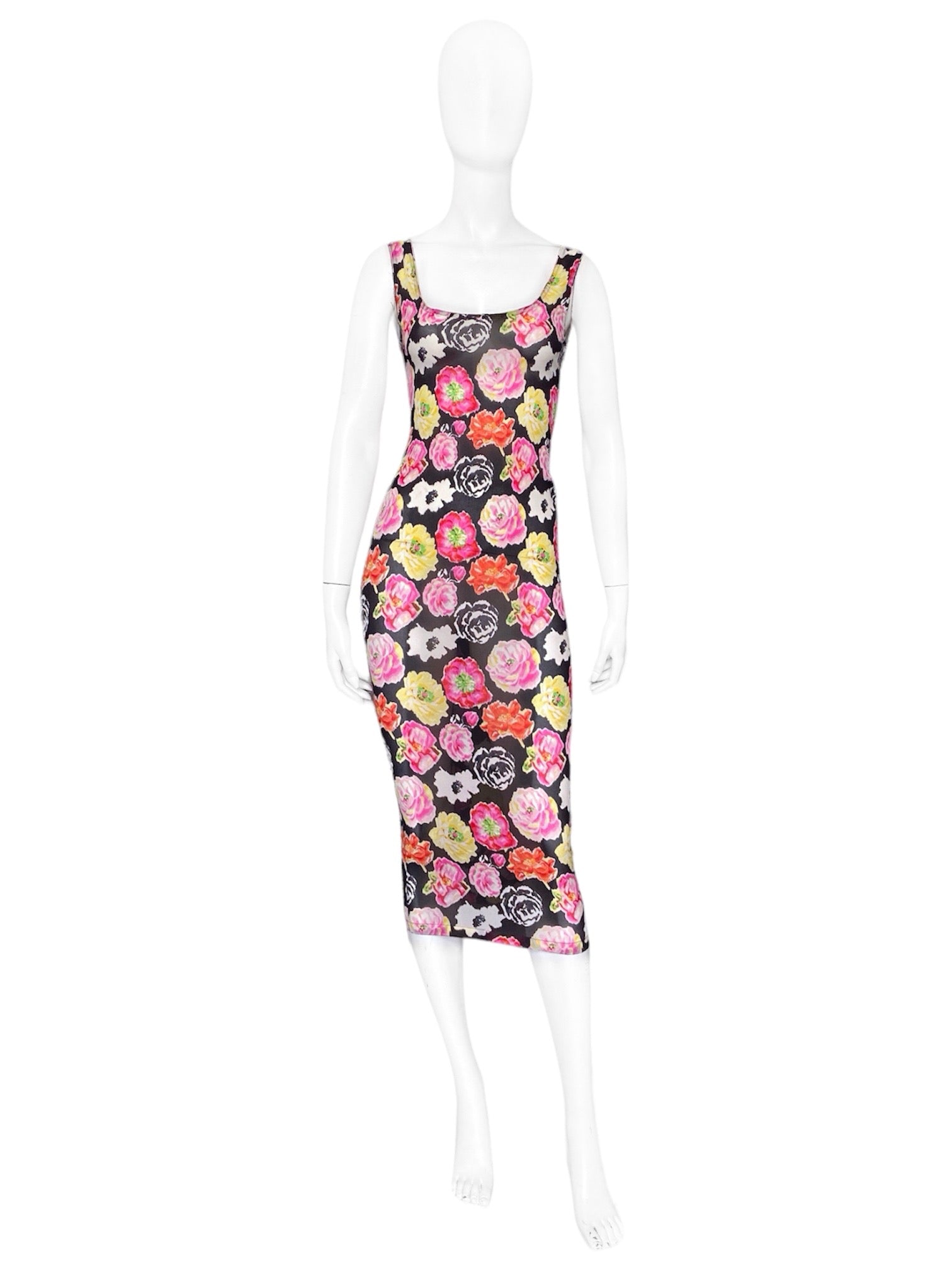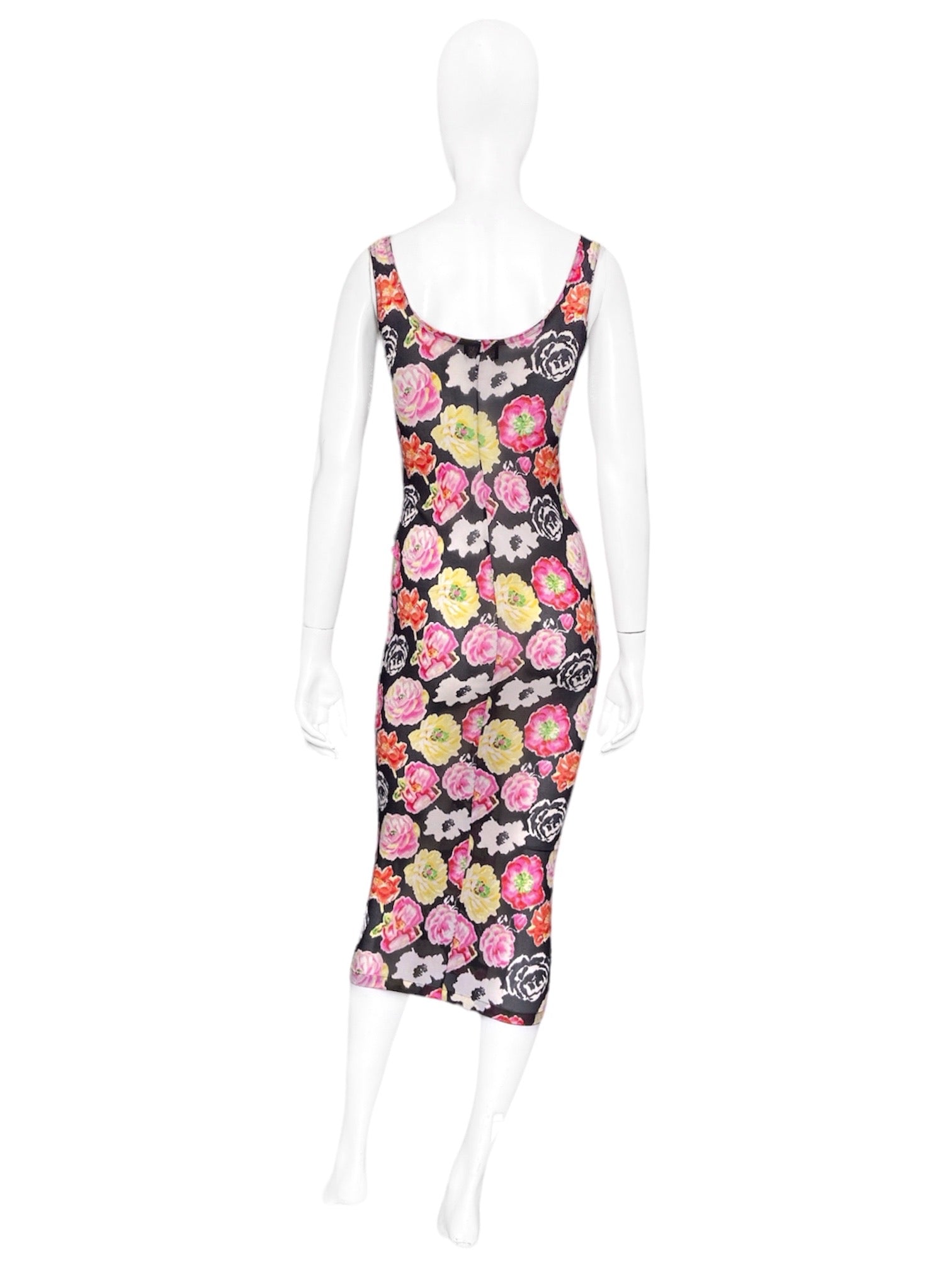 Gianni Versace Spring 1995 ICONIC Floral Print Semi-Sheer Silk Stretch Dress