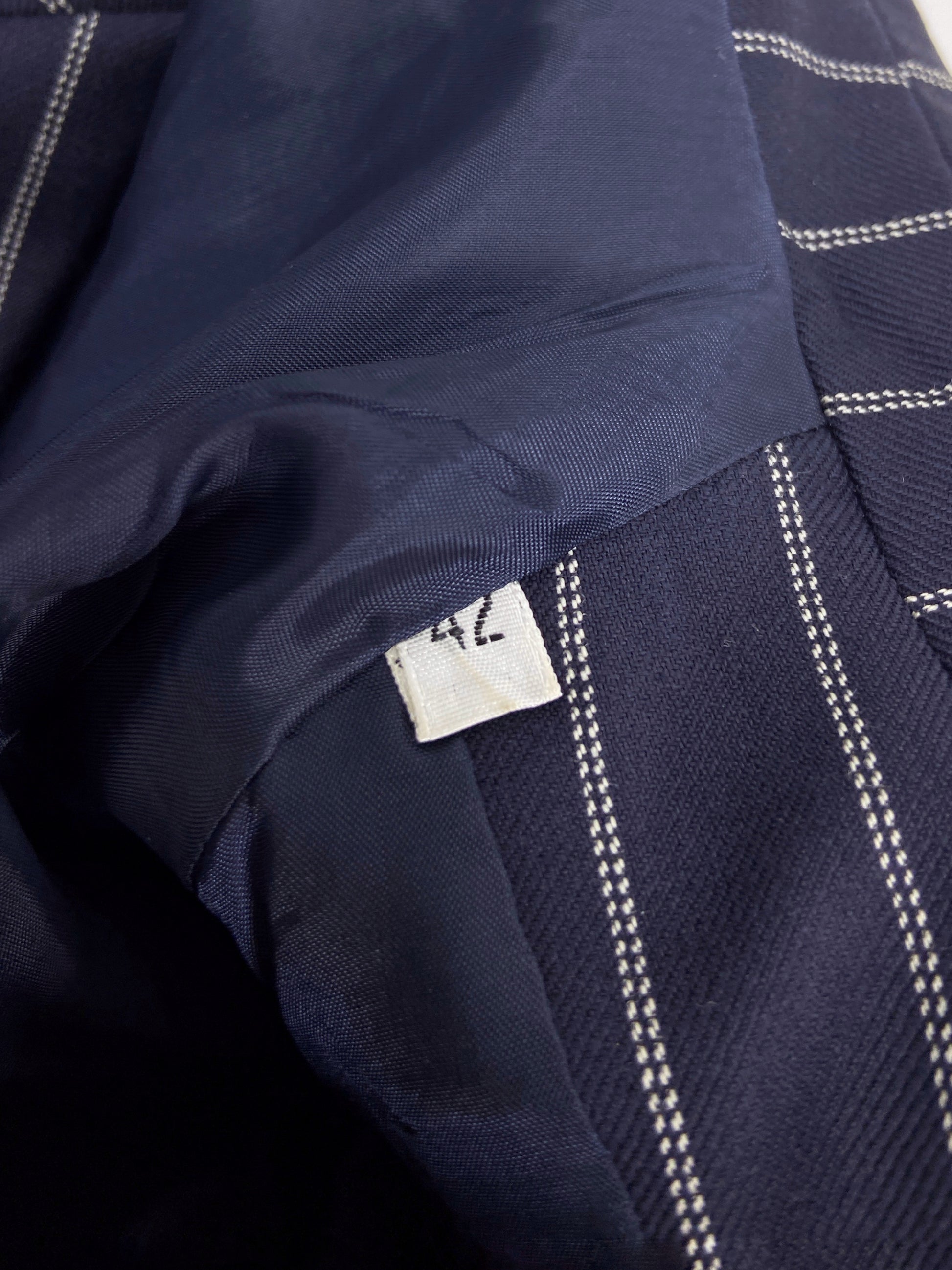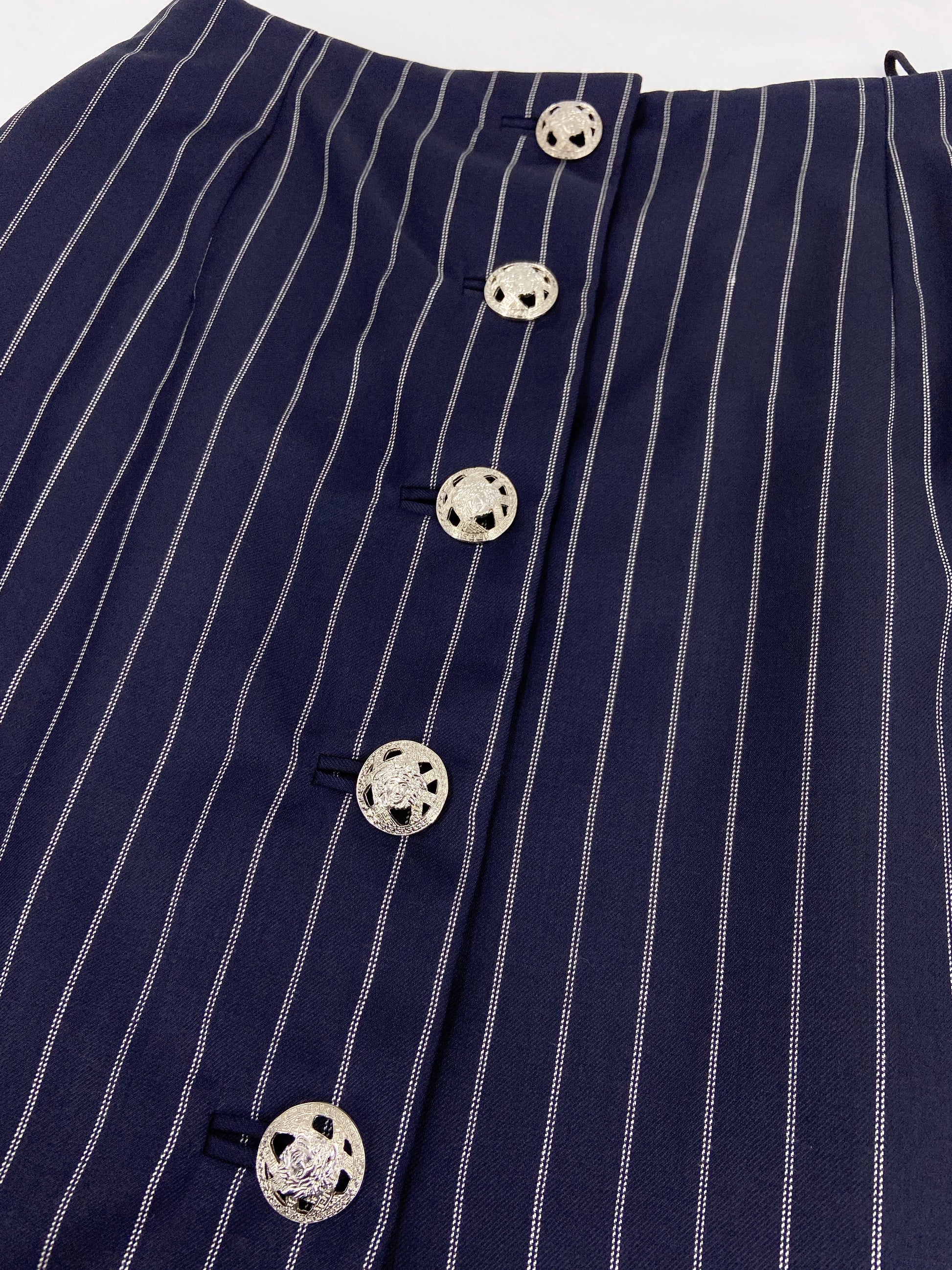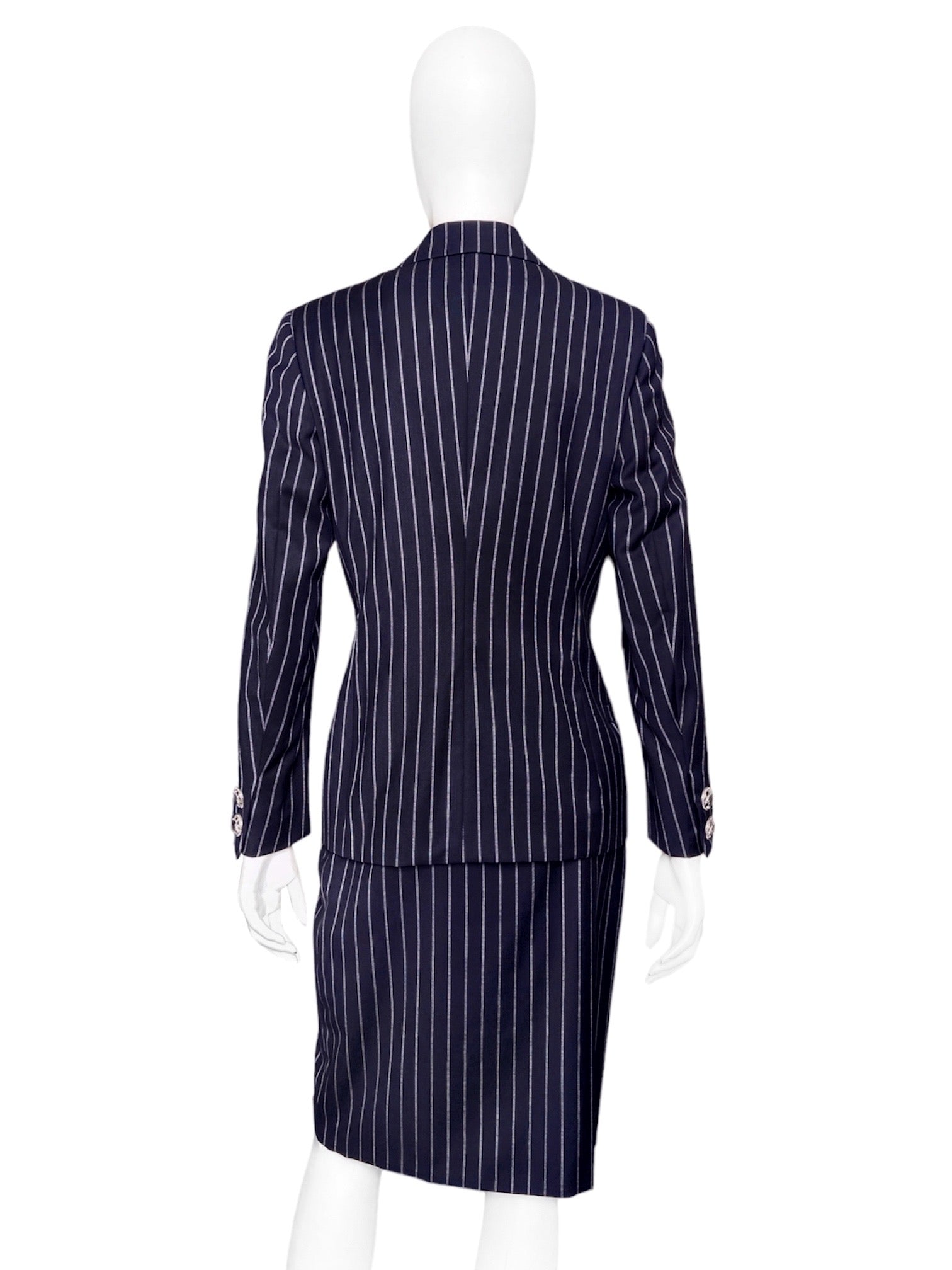 Gianni Versace Spring 1995 Navy Double Pinstriped Wrap Skirt Suit 42