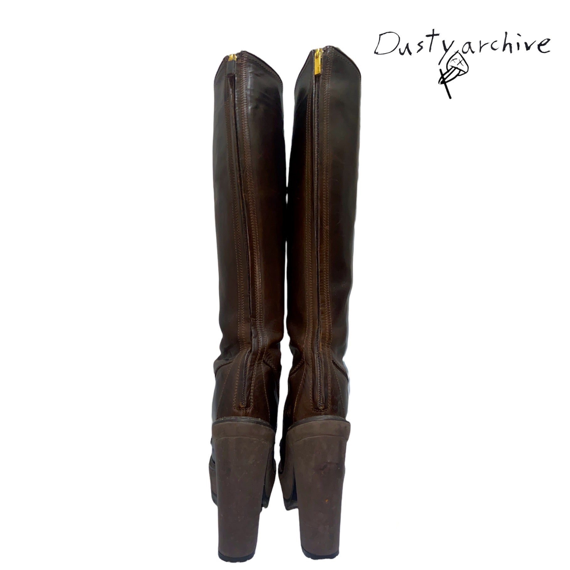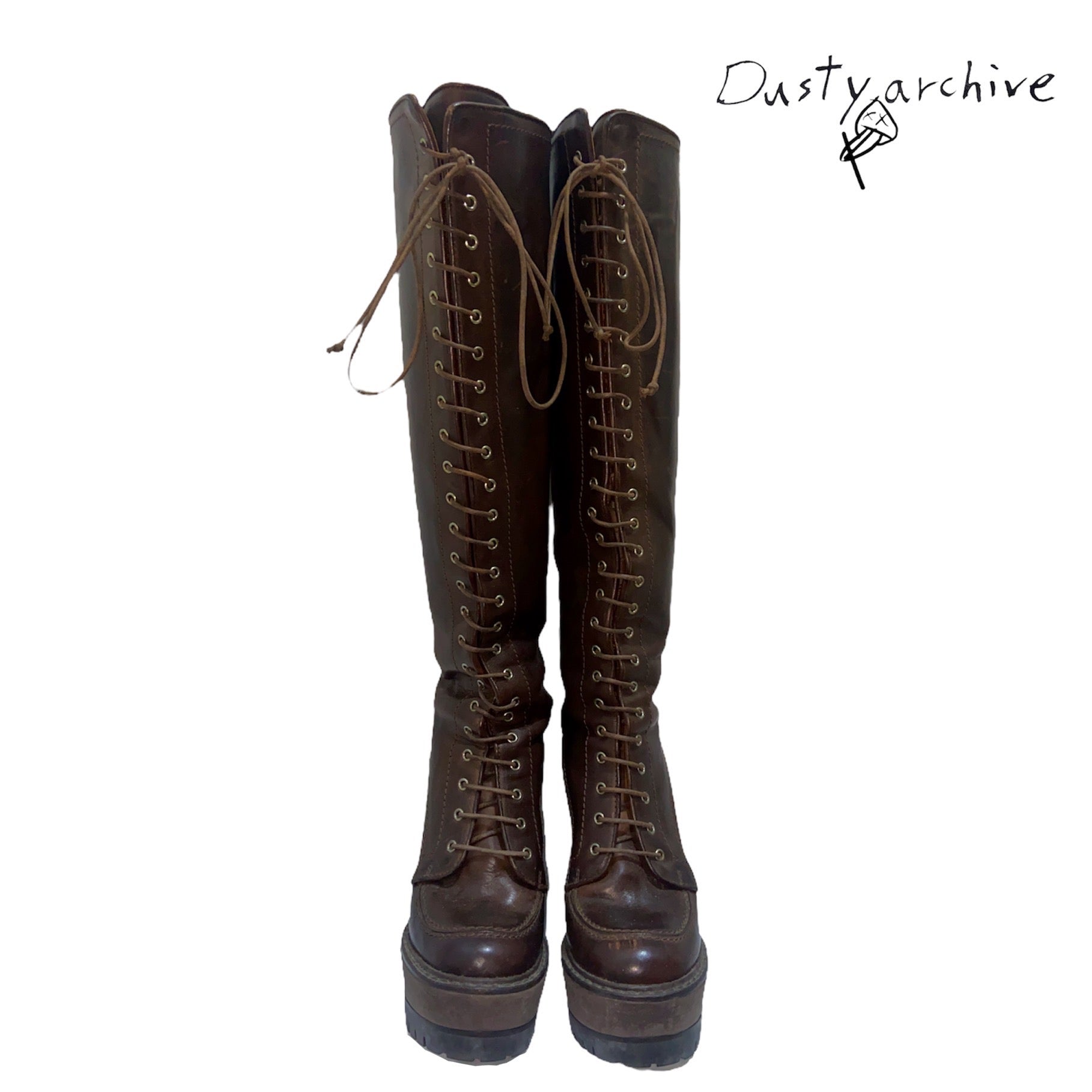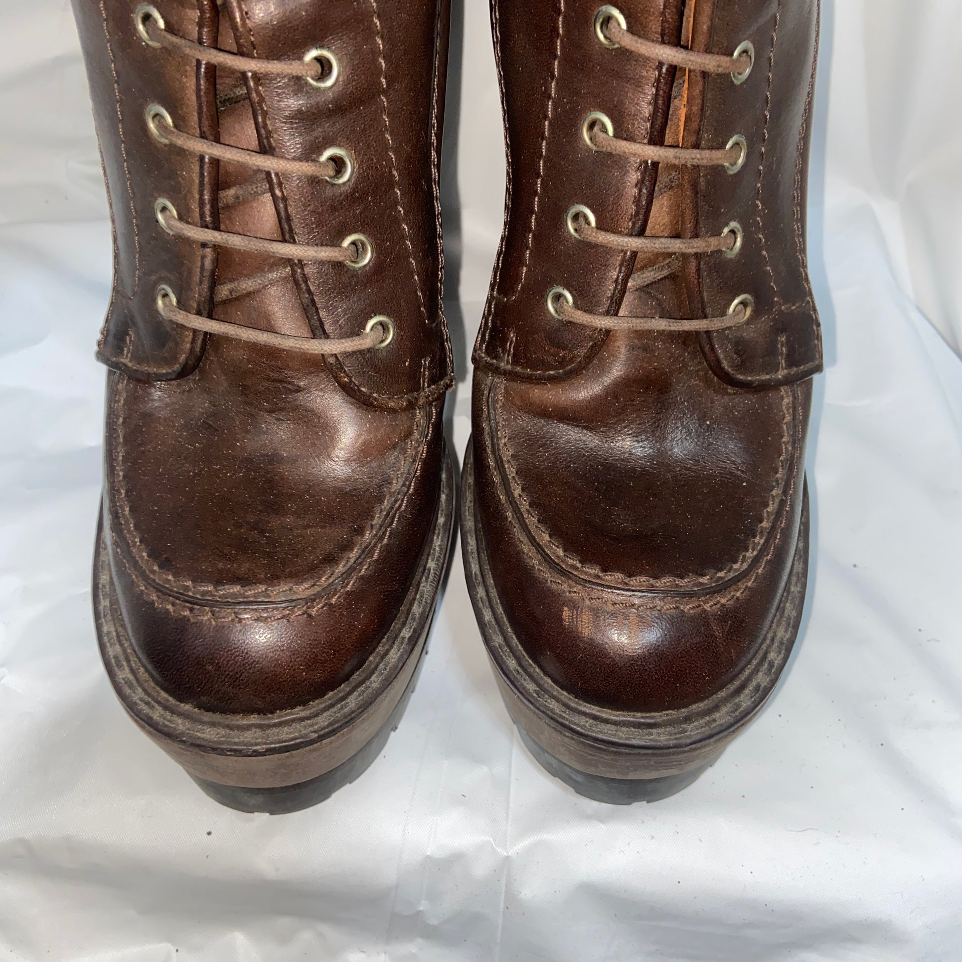 Givenchy 2011 Riccardo Tisci platform block heel knee high leather lace boots 37
