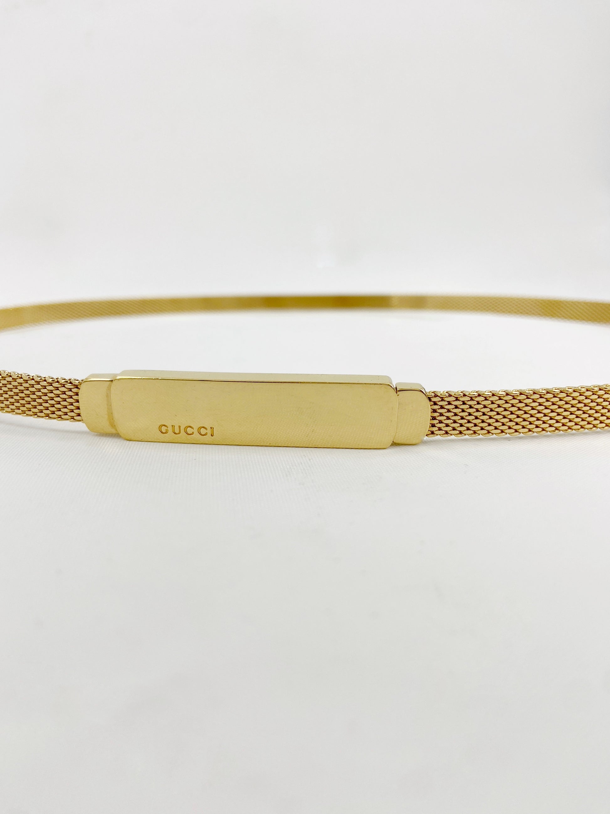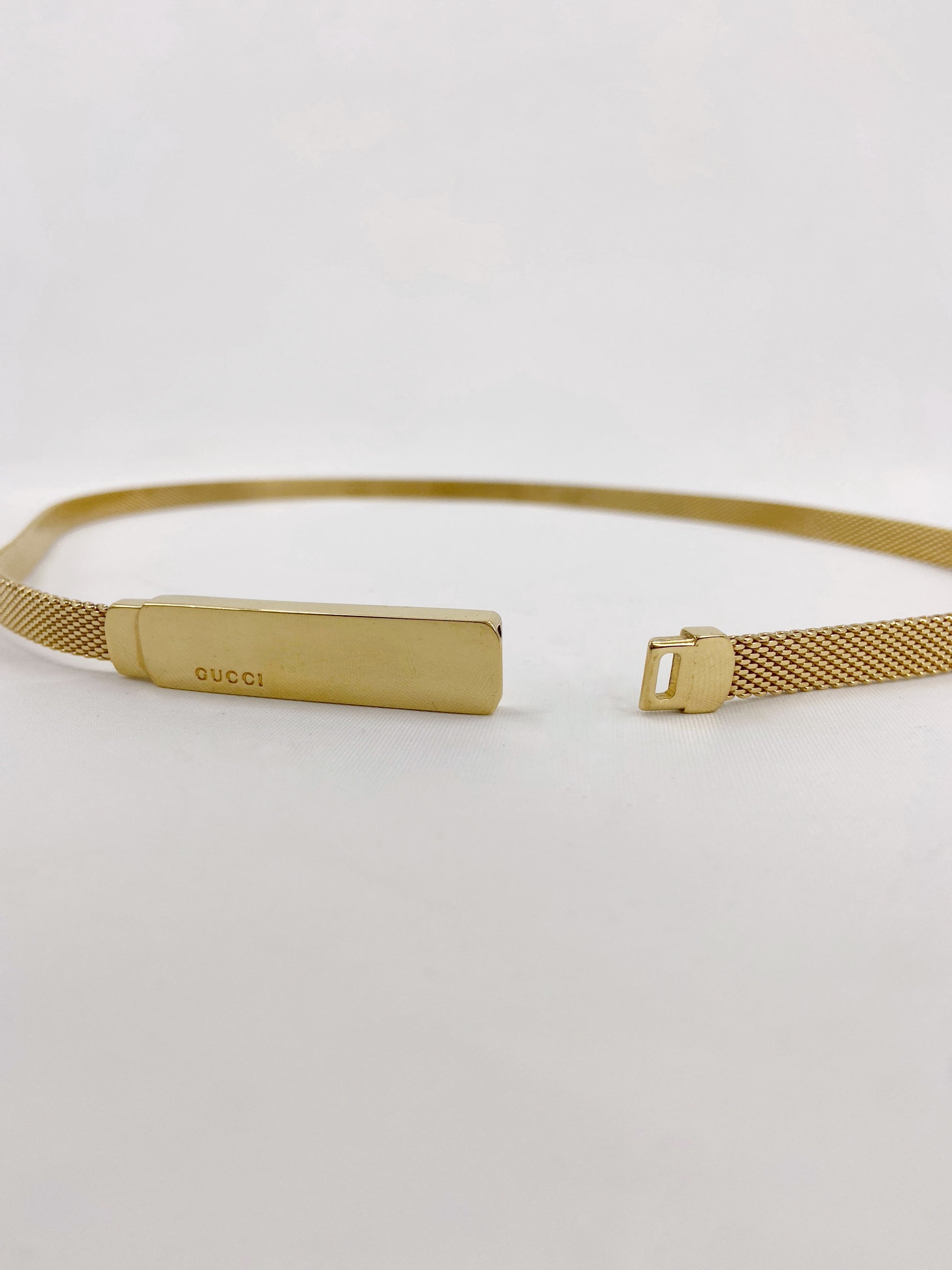 Gold snake mesh with GUCCI logo engraved on front of buckle