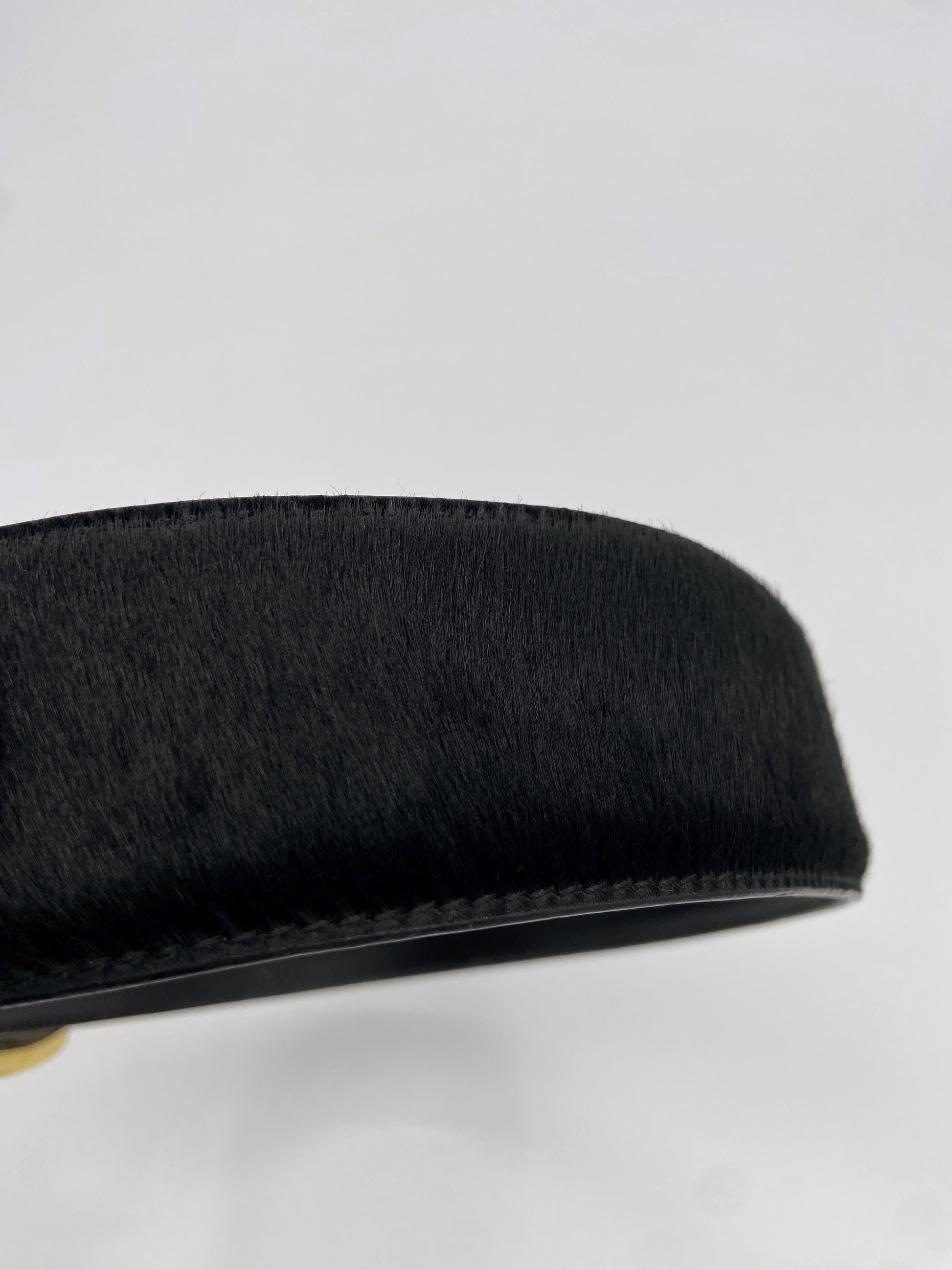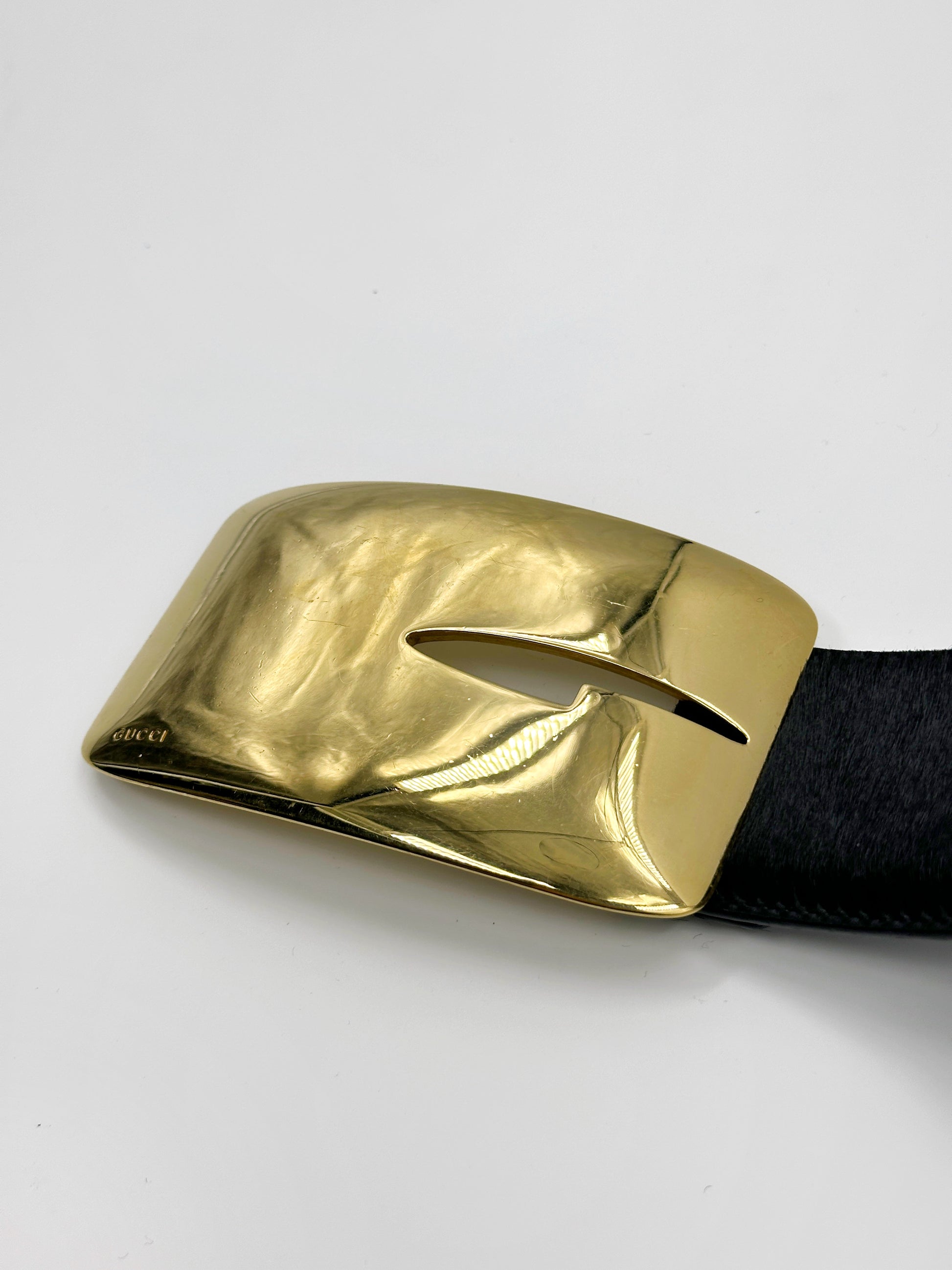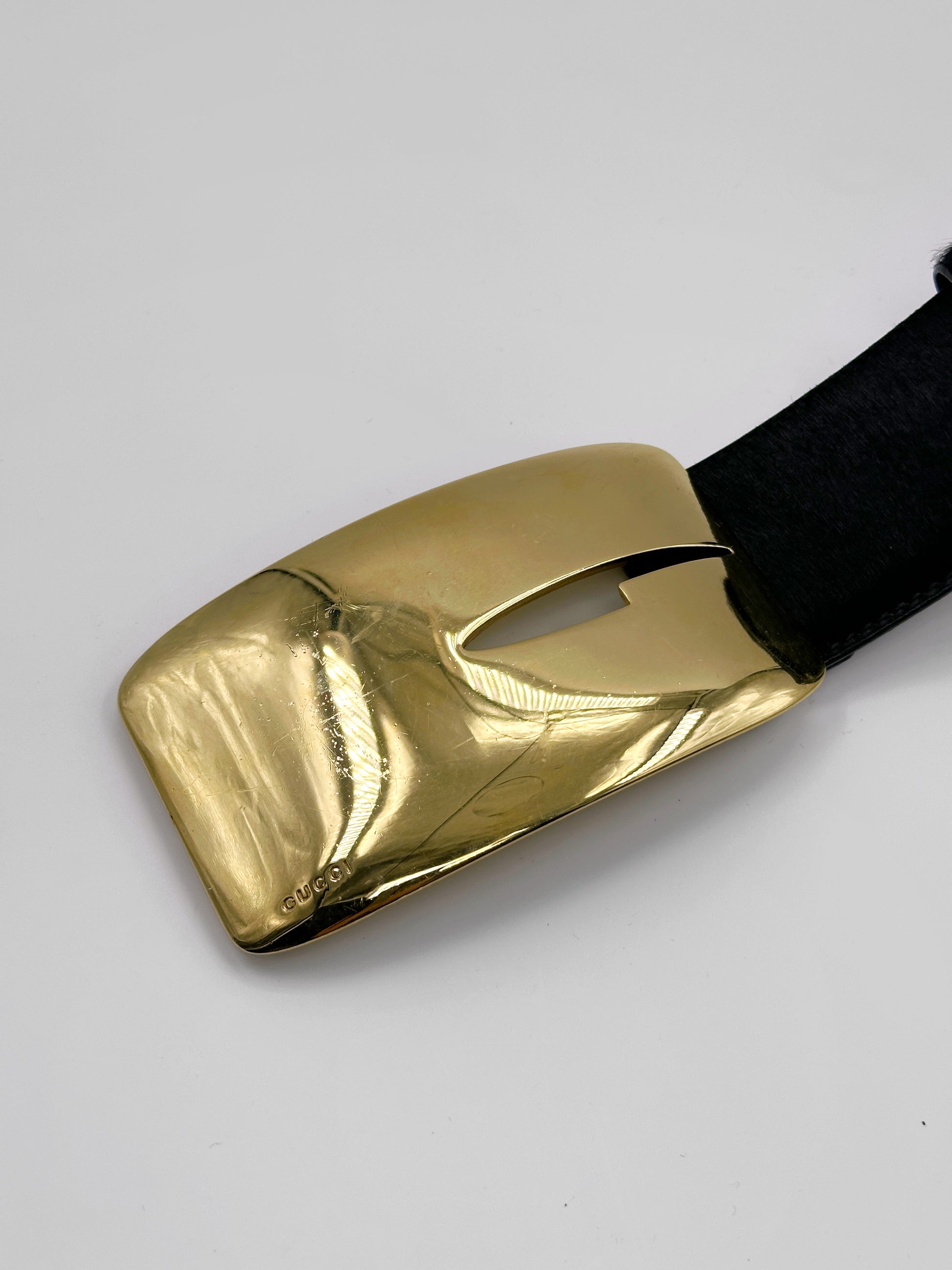 Gucci Fall 1996 Tom Ford Iconic Gold Logo Brown Pony Hair Belt 28