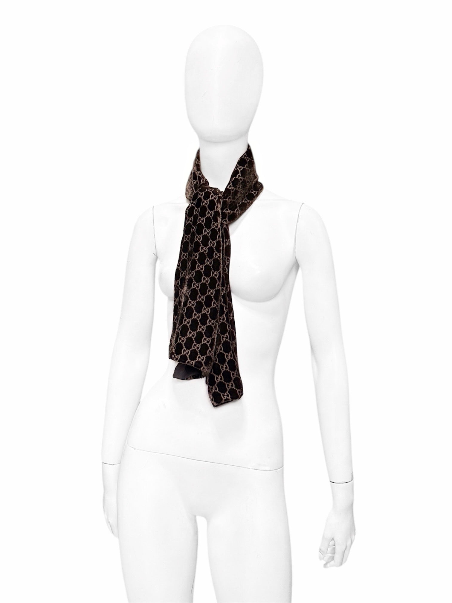 Gucci Fall 1997 Tom Ford Brown Monogram Velvet Scarf