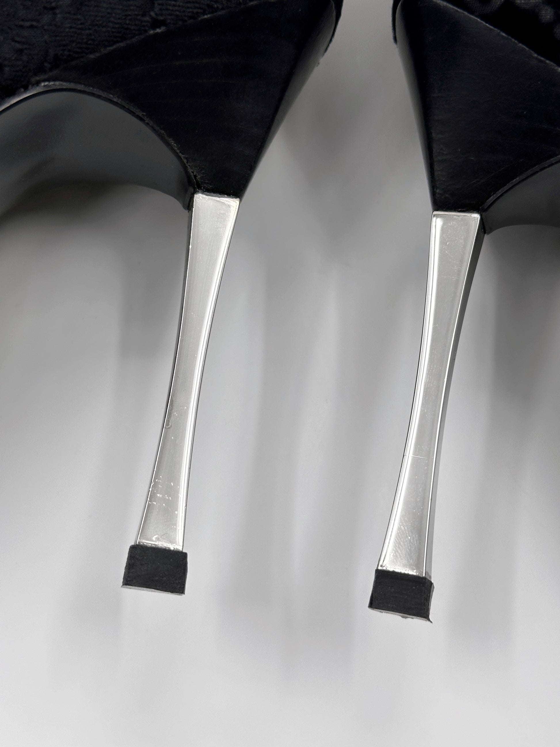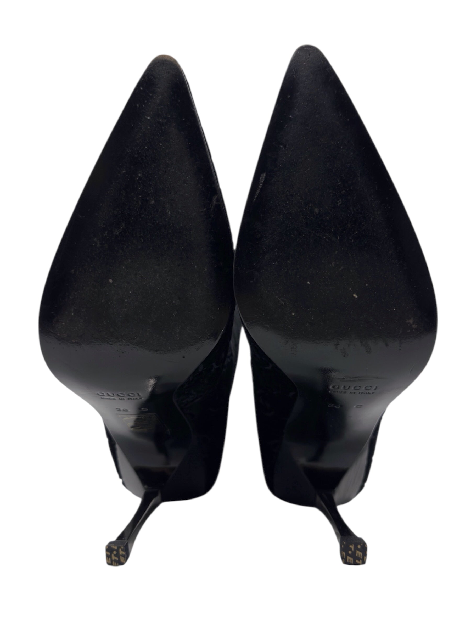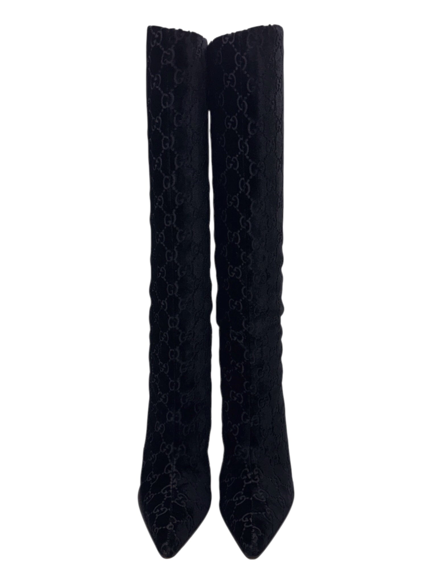 Gucci Fall 1997 Tom Ford Dark Navy Guccisima Monogram Velvet Metal Heel Tall Boots 36