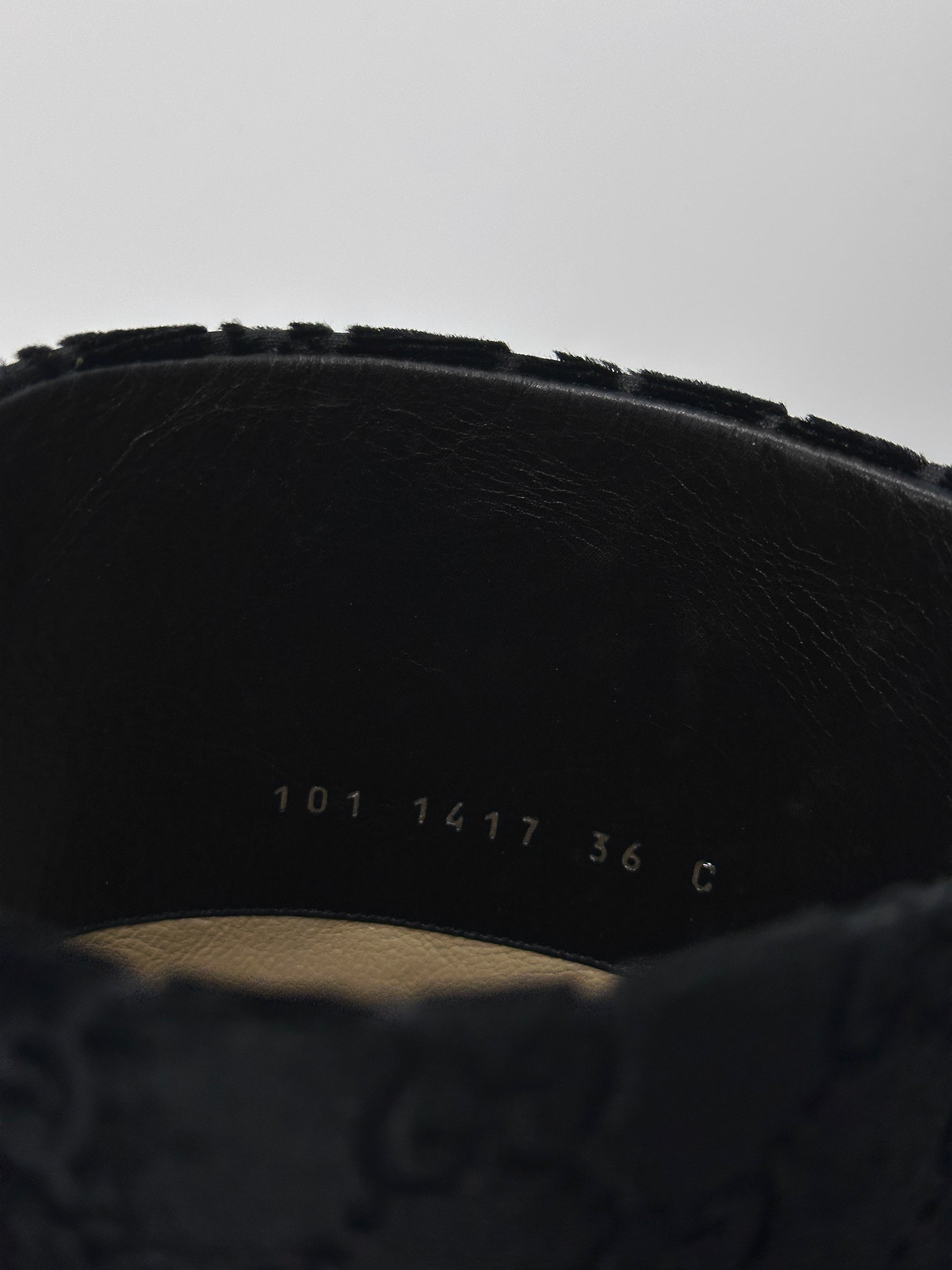 This particular boot is made from the same fabric used for the famous monogrammed velvet shirts of the collection(which we also have a few!)